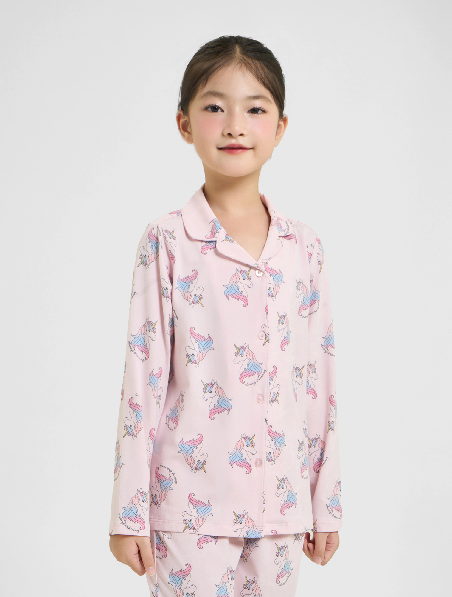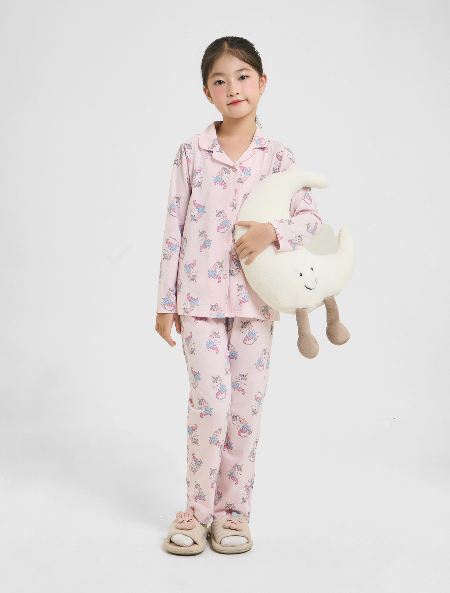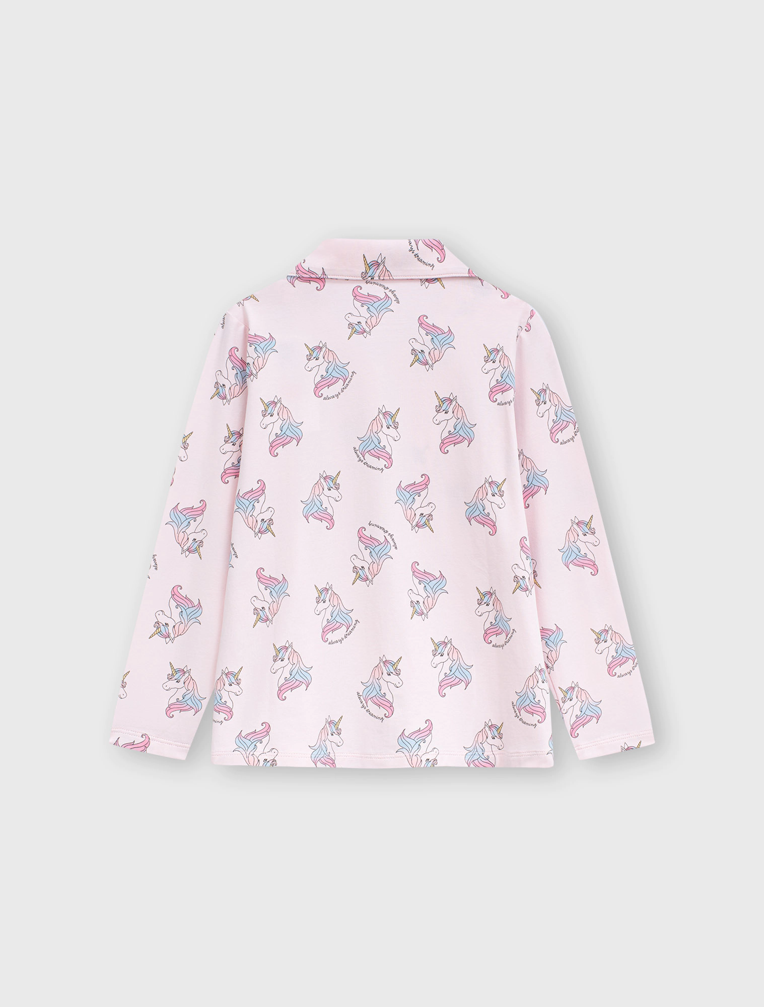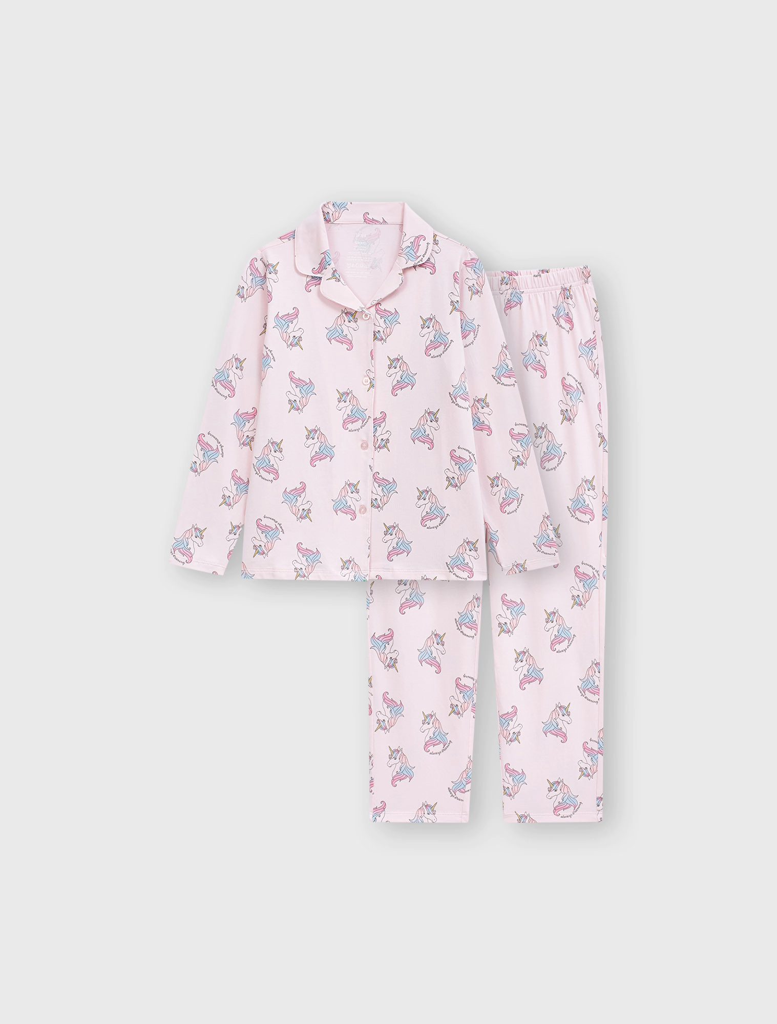 Bộ mặc nhà pyjama bé gái họa tiết,áo dài tay, quần dài dáng suông.