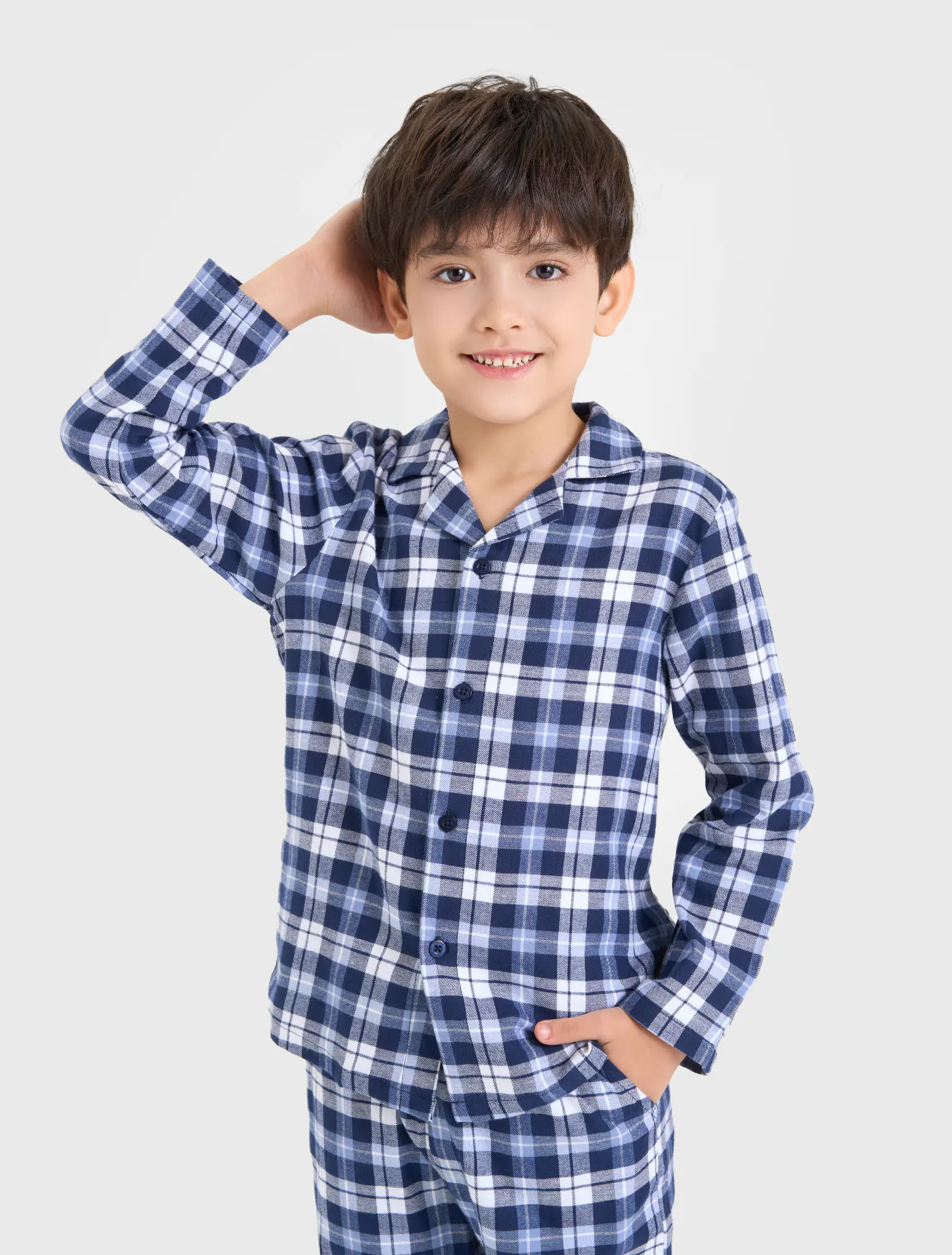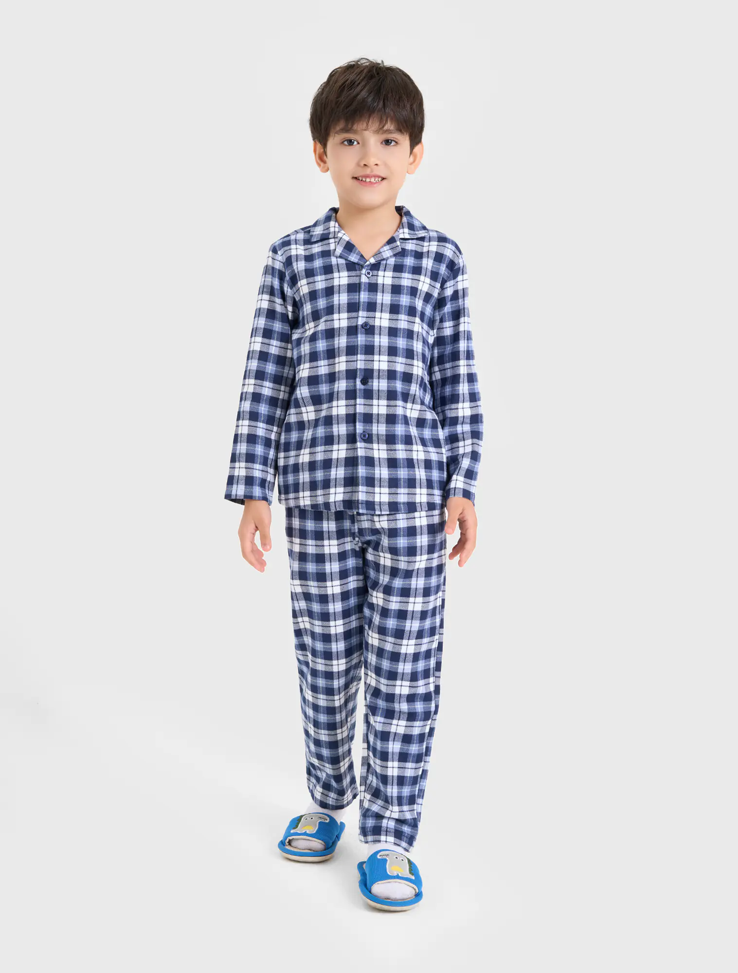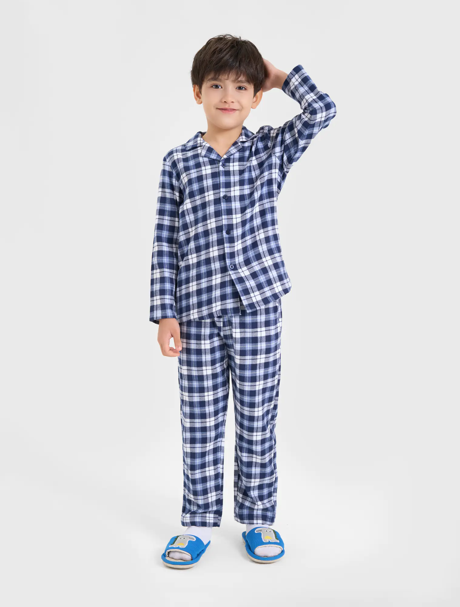 Bộ pyjama bé trai chất liệu dệt thoi, phom dáng cơ bản, chất liệu 100% cotton mềm mại, tạo cảm giác thoải mái cho các bé khi ở nhà.