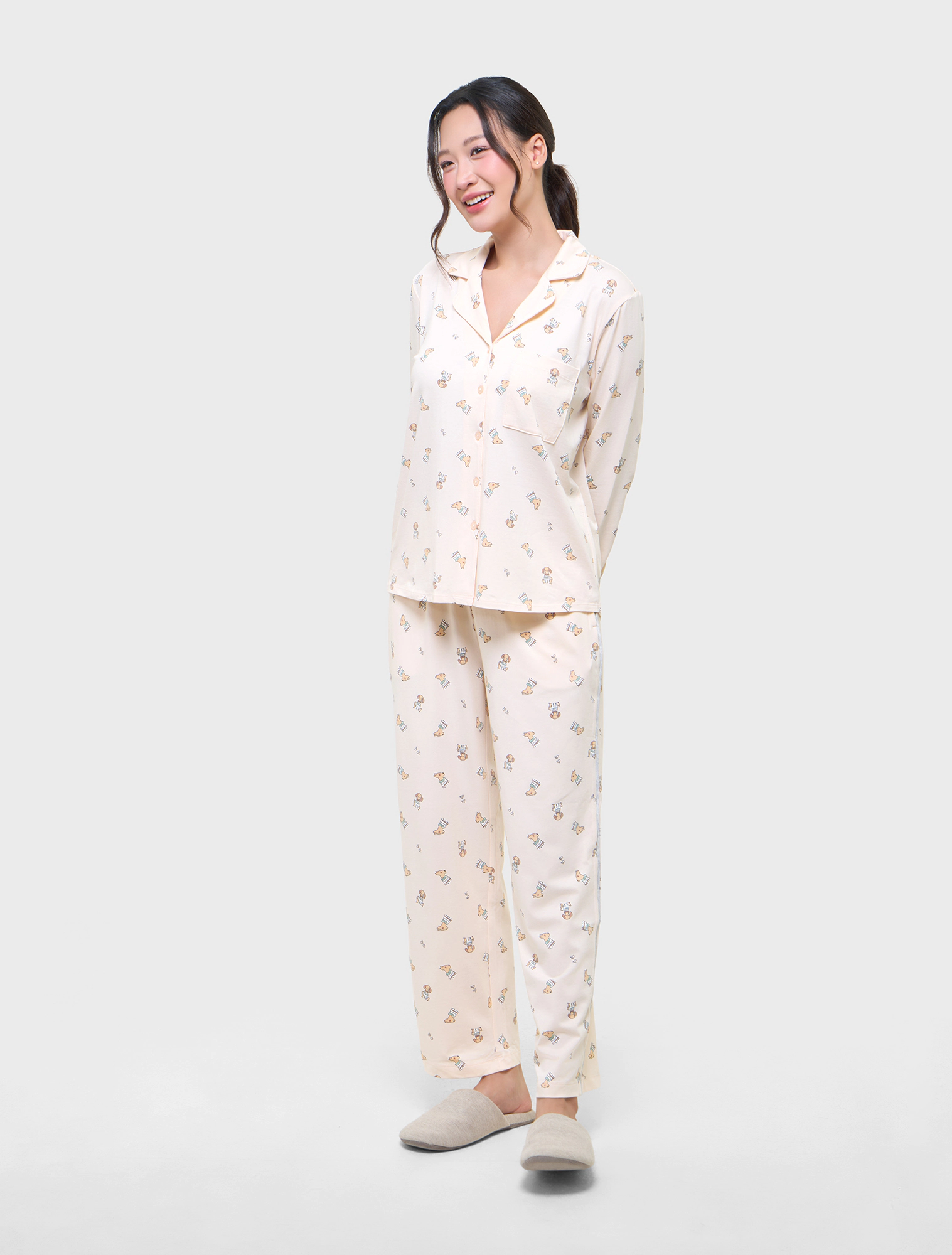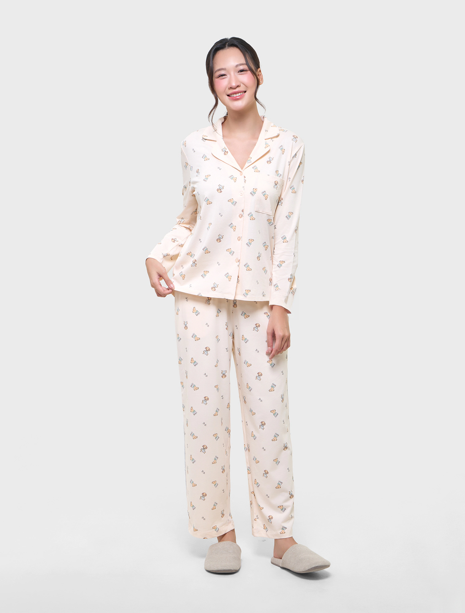 Bộ pyjama nữ dài tay họa tiết, rất dễ lựa chọn cho mọi khách hàng.