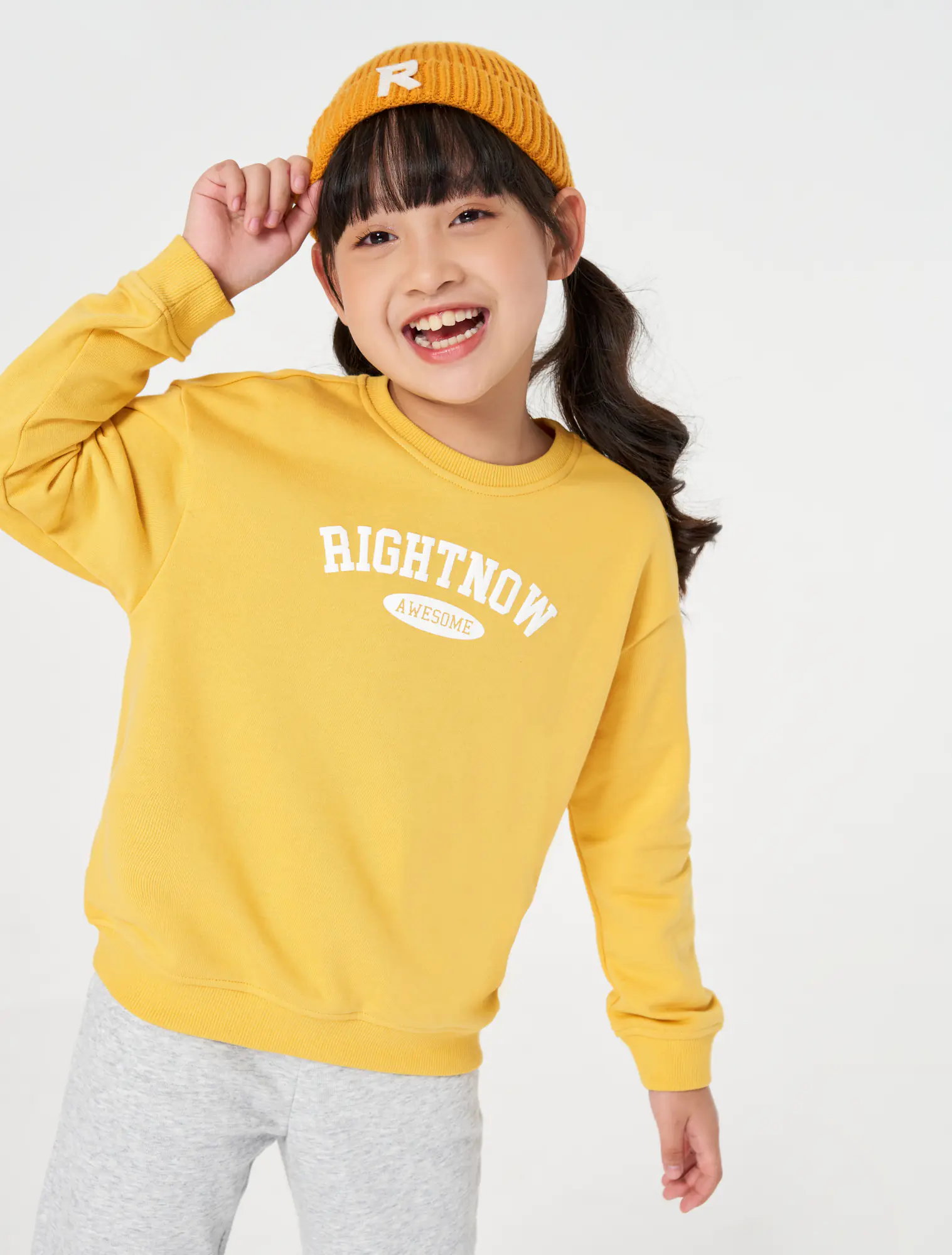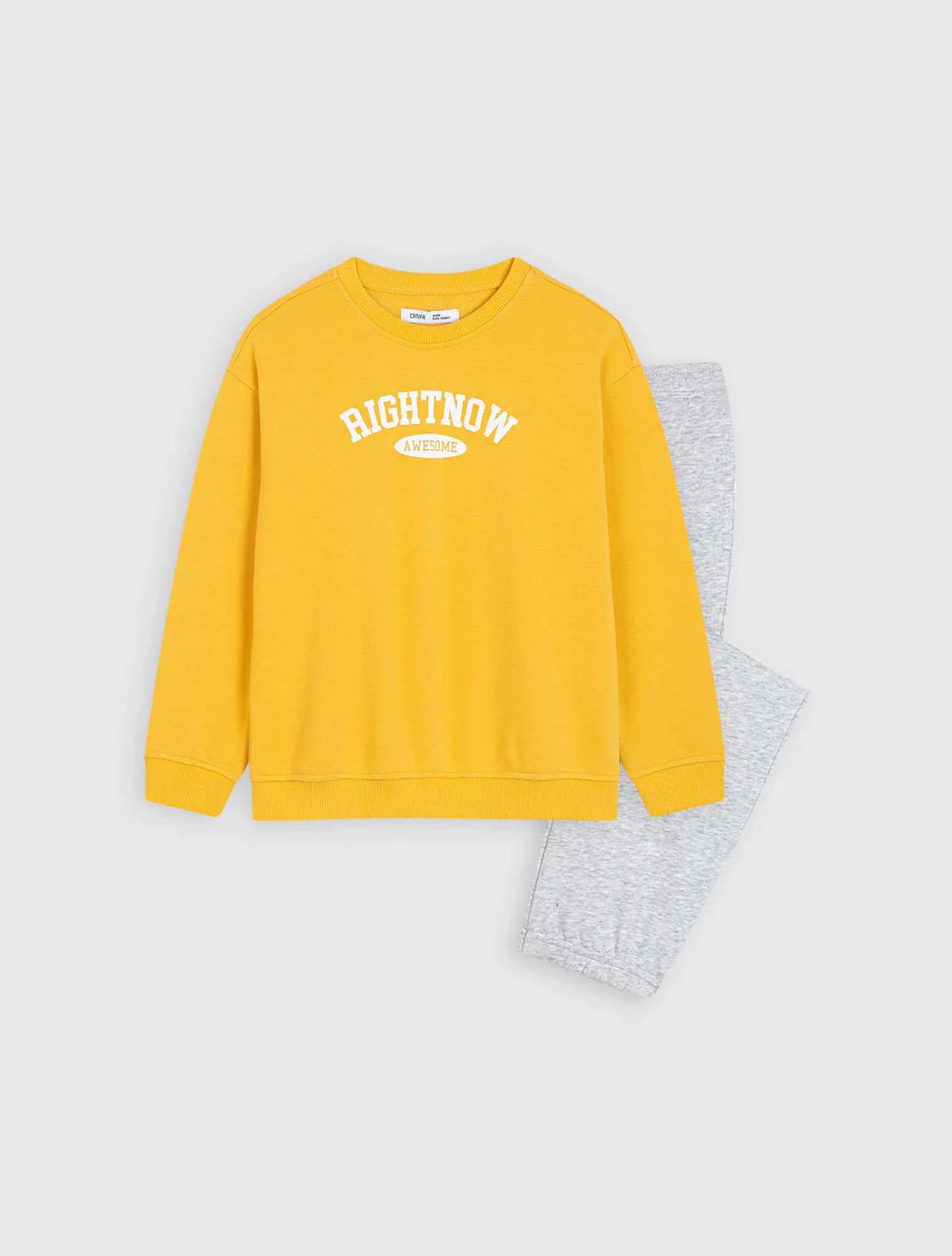 Bộ quần áo chất liệu cotton pha, áo cổ tròn tay dài, quần dài cạp chun.