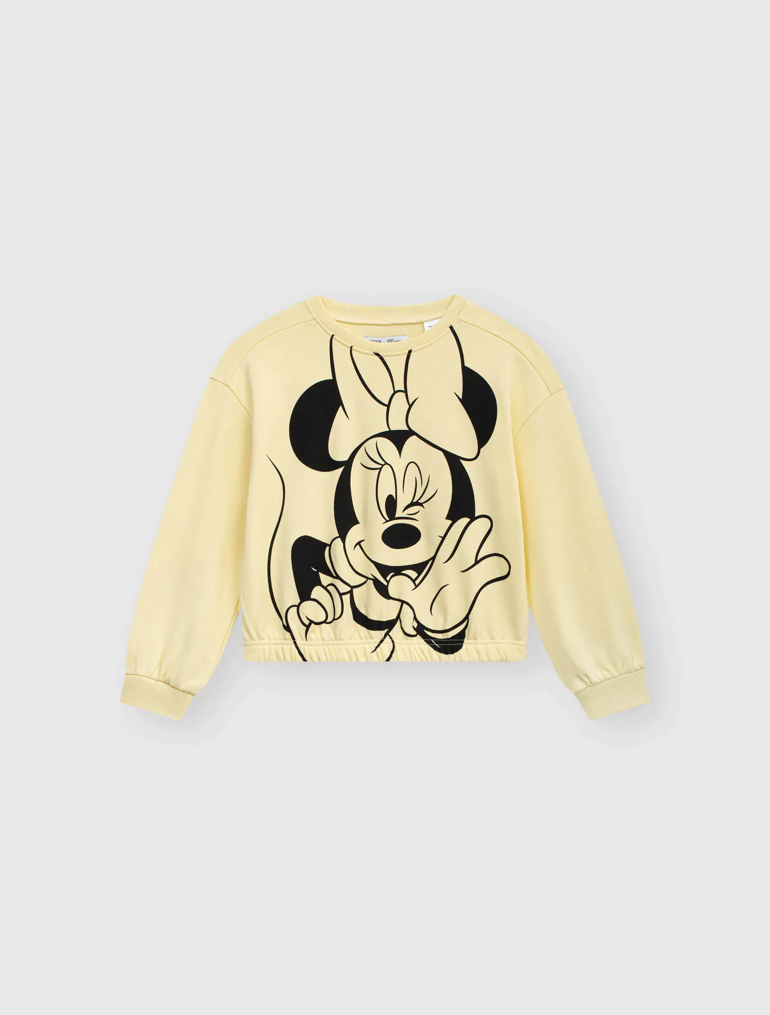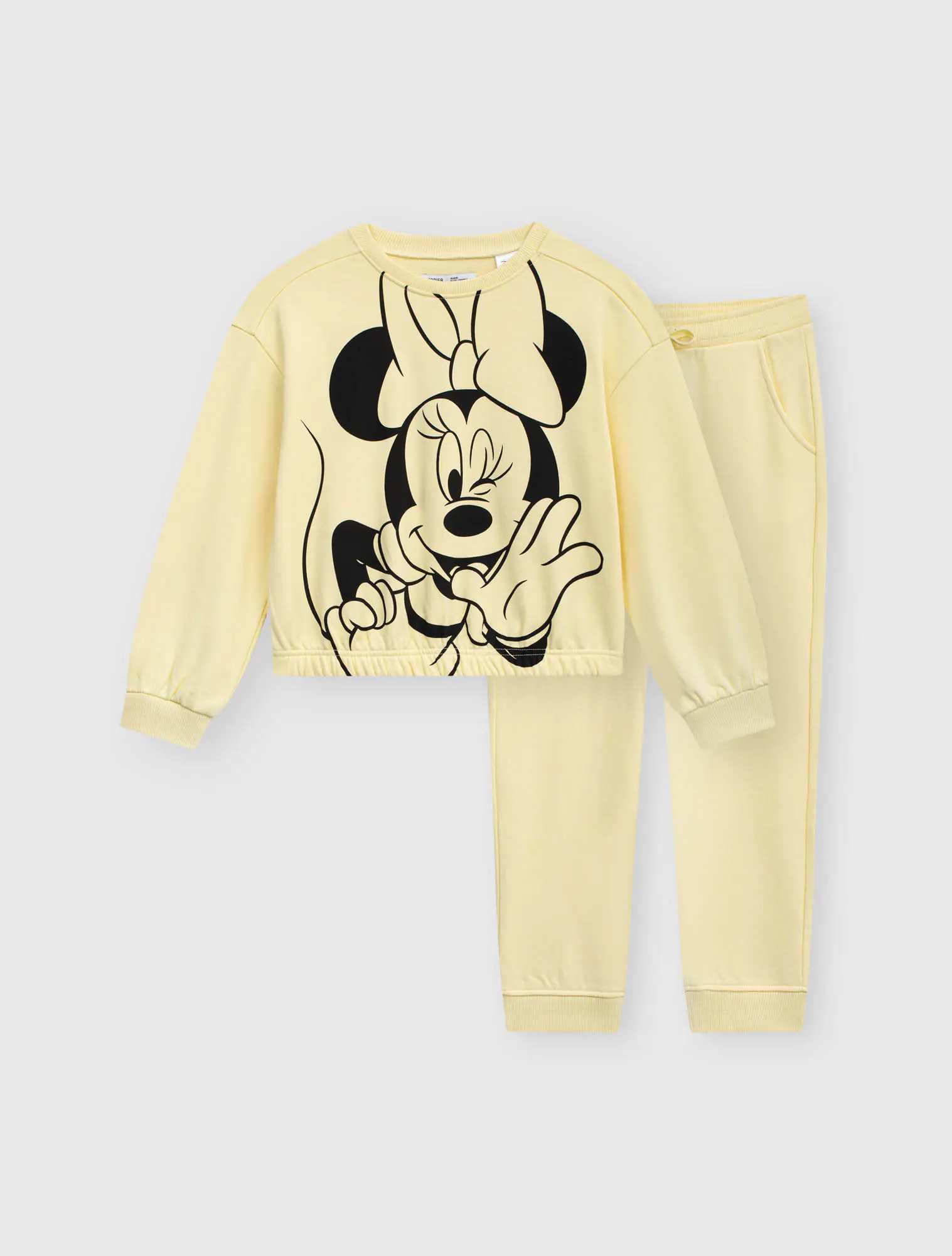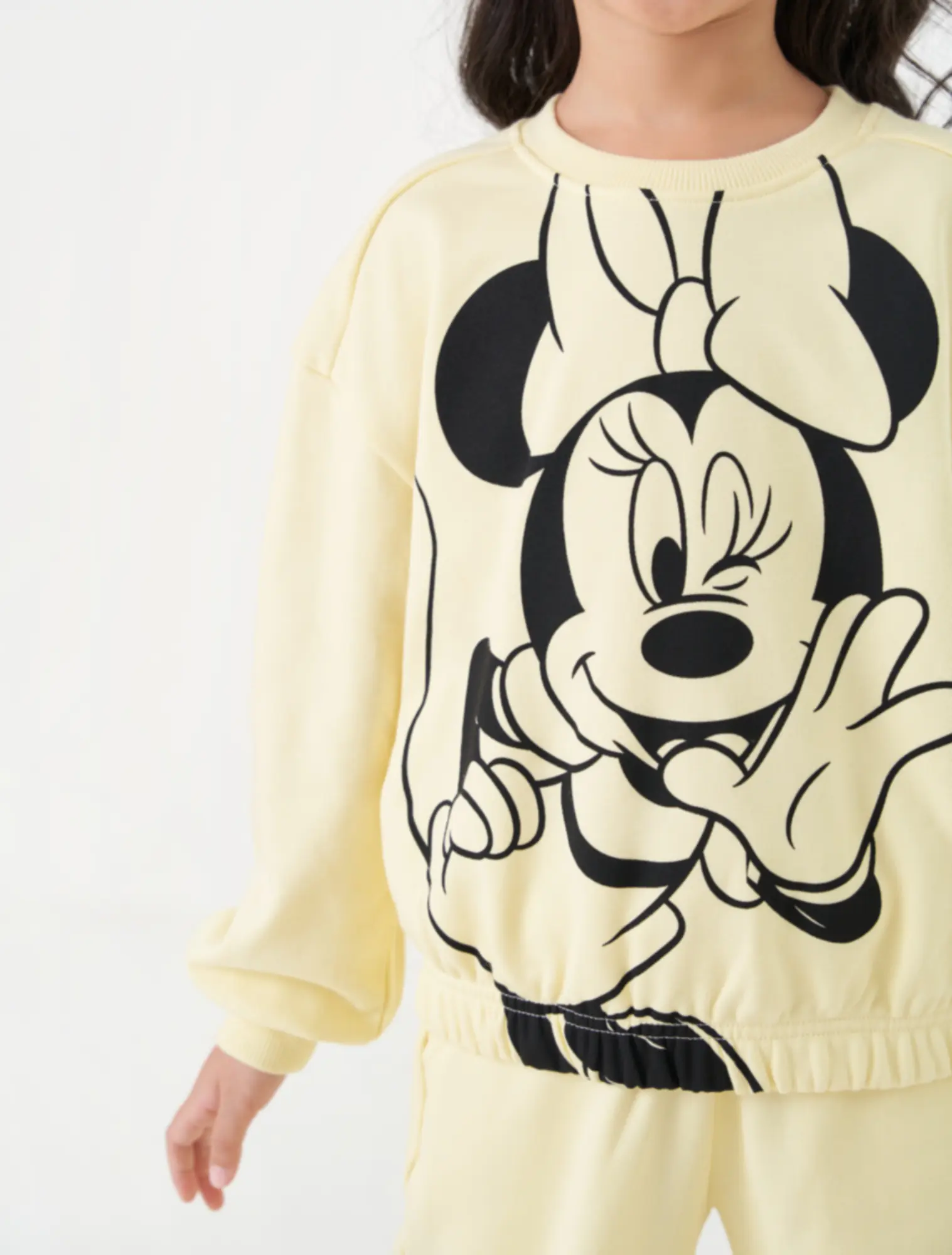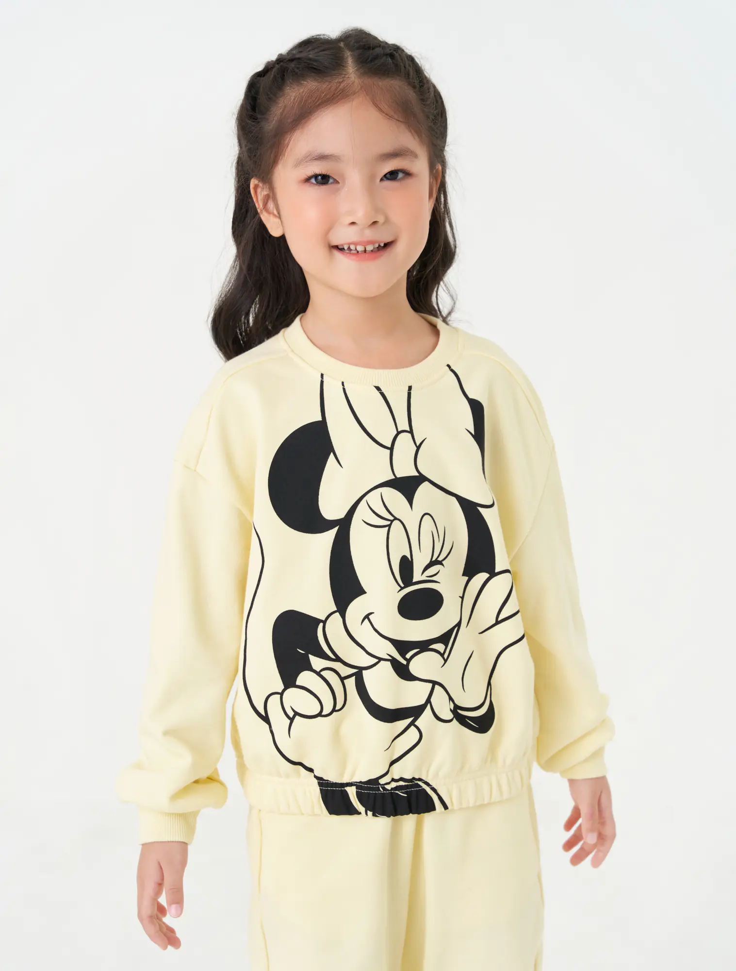Bộ quần áo bé gái dài tay quần dài in hình Minnie, chất liệu nỉ cotton pha giữ ấm vừa phải. Phom dáng vừa vặn tạo cảm giác dễ chịu, thoải mái cho các bé.