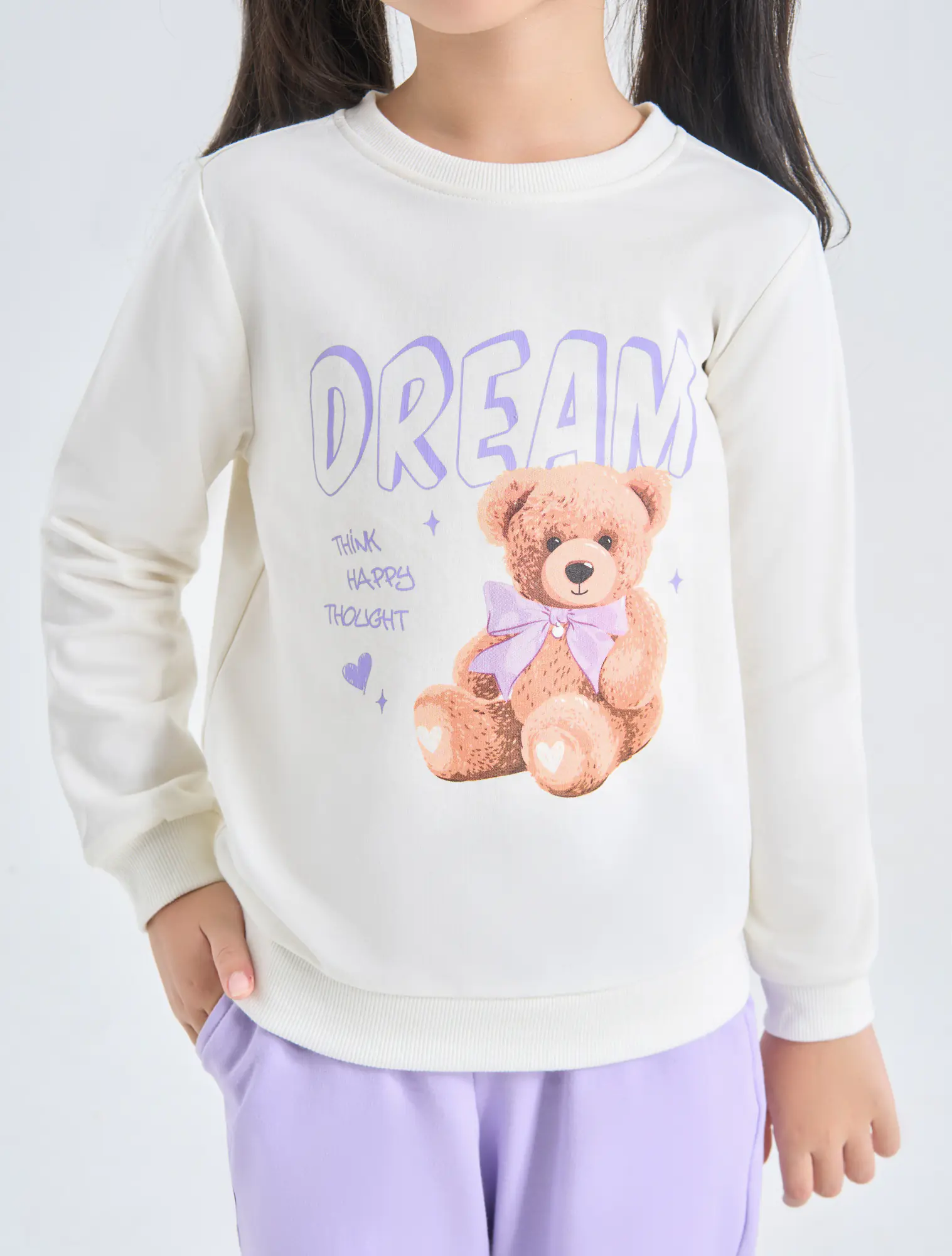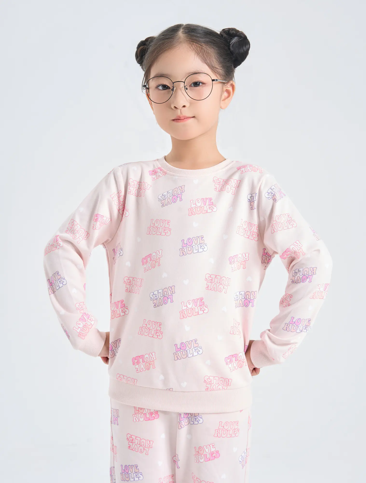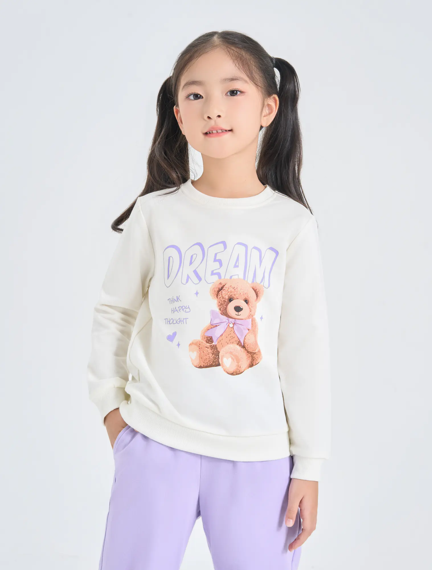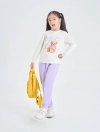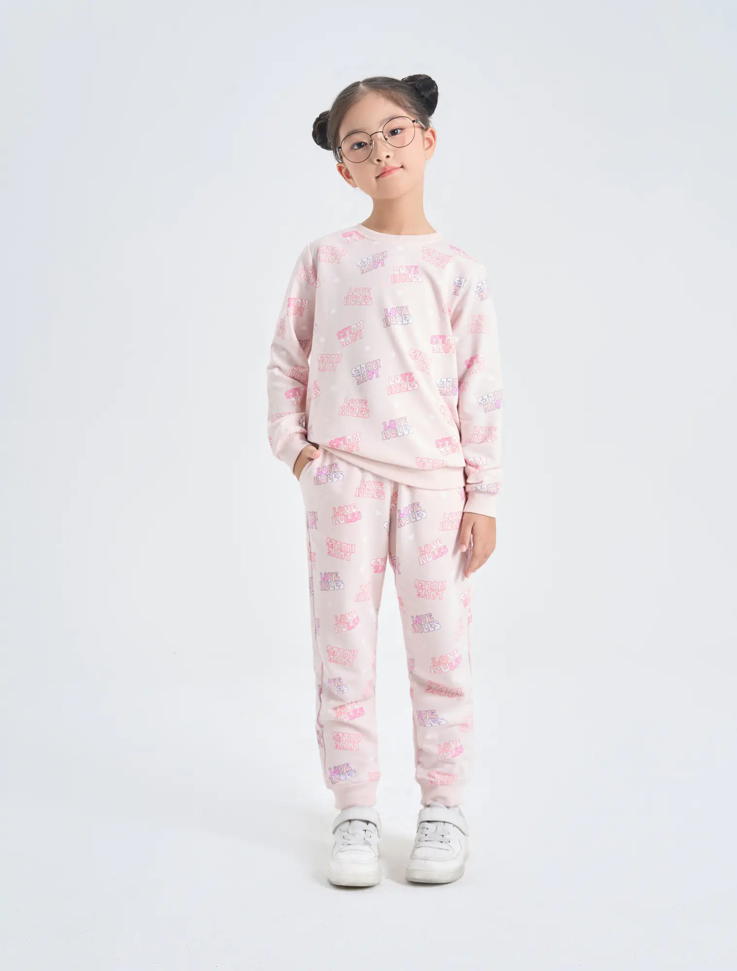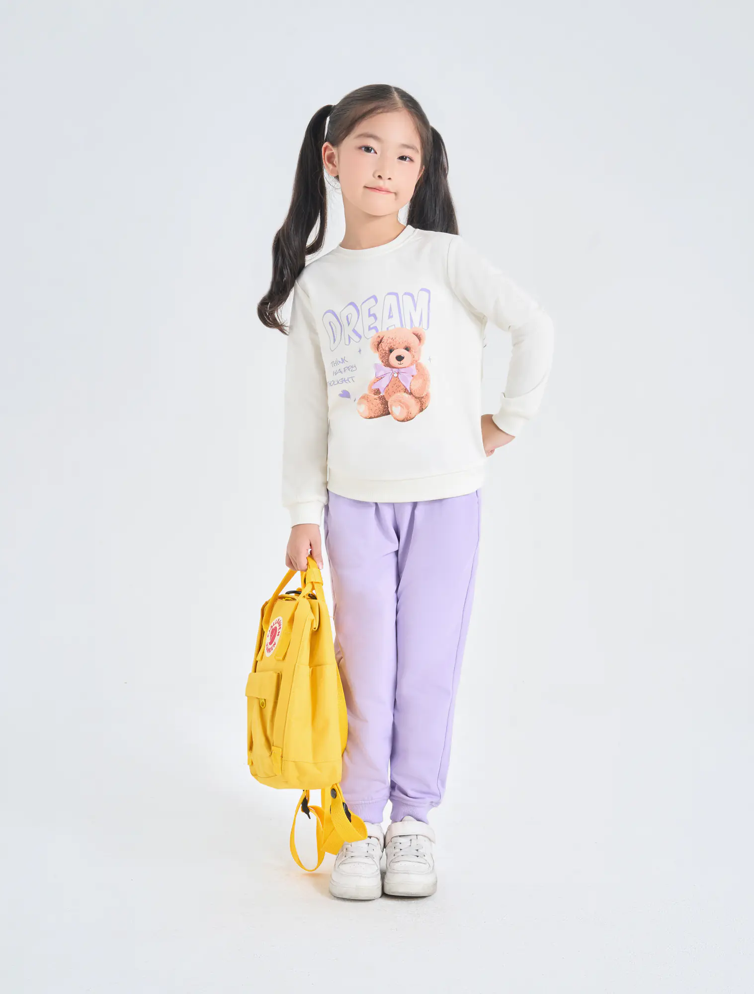 Bộ quần áo dài tay quần dài bé gái. Áo cổ tròn, quần jogger cơ bản dễ mặc. Màu sắc hình in tươi sáng, dễ thương, phù hợp nhiều hoàn cảnh sử dụng cho bé gái.