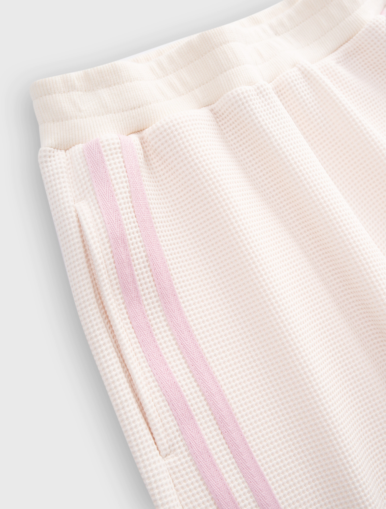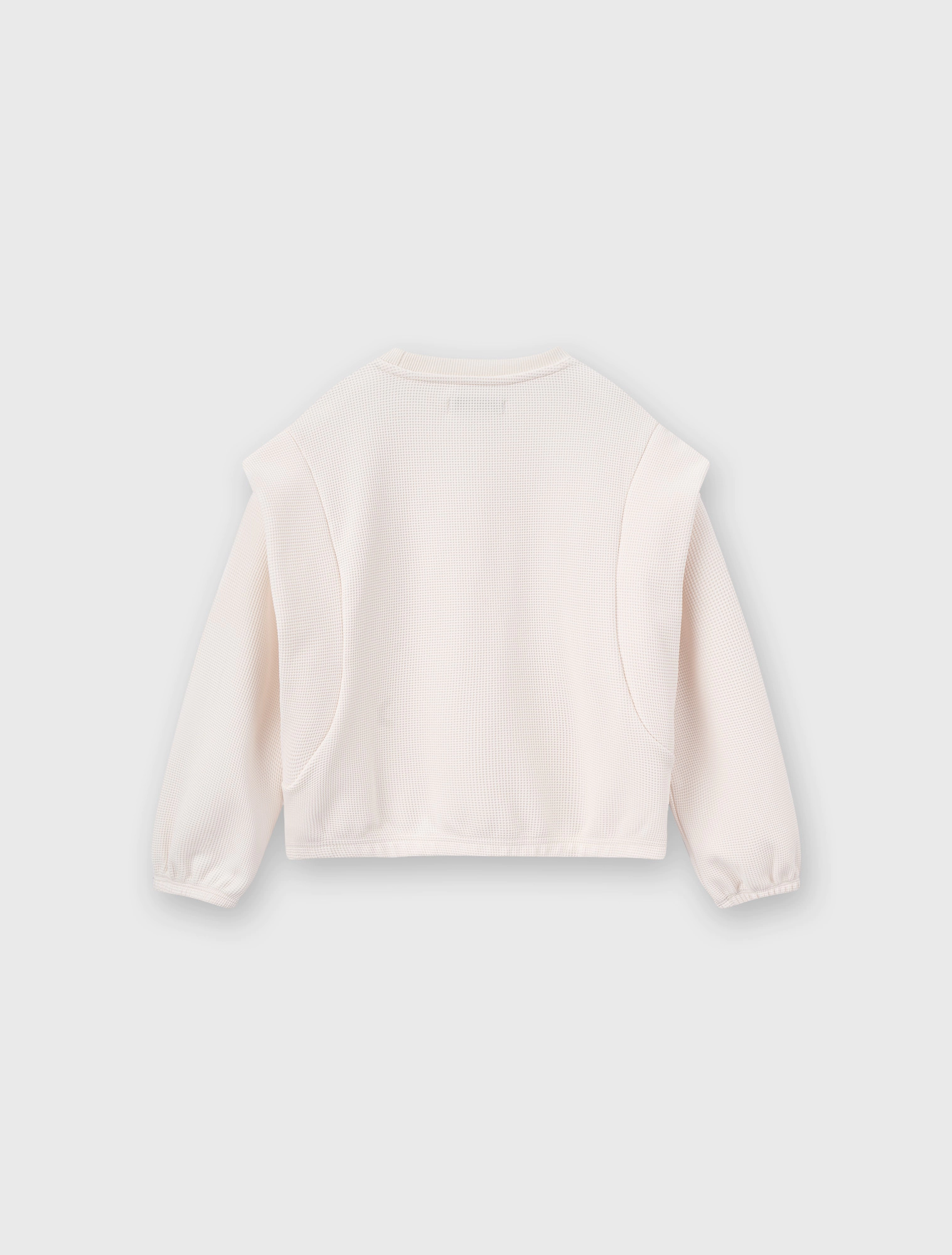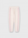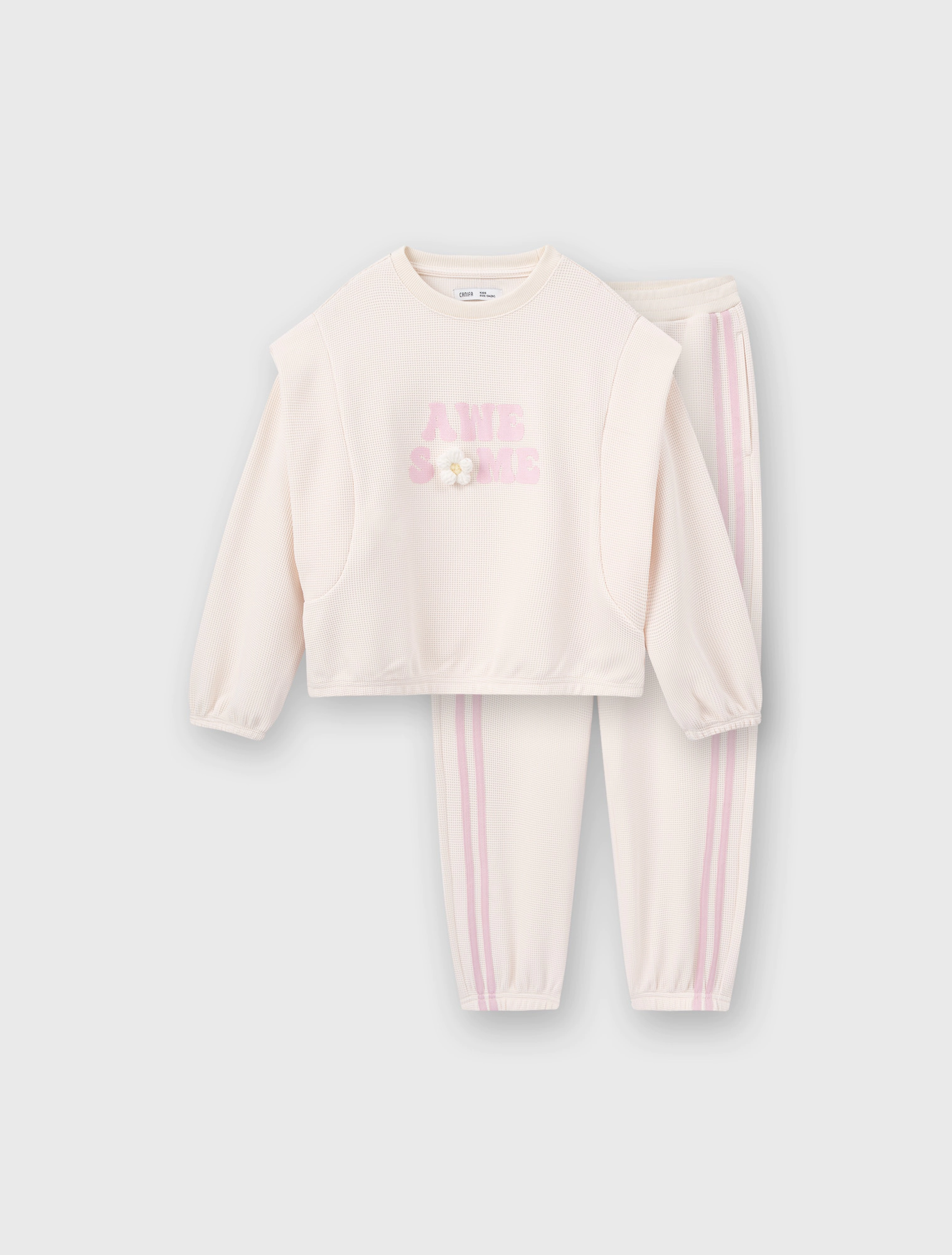 Bộ quần áo bé gái. Áo dài tay cổ tròn kết hợp quần bo chun gấu. Kết cấu vai áo ấn tượng, sườn quần đè dây dệt phối màu hiện đại. Màu sắc tươi sáng, hình in dễ thương phù hợp nhiều hoàn cảnh sử dụng cho bé gái. Chất liệu Polyester pha Spandex dày dặn, co giãn, giữ ấm tốt, bề mặt vải dệt kiểu mới lạ.