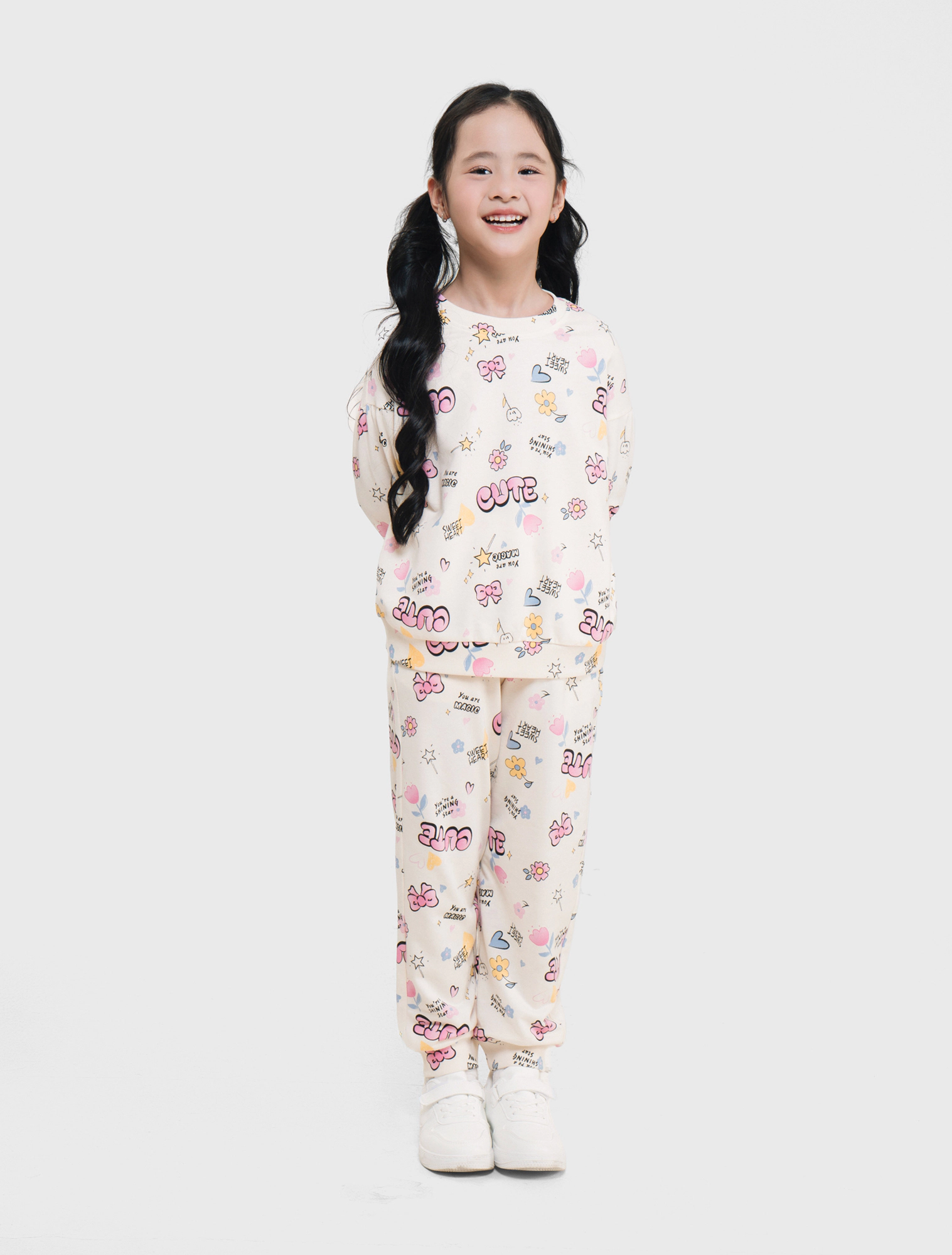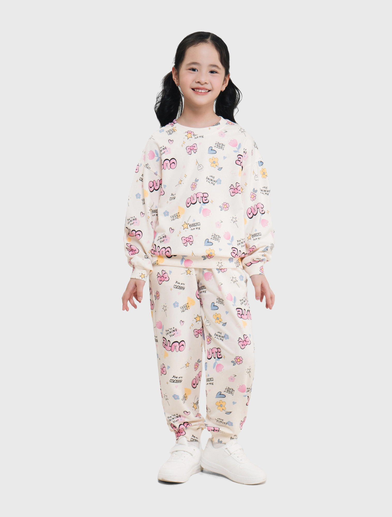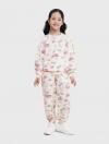 Bộ quần áo bé gái. Áo dài tay nhún phồng nhẹ kết hợp quần bo gấu thời trang. Phom dáng cơ bản, cổ tròn dễ mặc. Màu sắc tươi sáng, họa tiết hình in đáng yêu phù hợp bé gái. Chất liệu Cotton pha mềm mại, giữ ấm tốt.