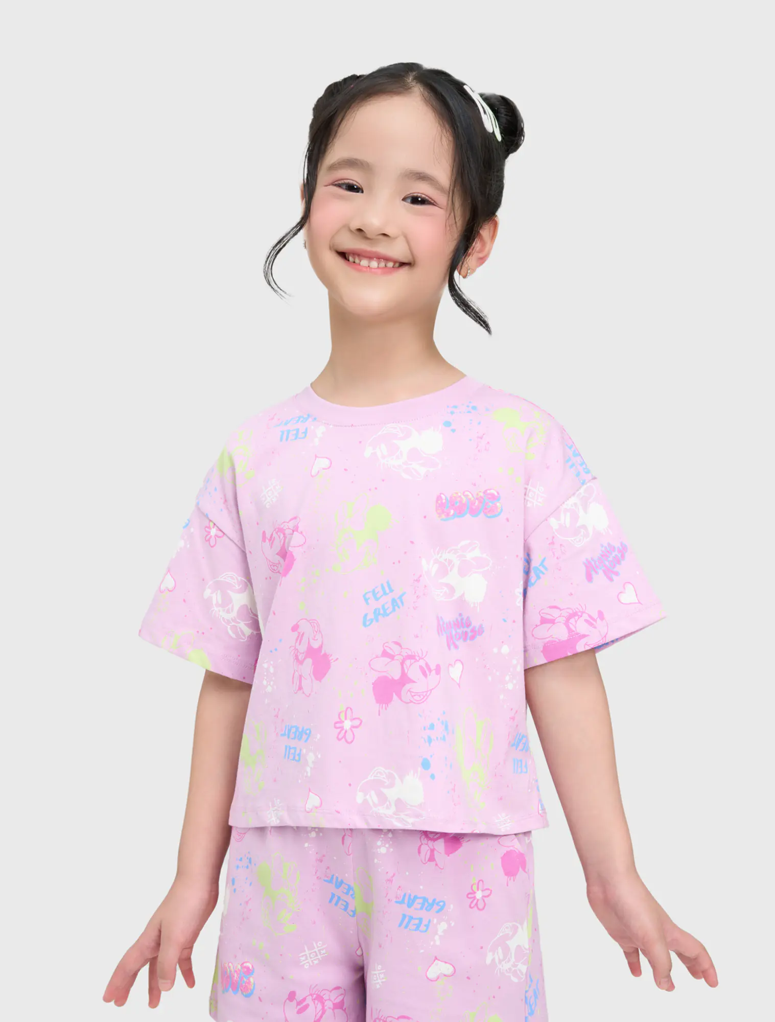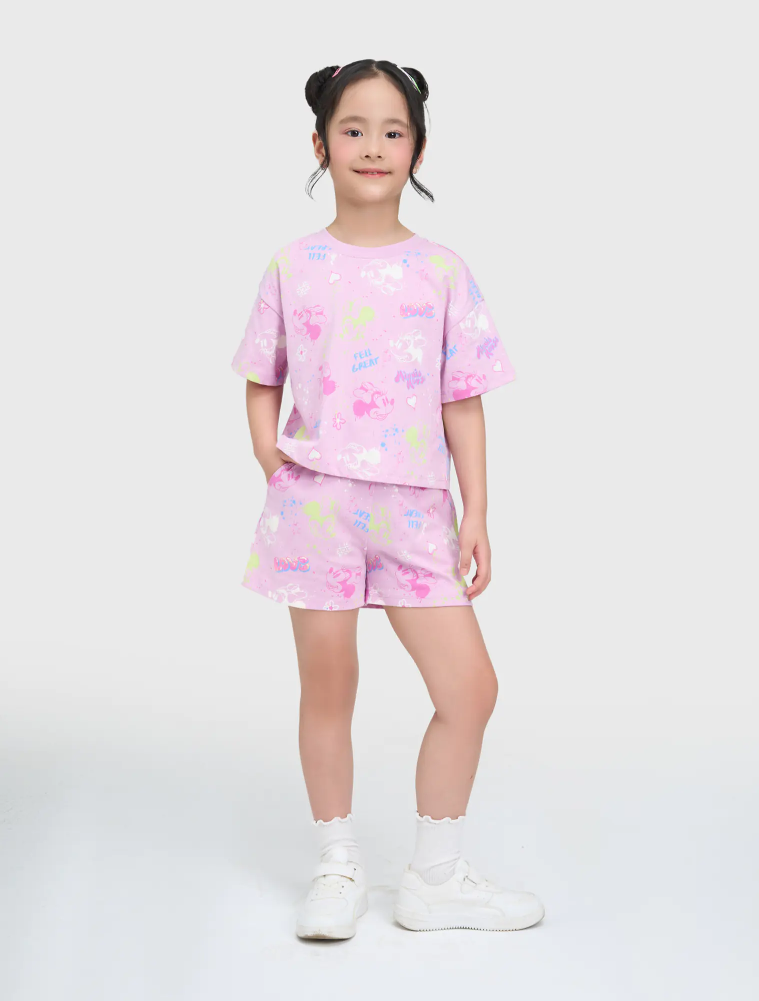 Bộ mặc nhà bé gái in Mickey & Friend, chất liệu cotton thoải mái thoáng mát, hình in ngộ nghĩnh đáng yêu cho các bé.