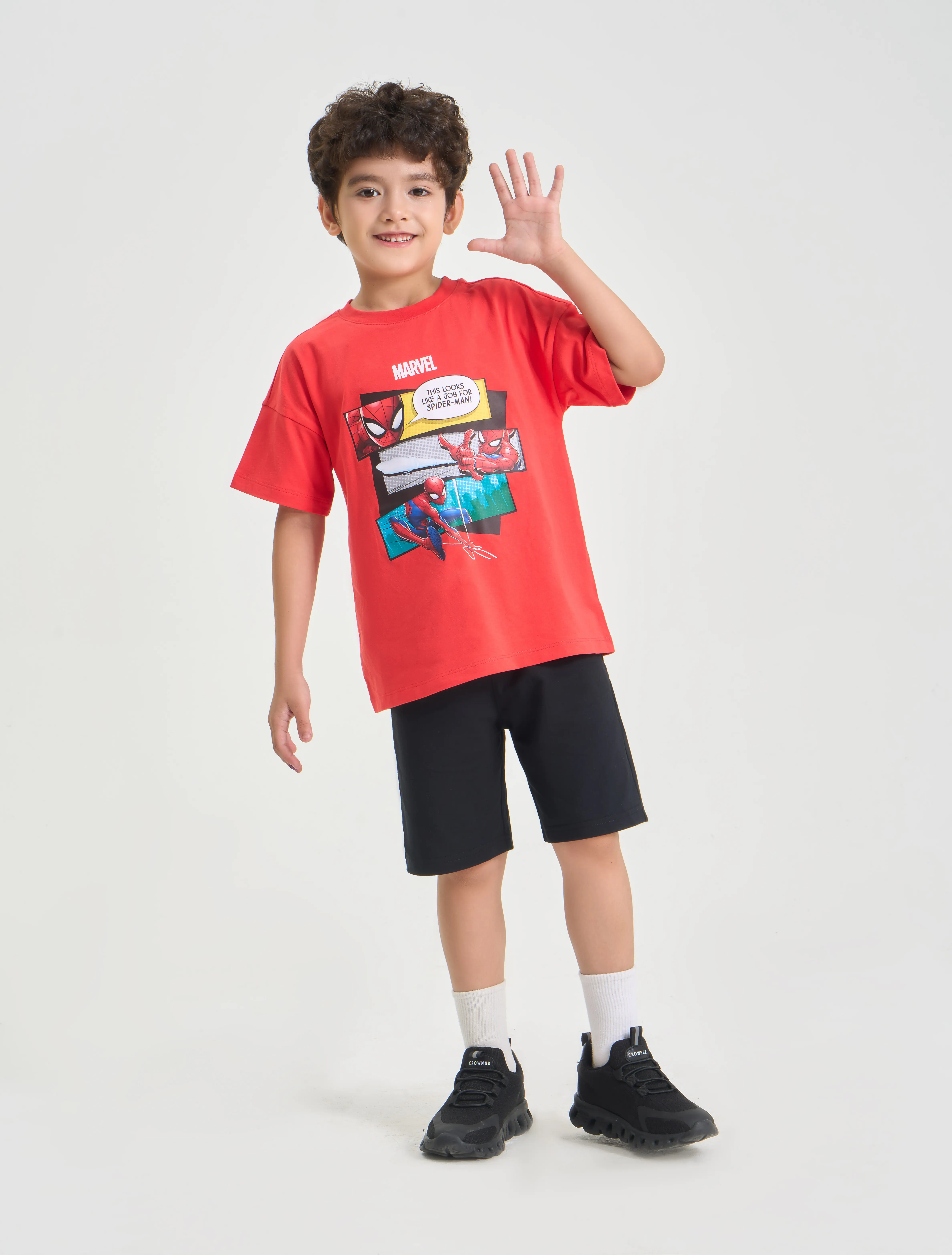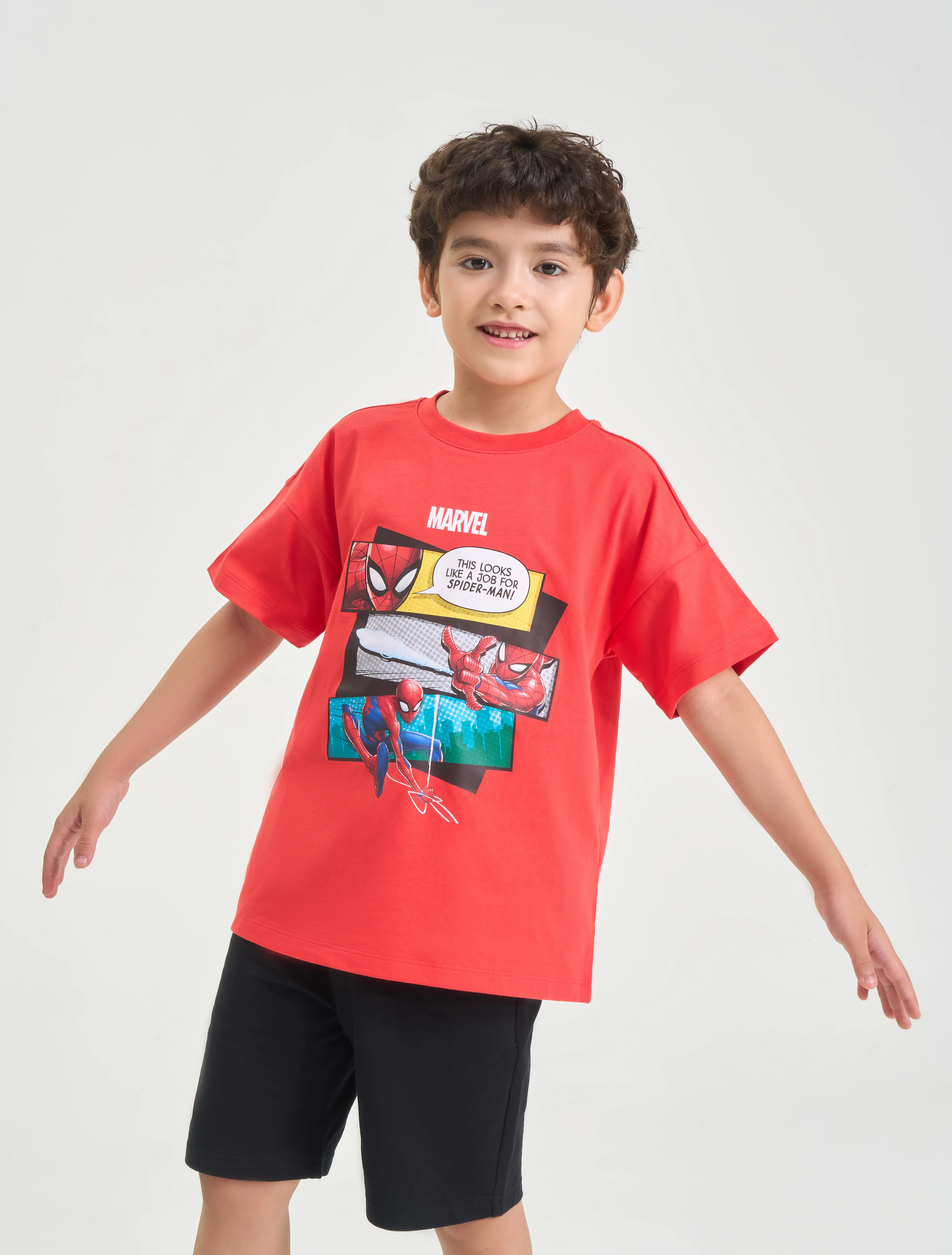 Bộ quần áo bé trai in hình Spiderman, phối màu quần và áo, chất liệu cotton USA thoáng mát, hình in siêu anh hùng đúng sở thích của các bé.
