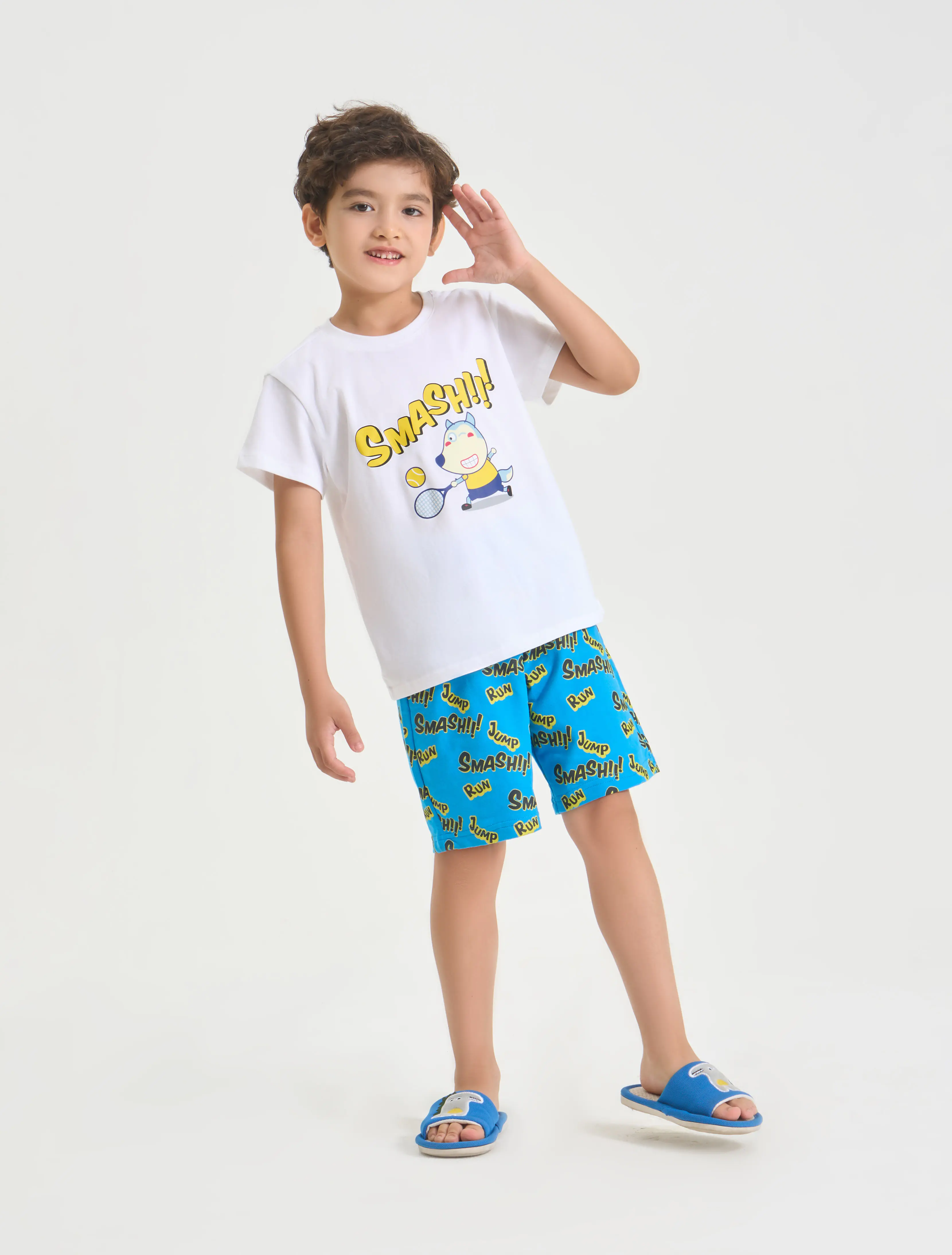 Bộ quần áo bé trai in Wolfoo, chất liệu cotton và cotton và cotton pha mix màu đa dạng, hình in đúng sở thích của các bé tạo sự thích thu cho các bạn nhỏ.