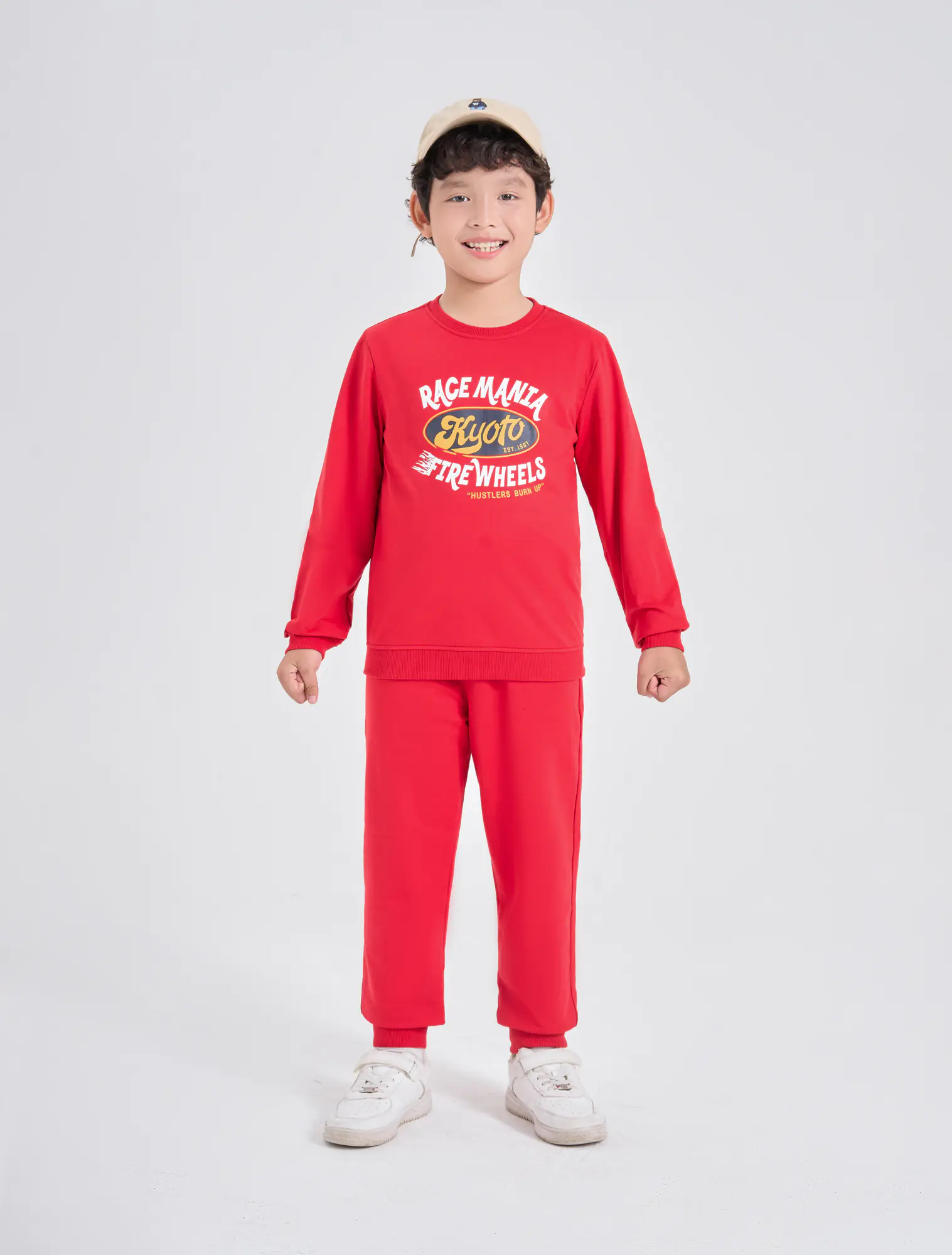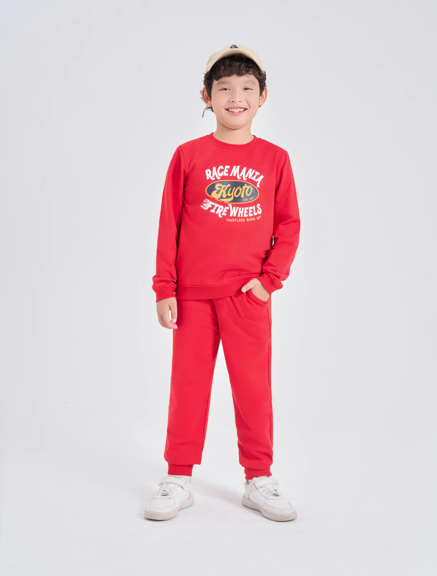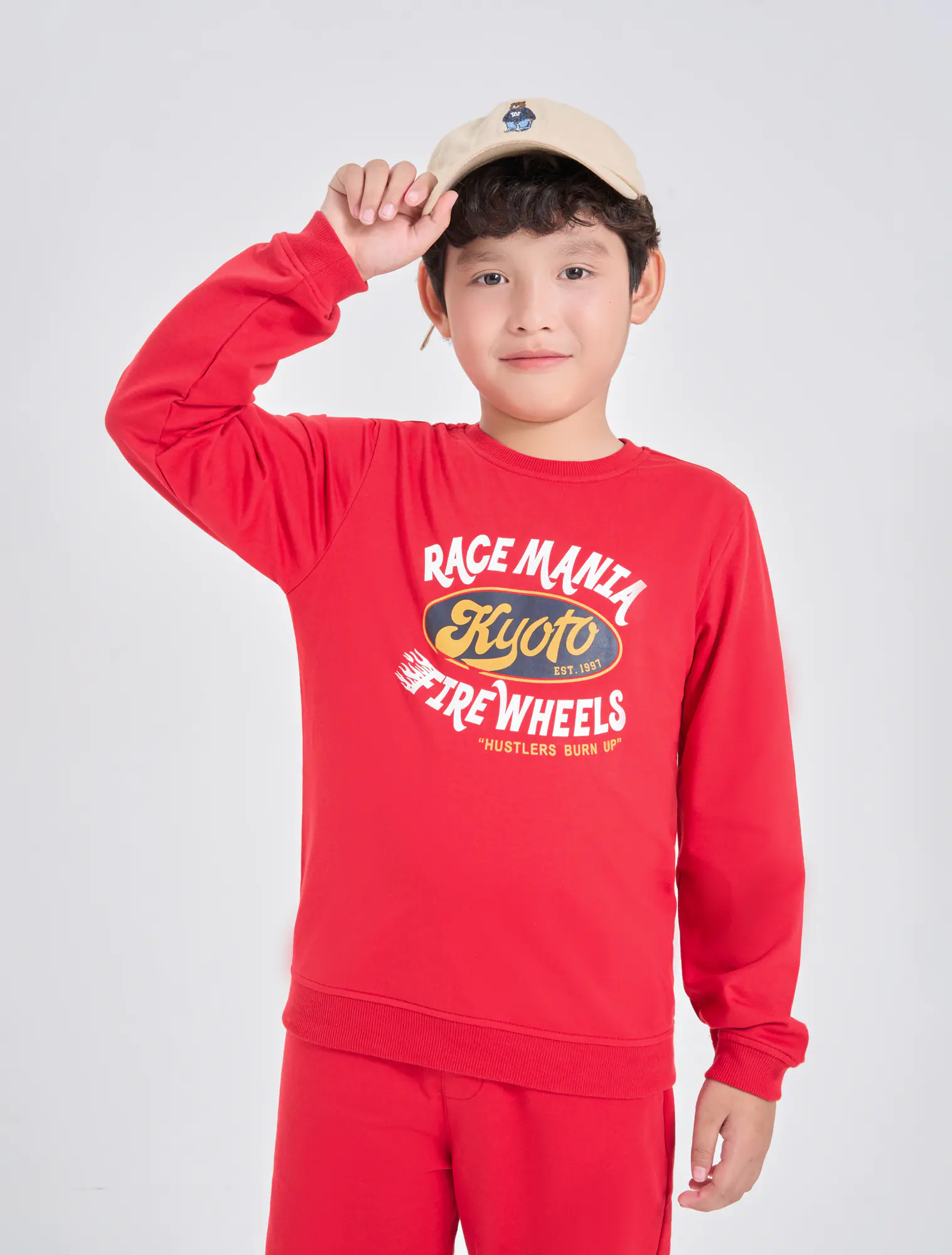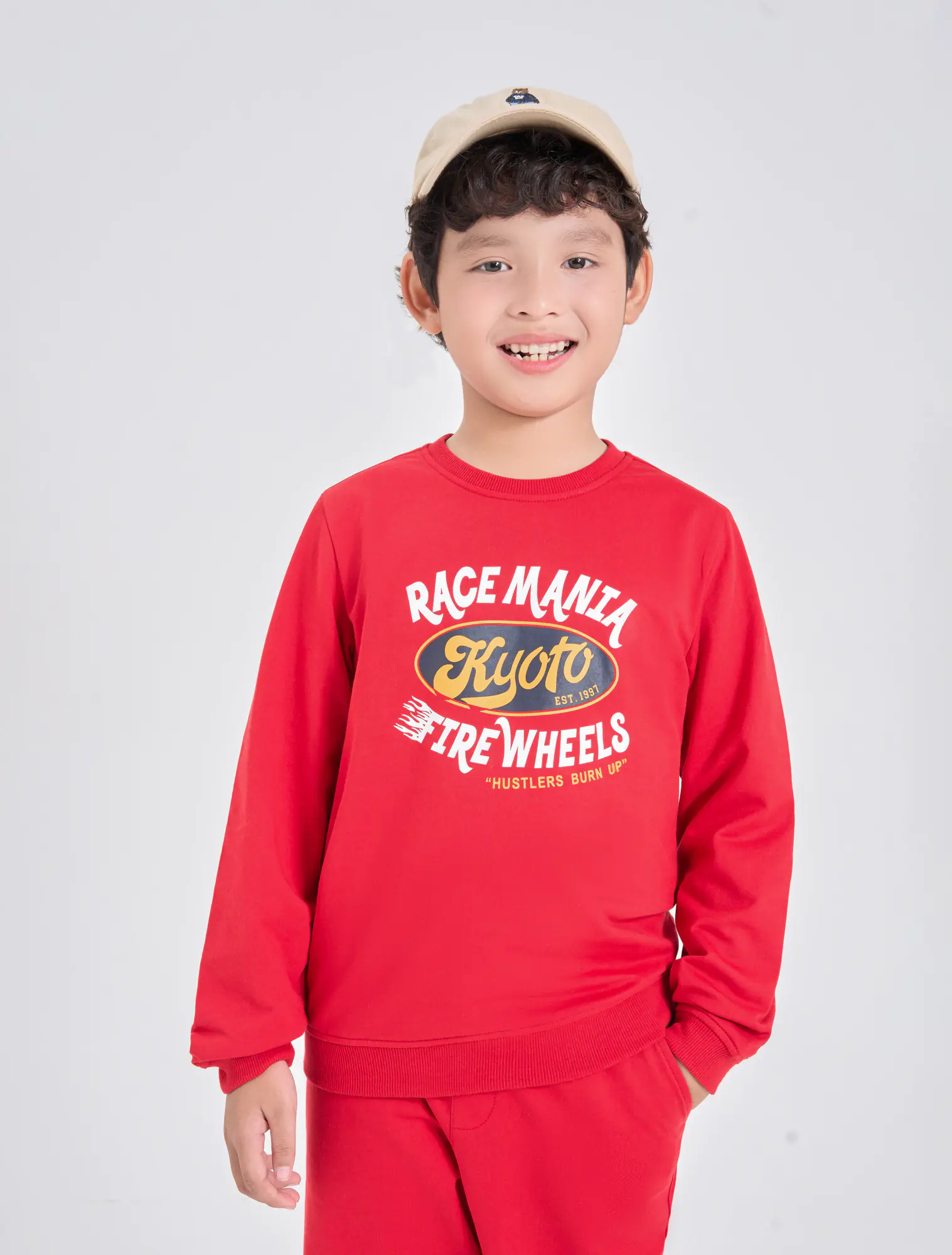 Bộ quần áo nỉ bé trai, chất liệu cotton USA, hình in nổi bật.