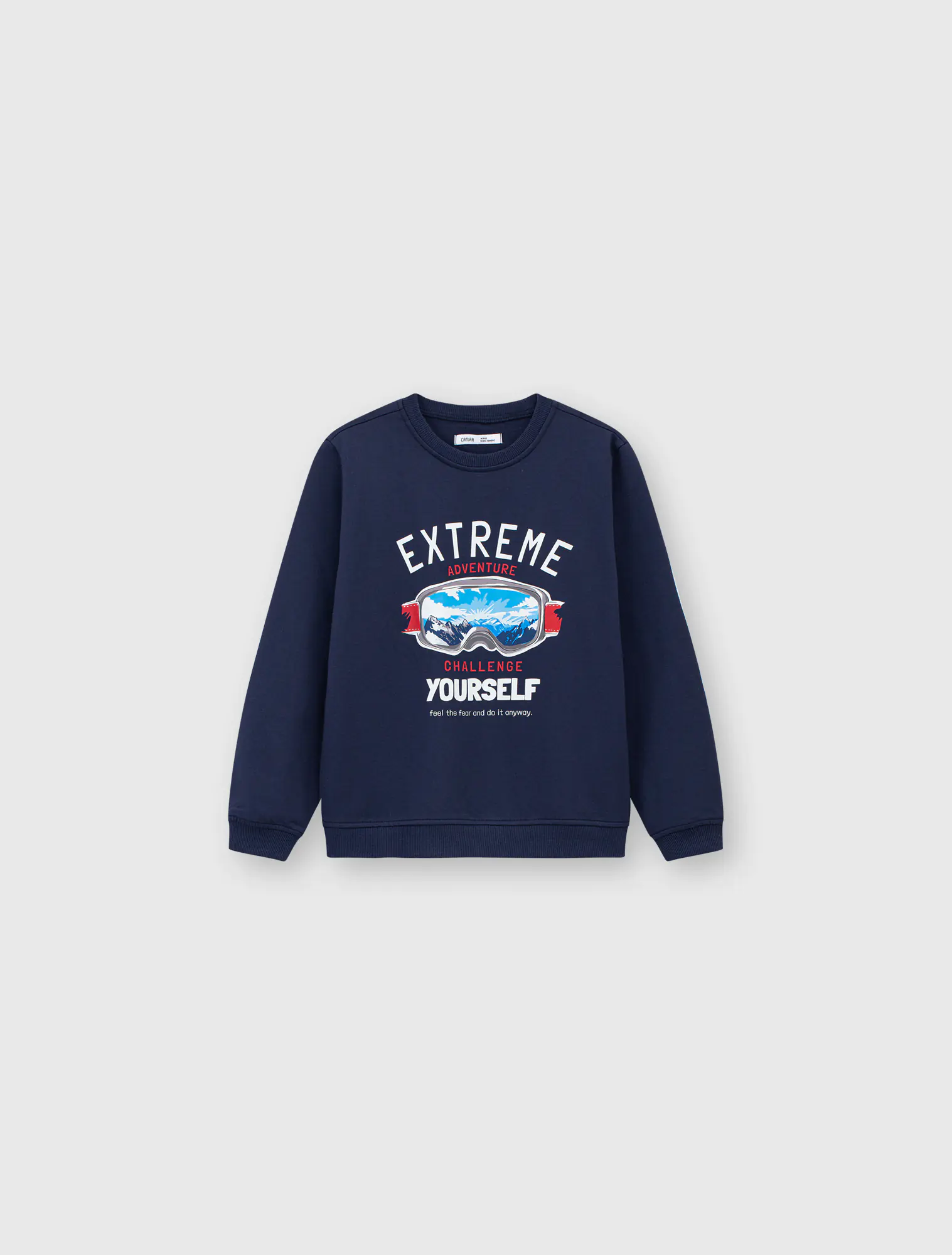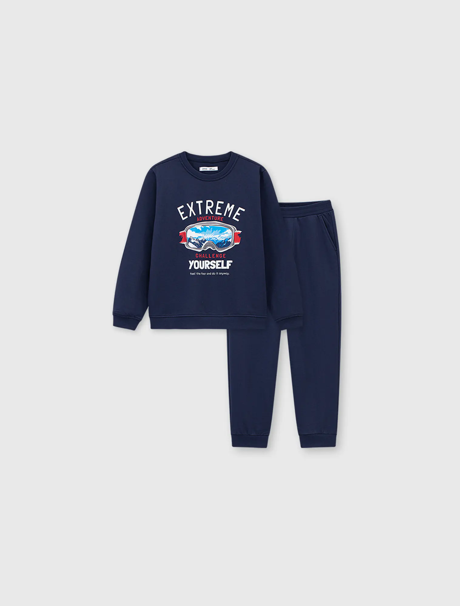 Bộ quần áo nỉ bé trai, chất liệu cotton USA, hình in nổi bật.