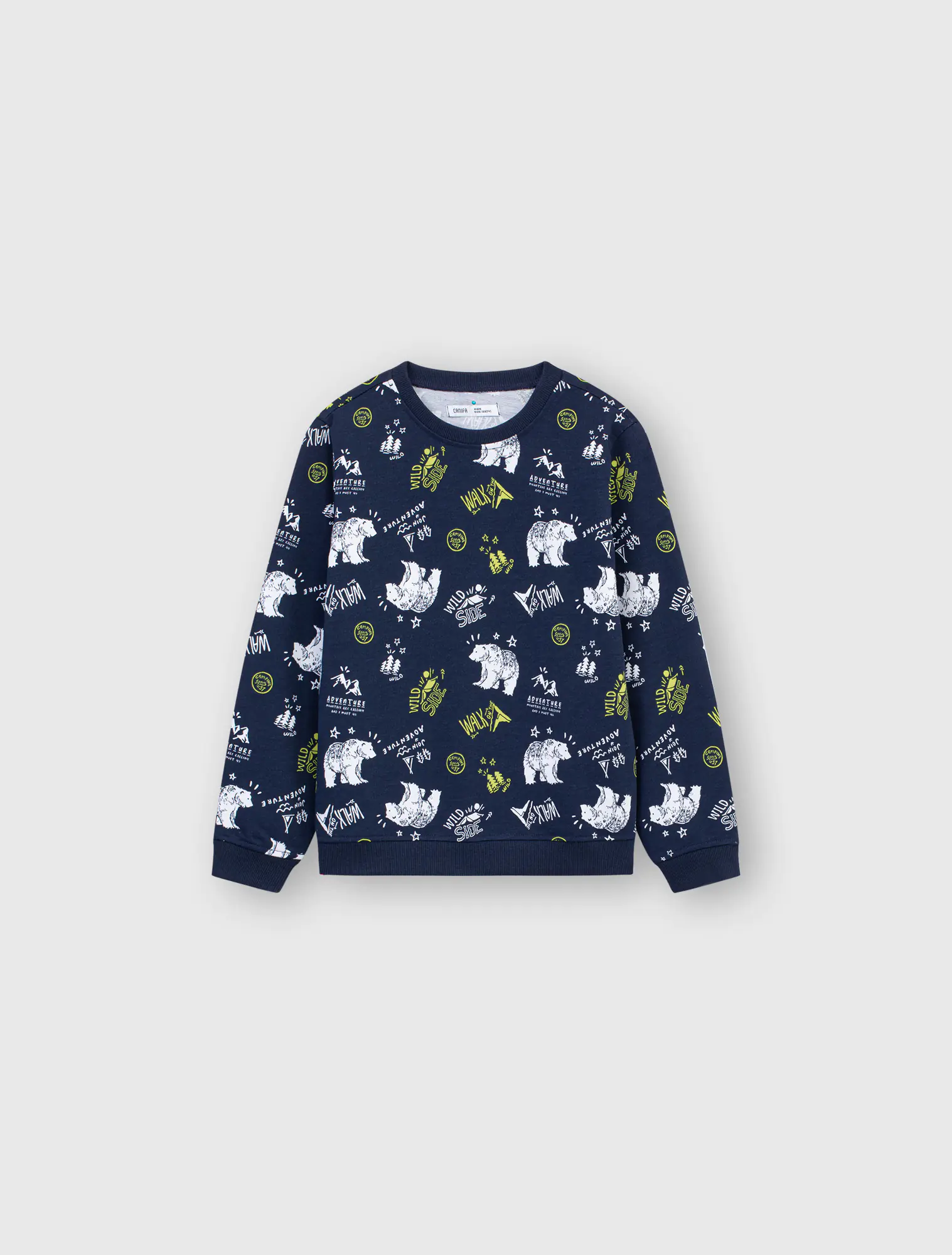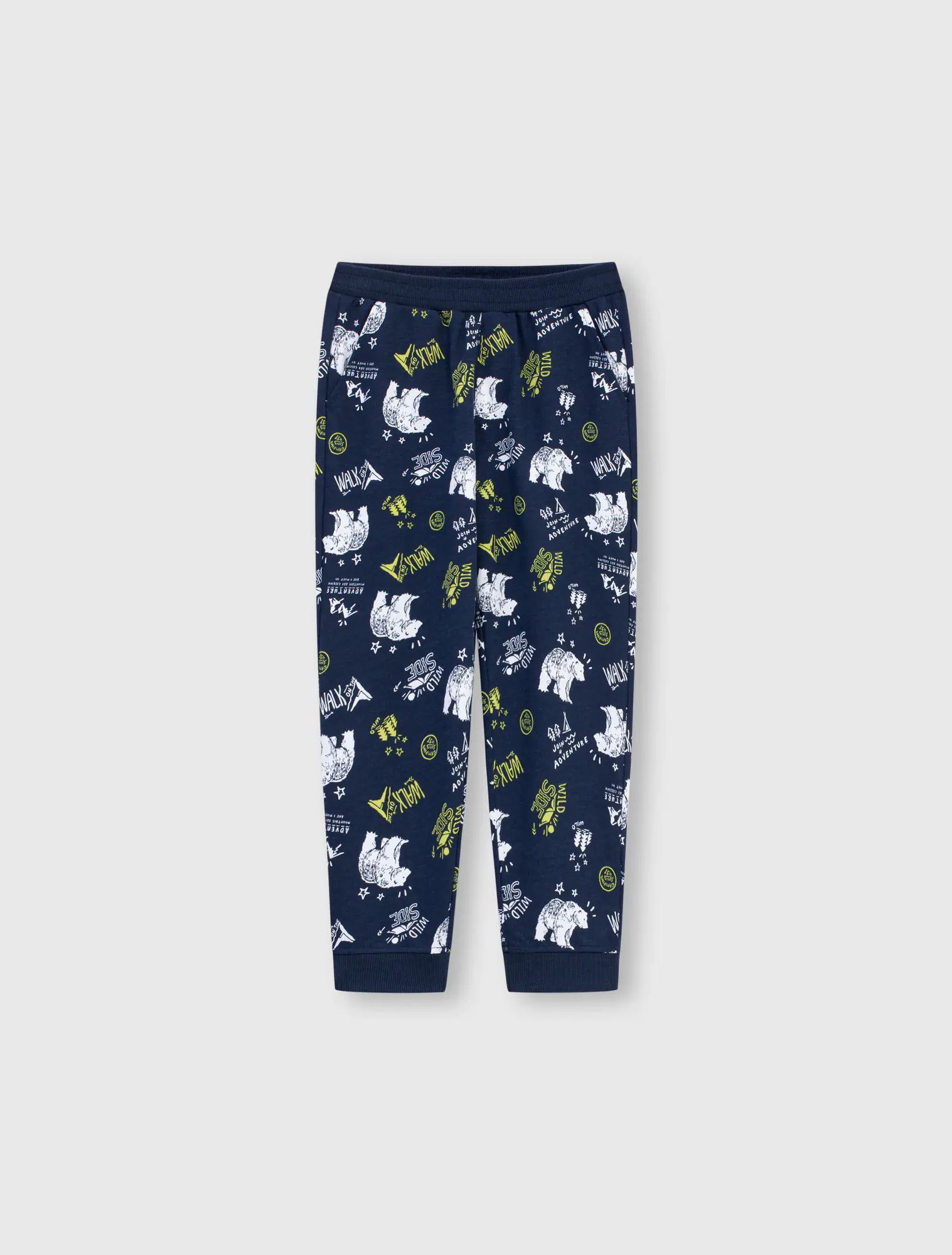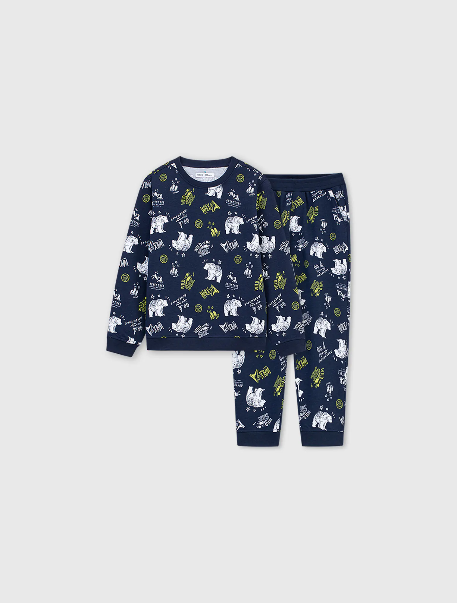 Bộ quần áo bé trai in tràn, chất liệu vảy cá, phom dáng basic phù hợp cho sự lựa chọn của các bé.