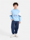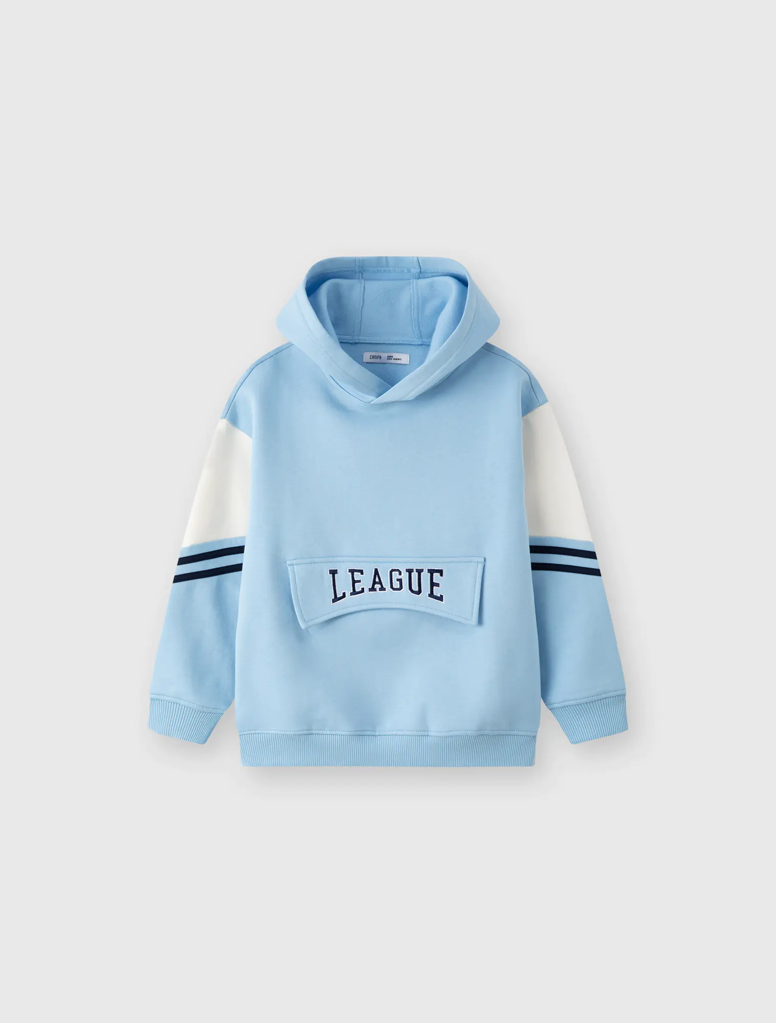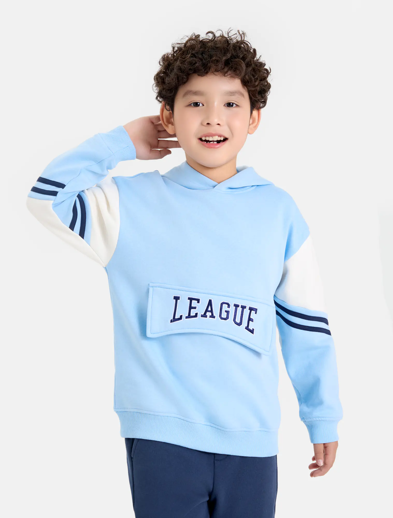 Bộ quần áo nỉ bé trai, chất liệu cào bông, phối màu tay áo, nắp túi trang trí tạo sự mới mẻ cho sự lựa chọn của các mẹ cho trẻ nhỏ.