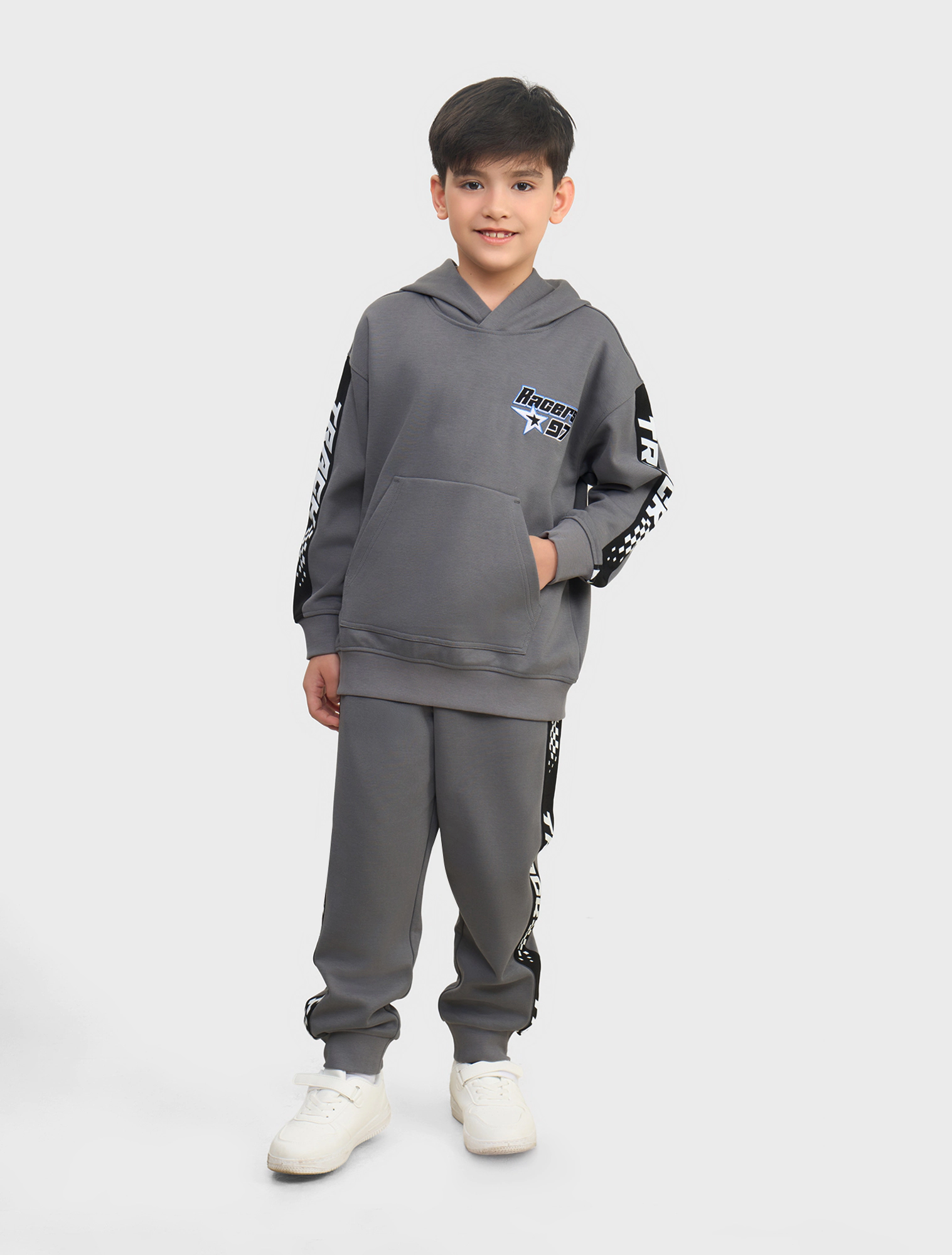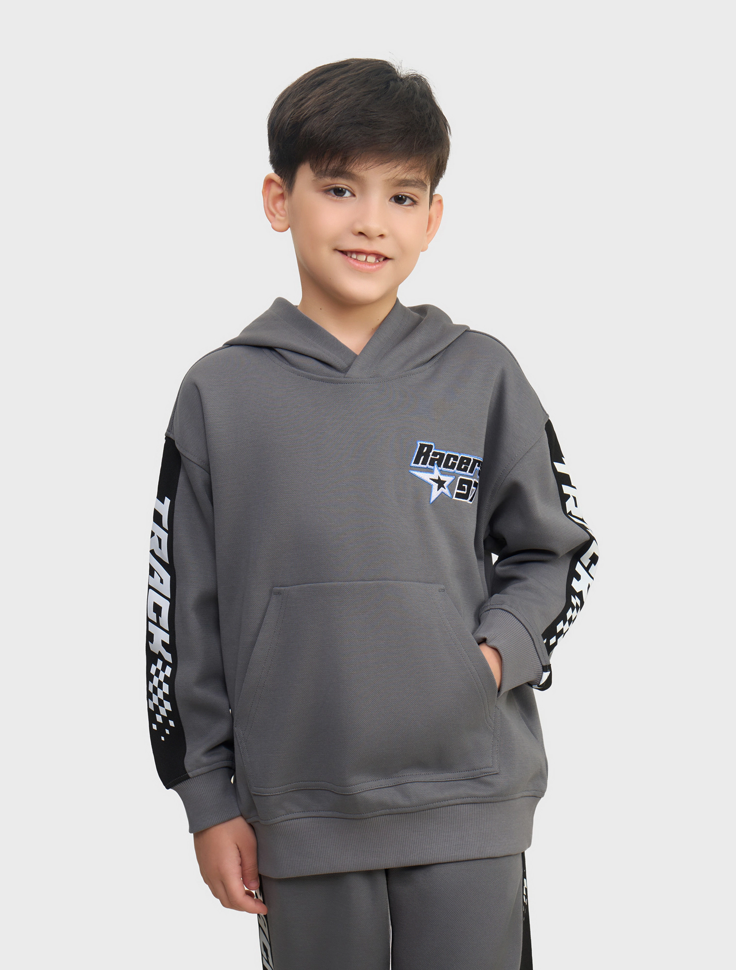 Bộ nỉ bé trai, chất liệu interlock phối àu dây dệt sport, phom dáng relax thoải mái năng động, áo hoodie có mũ hợp nhu cầu của các bạn trẻ hiện nay.
