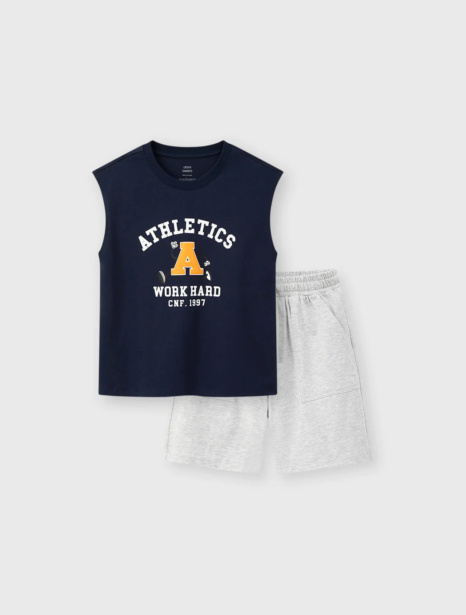 Bộ quần áo sát nách bé trai có hình in phối màu quần và áo. Phong cách sport khỏe khoắn năng động hình in đa dạng phù hợp cho sự lựa chọn của các bạn nhỏ sử dụng trong nhiều hoàn cảnh.
