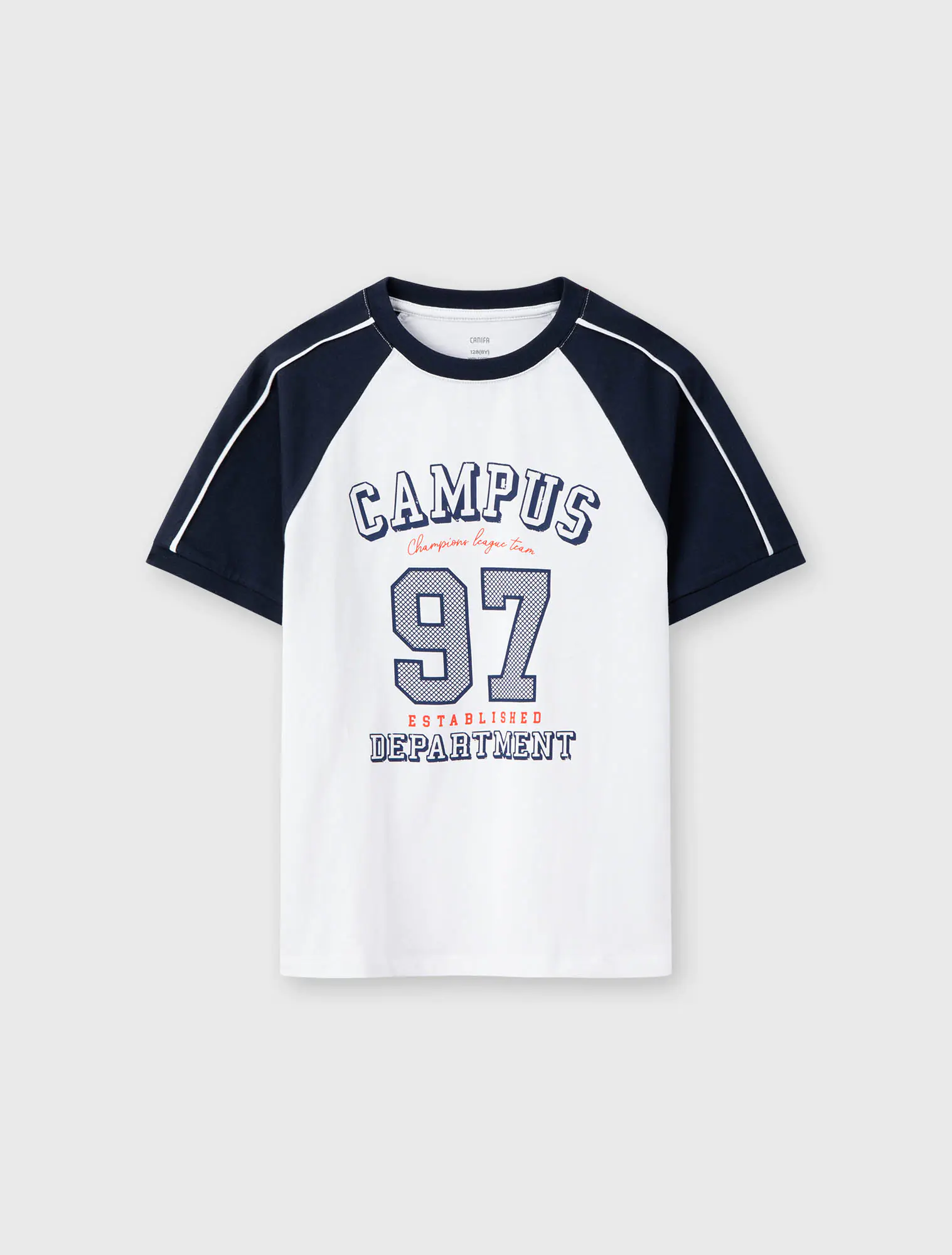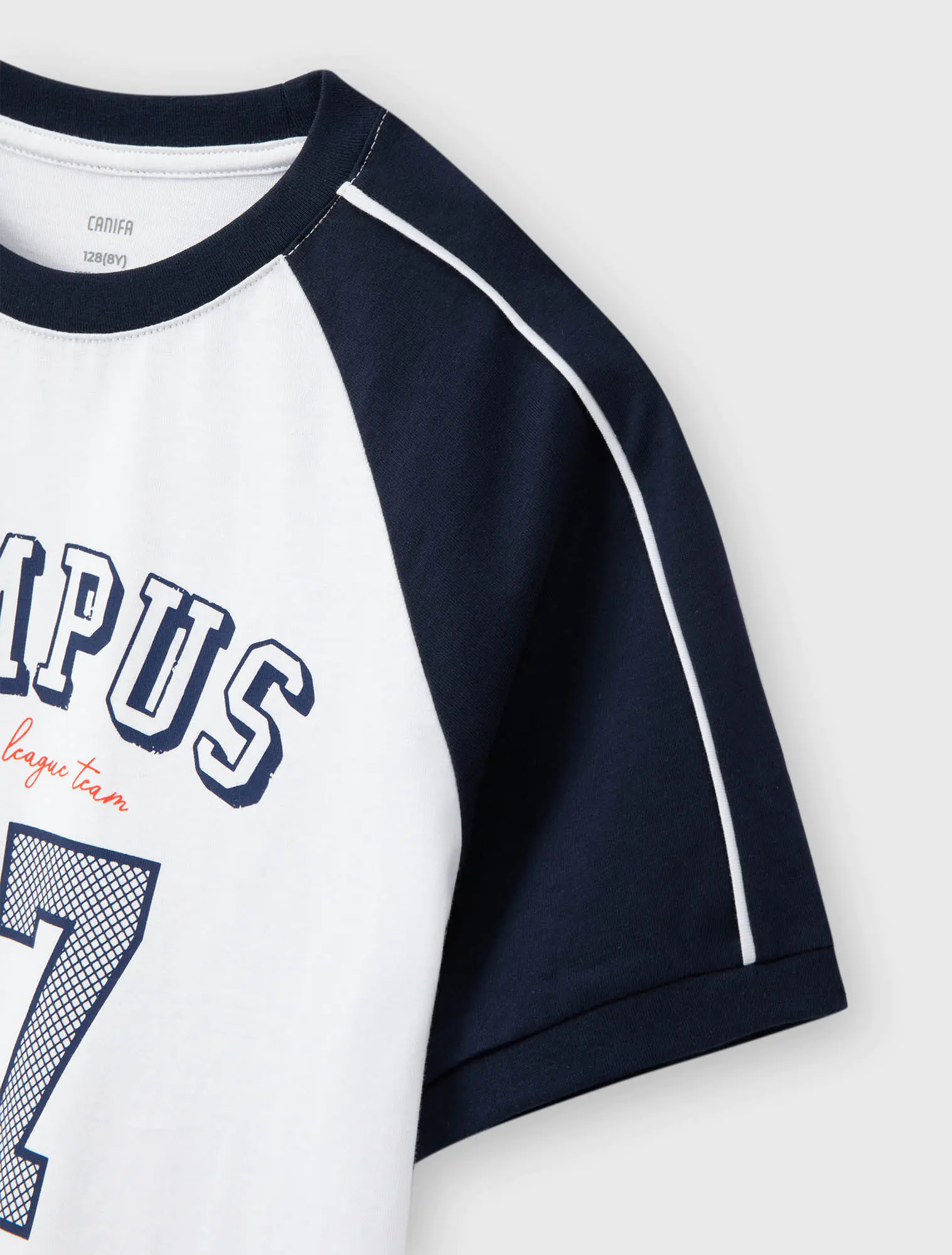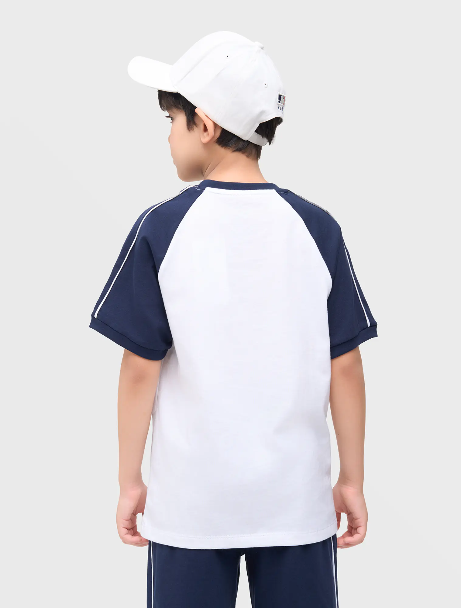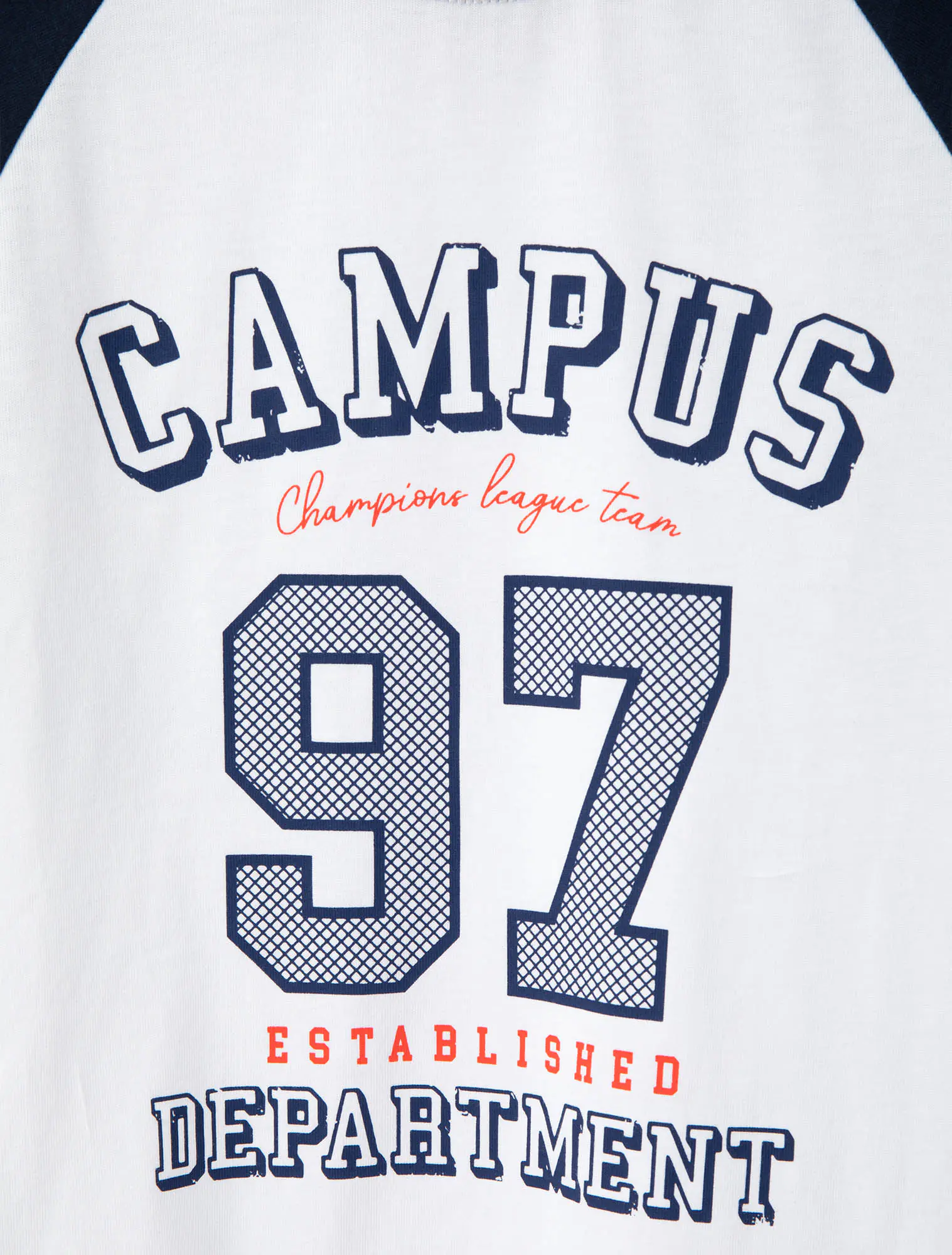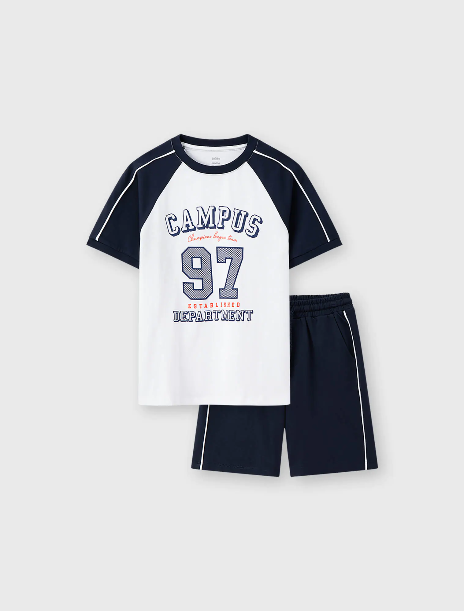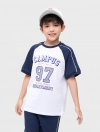Bộ quần áo bé trai có hình in phối màu tay áo và thân áo, phom dáng thoải mái, chất liệu cotton mềm, hình in sport năng động khỏe khoắn phù hợp sử dụng co bé trong nhiều hoàn cảnh.