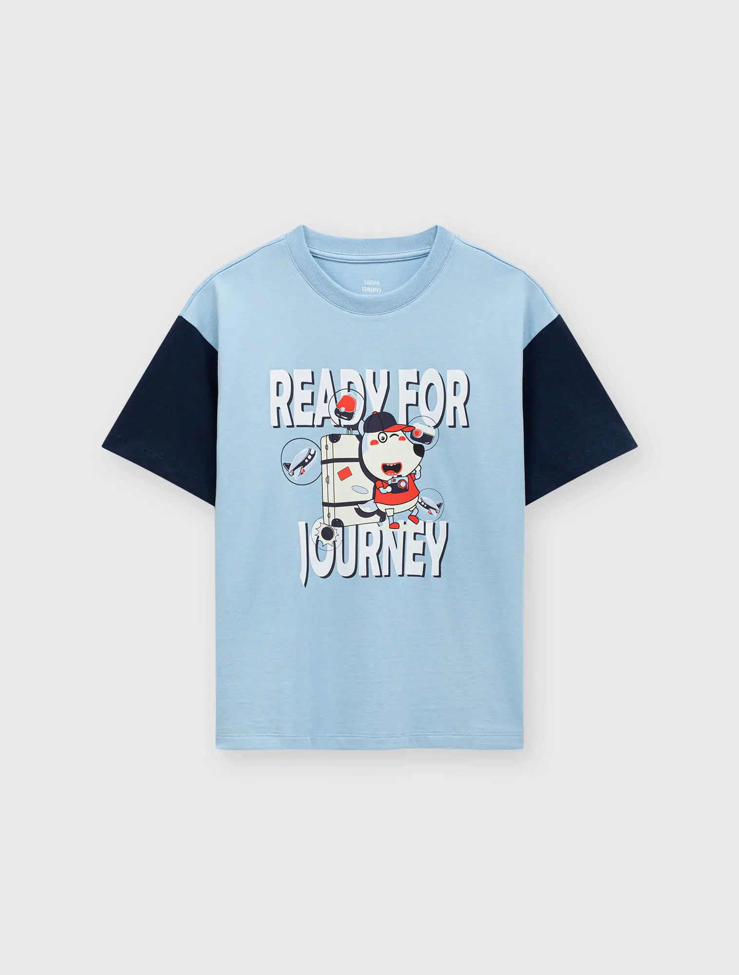 Bộ quần áo bé trai in hình nhân vât Wolfoo, màu sắc hài hòa, chất liệu cotton pha, hình in ngộ nghĩng đáng yêu phù hợp cho sở thích của các bé.