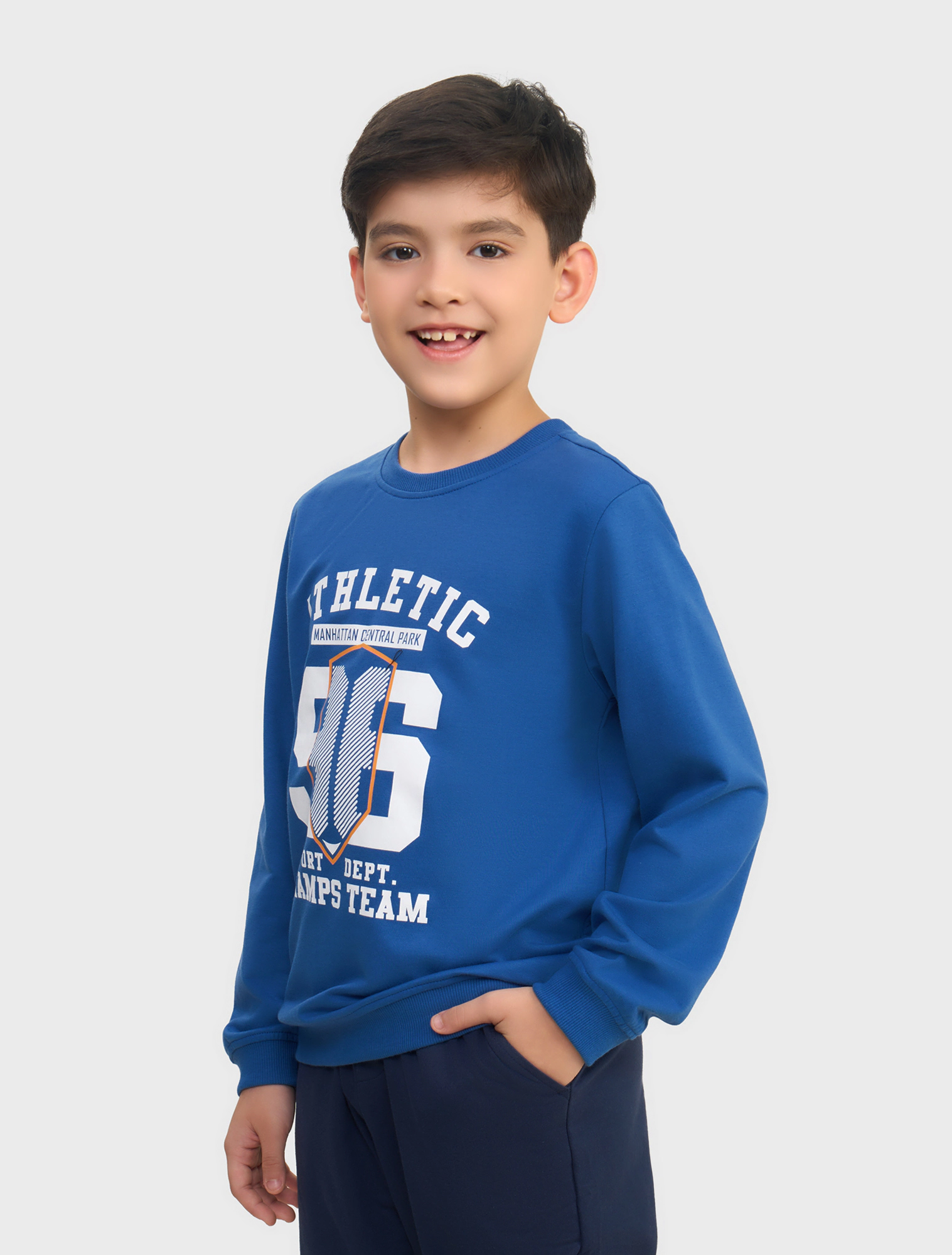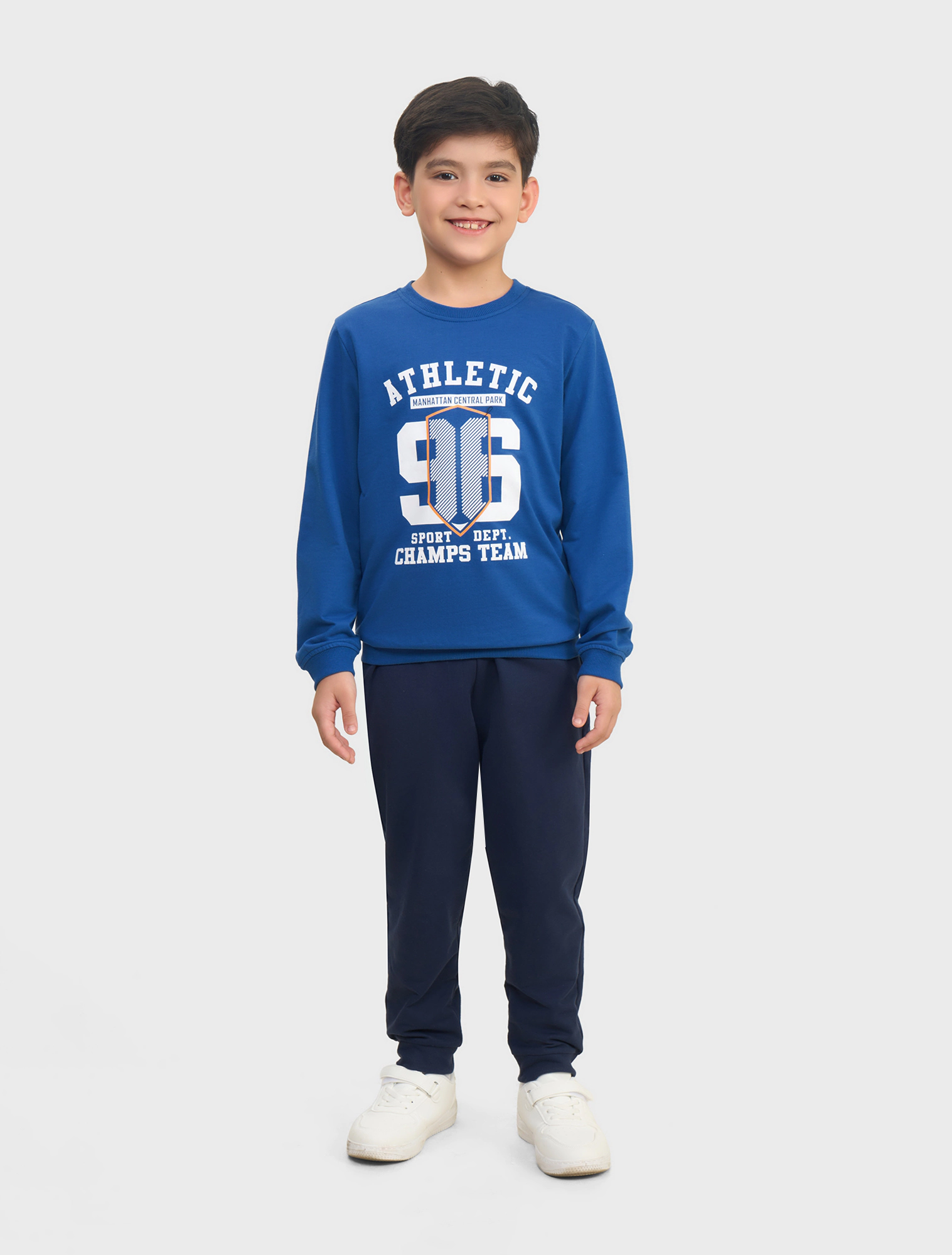 Bộ quần áo nỉ bé trai, chất liệu cotton USA, mix màu hài hòa, hình in nổi bật.