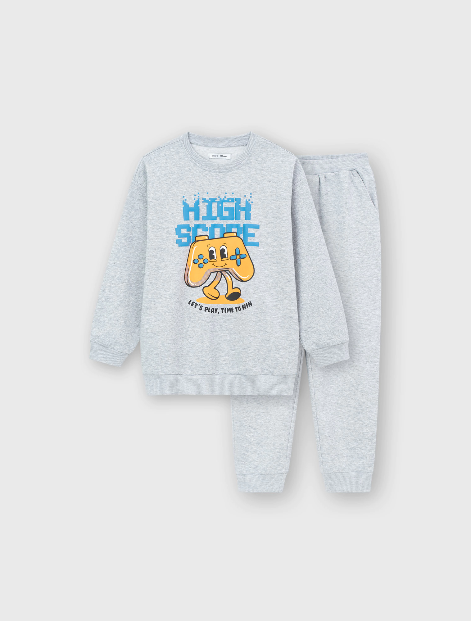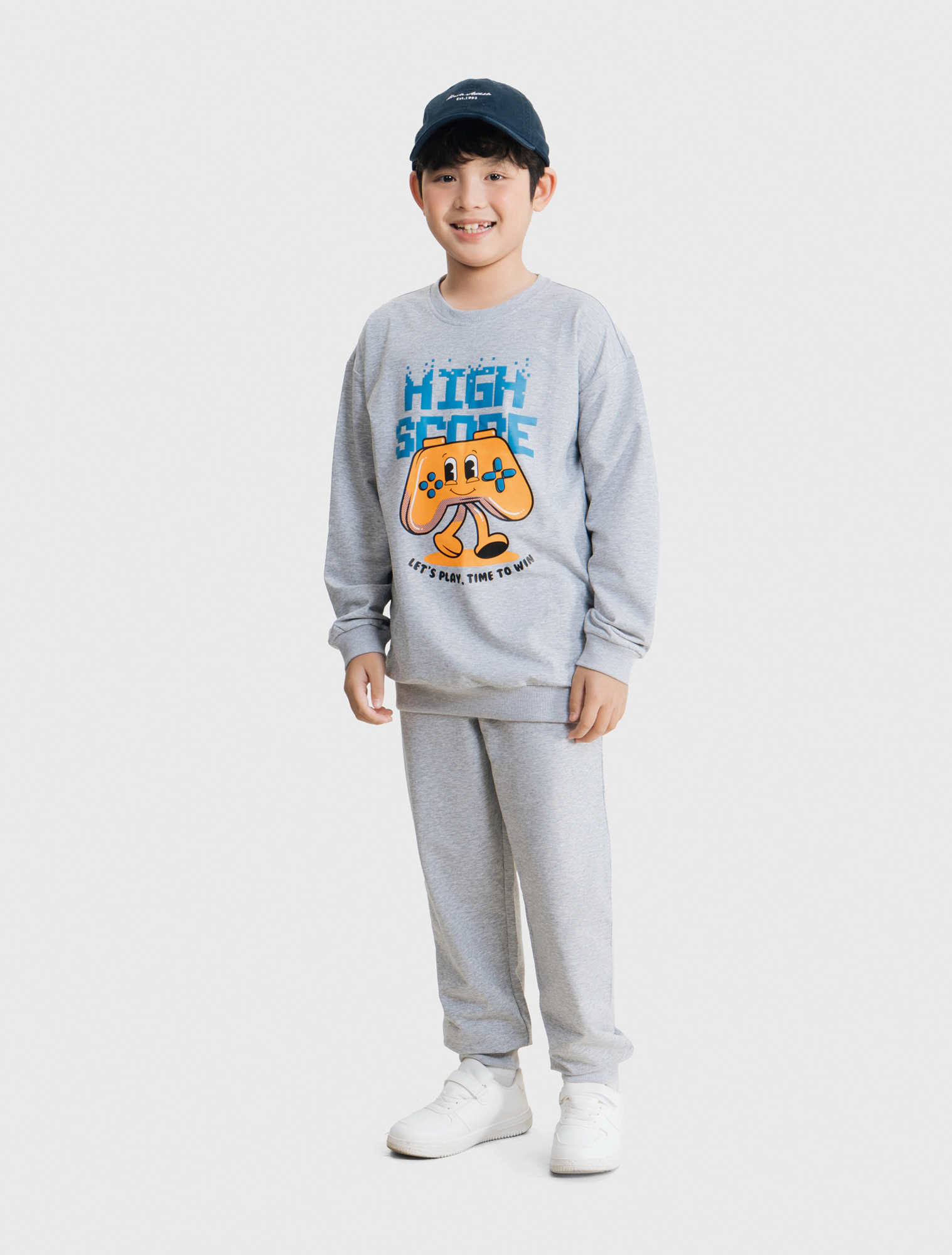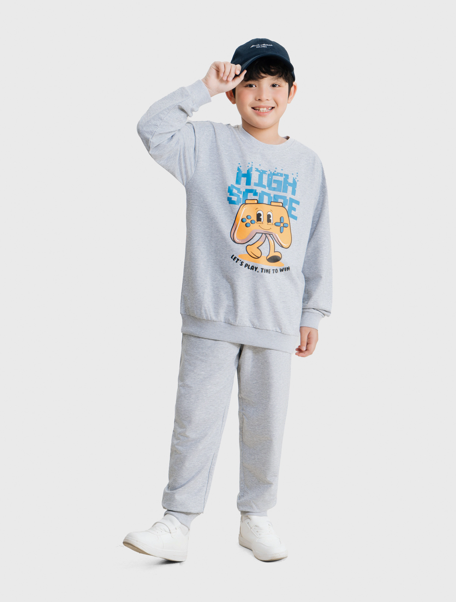 Bộ nỉ bé trai, chất liệu cotton pha, phom dáng cơ bản thoải mái, hình in đa dạng năng động phù hợp cho sở thích của các bé.