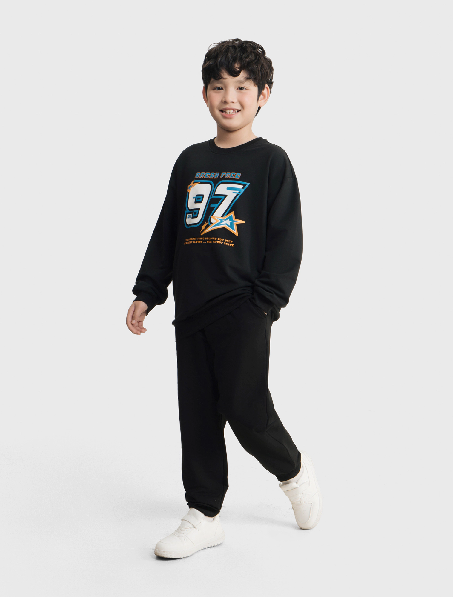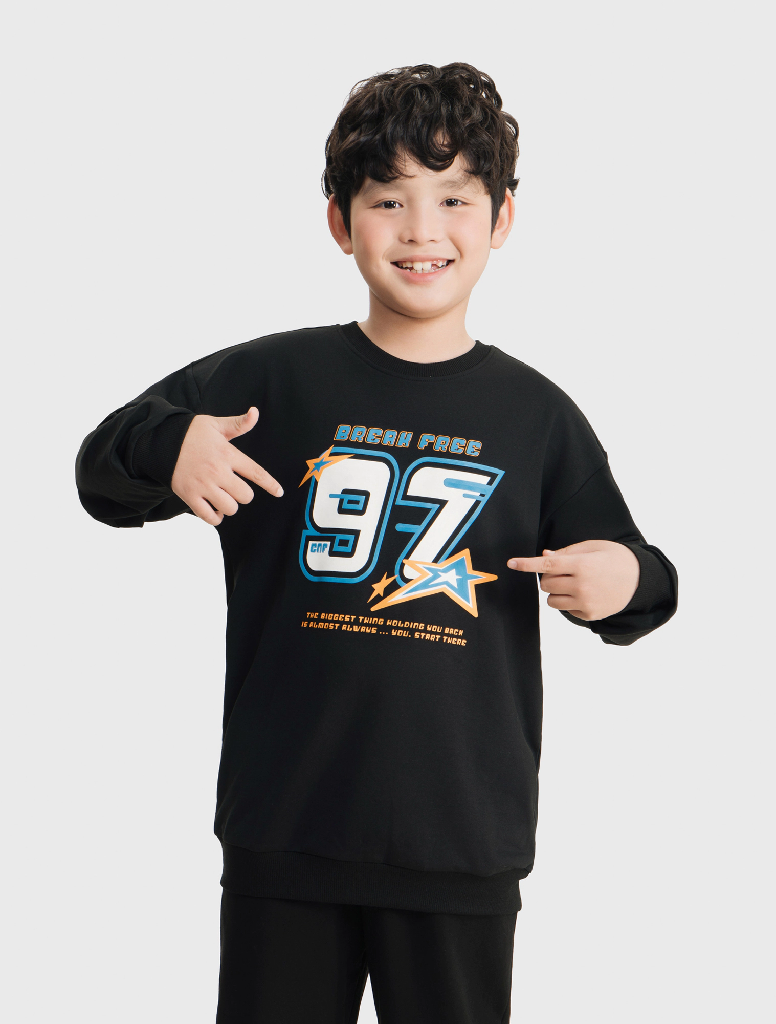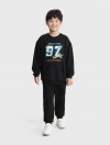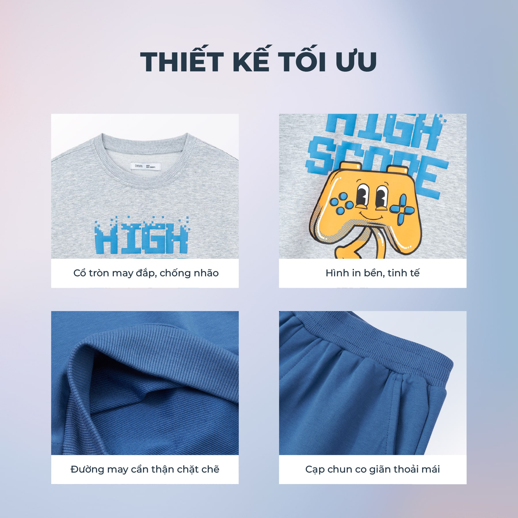 Bộ nỉ bé trai, chất liệu cotton pha, phom dáng cơ bản thoải mái, hình in đa dạng năng động phù hợp cho sở thích của các bé.
