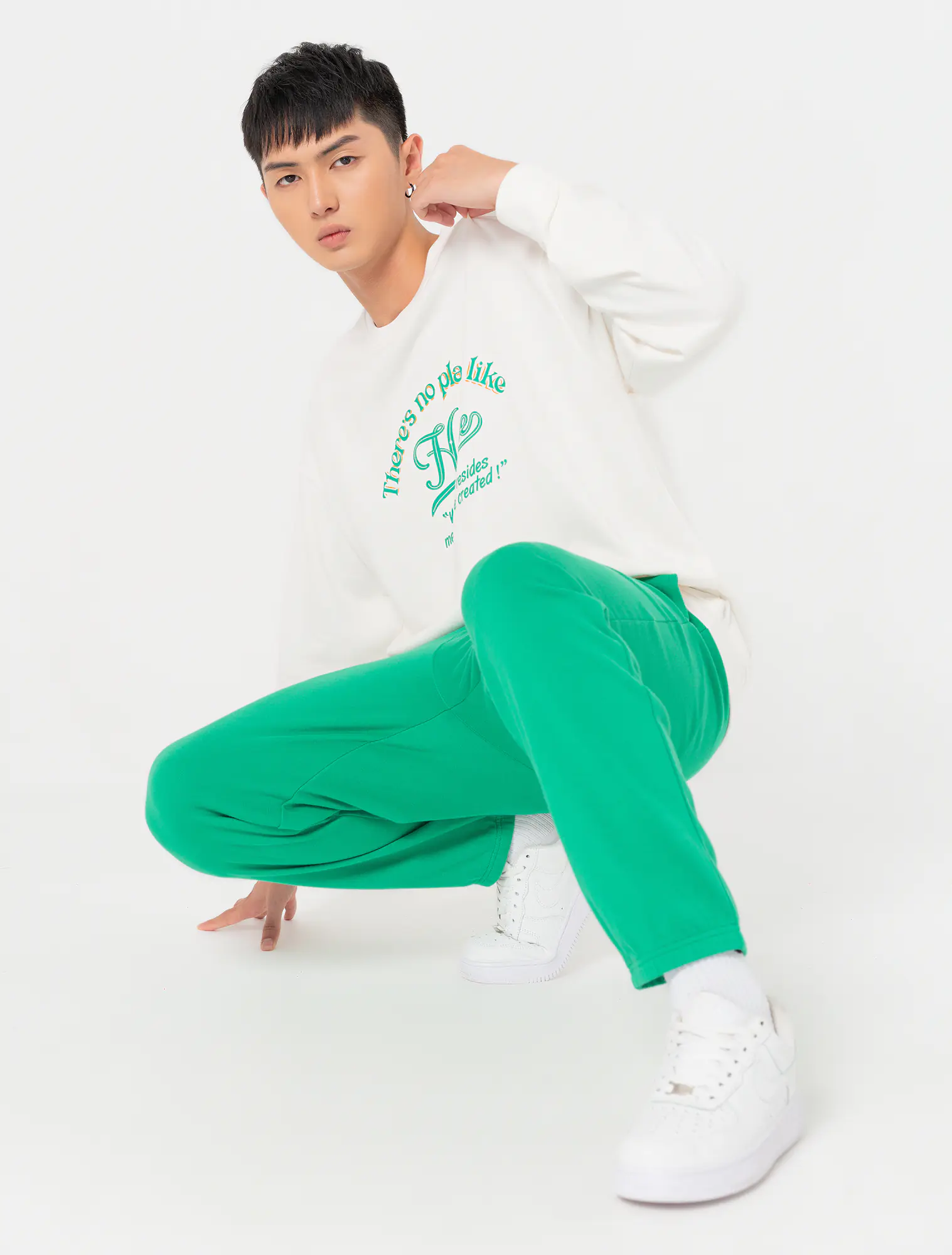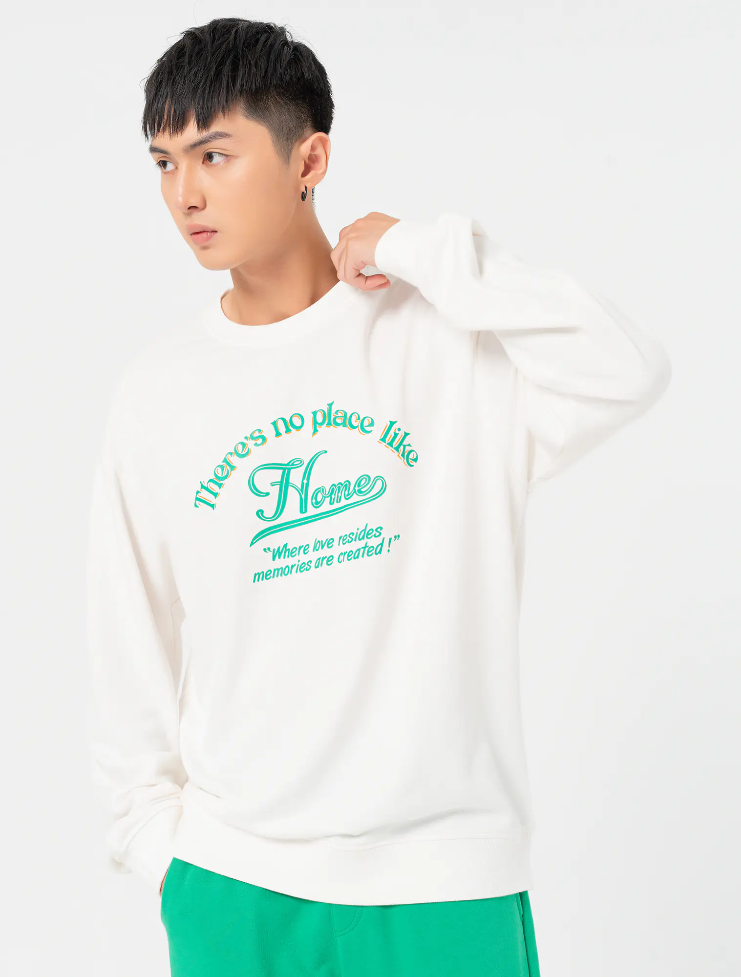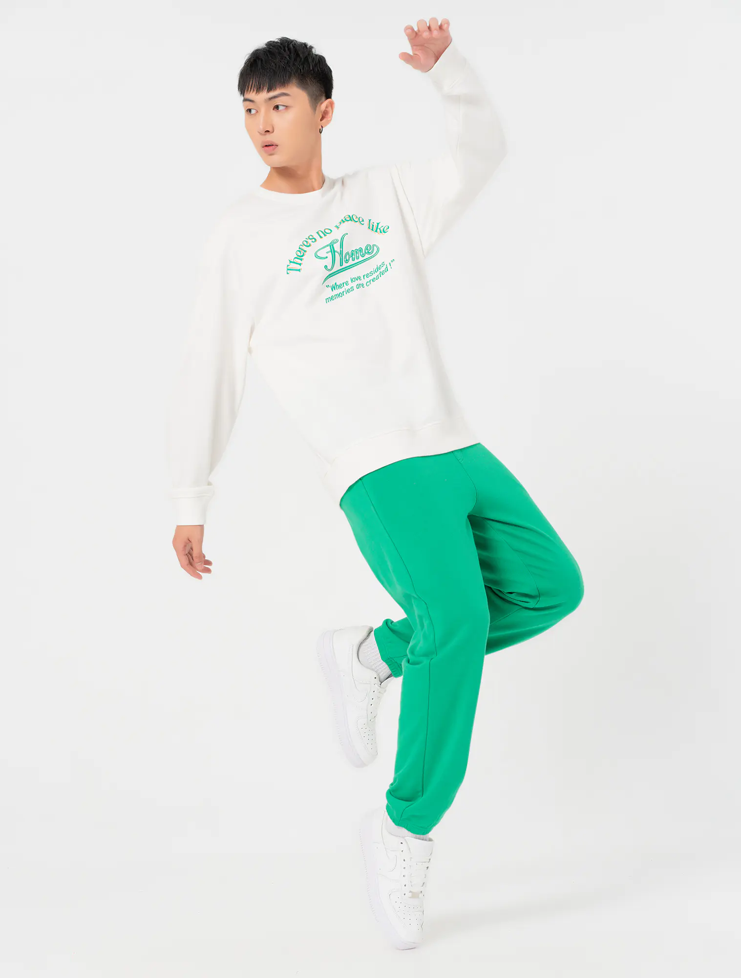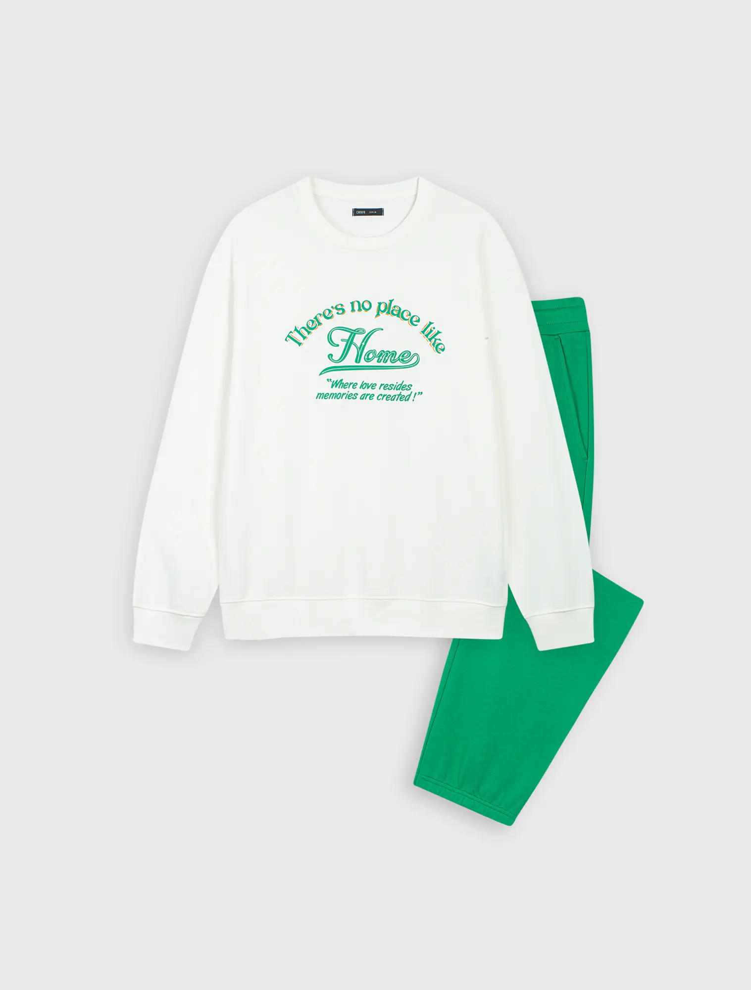 Bộ quần áo chất liệu cotton pha, áo cổ tròn tay dài, phối quần dài khác màu cạp chun, gấu bo chun, phom regular.