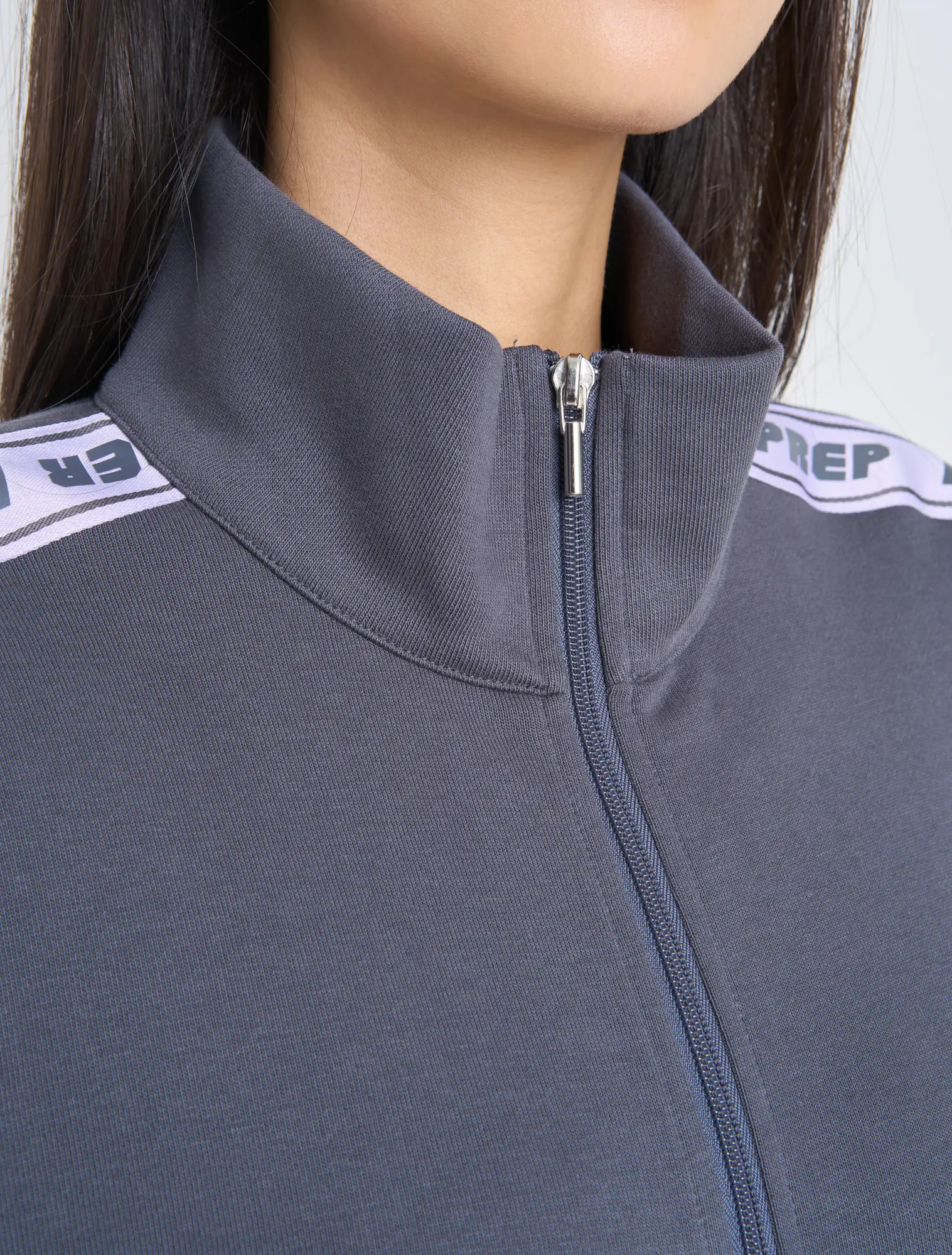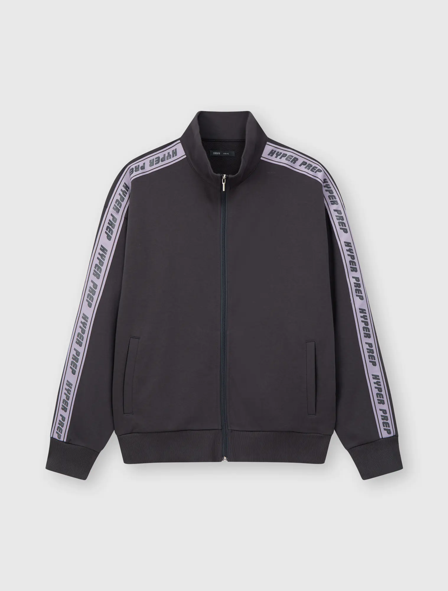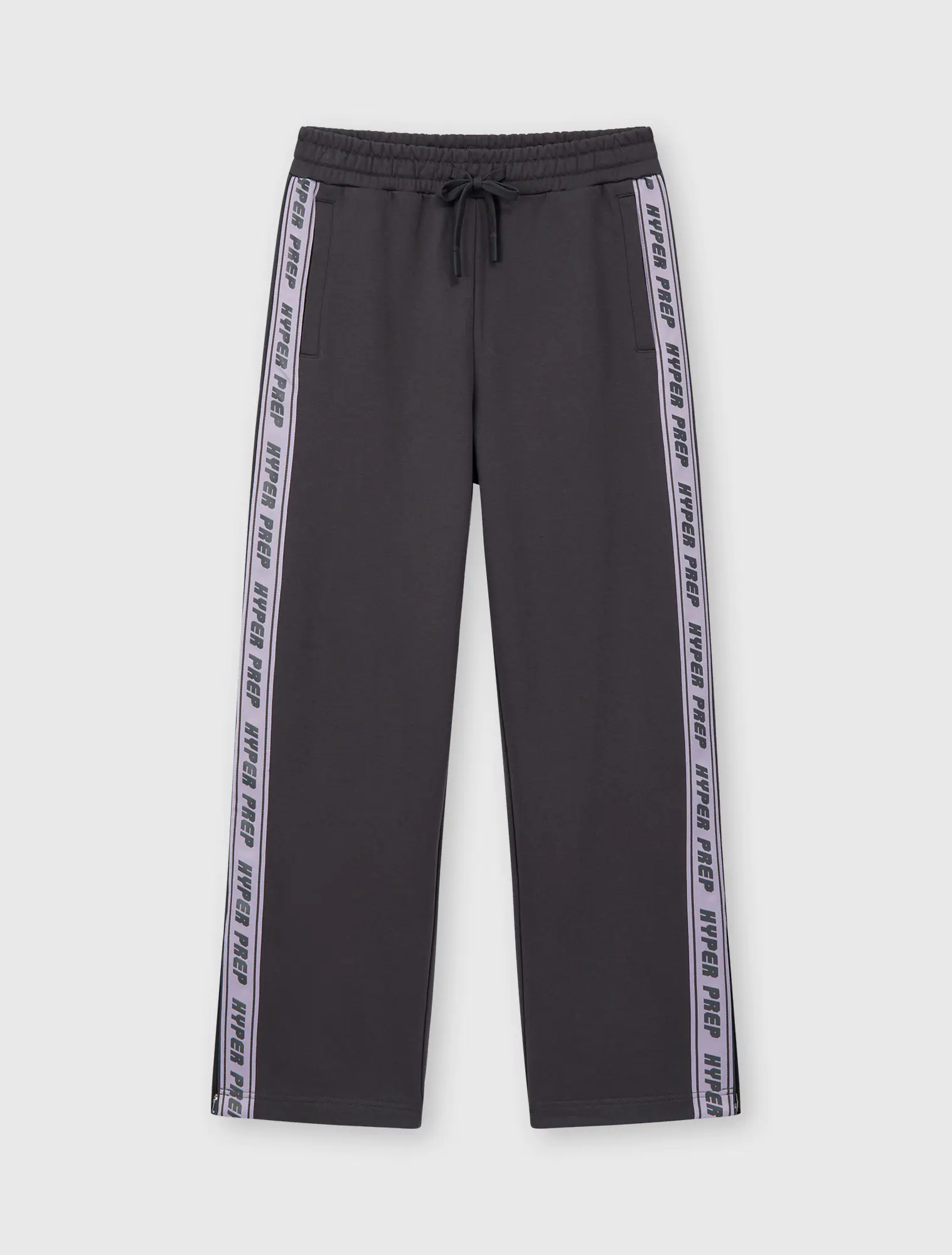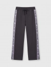 Bộ nỉ gồm quần suông và áo khoác dáng relax. Điểm nhấn là dây phối ốp toàn bộ tay áo và dọc sườn quần, chi tiết gấu quần có khóa kéo tạo ra nhiều kiểu dáng. Bộ sản phẩm mang phong cách thể thao nhưng vẫn lịch sự và dễ ứng dụng trong nhiều hoàn cảnh.