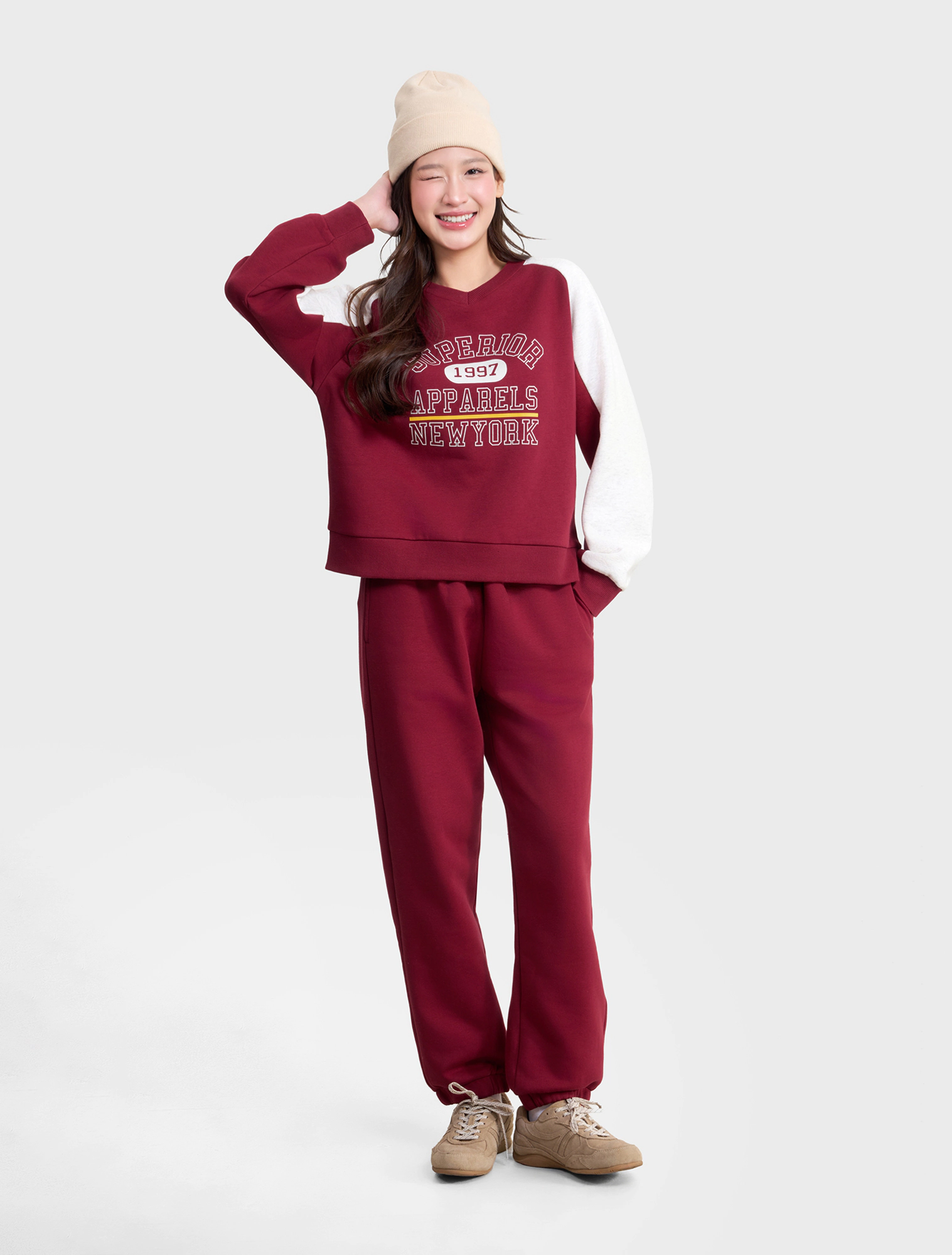 Bộ quần áo nữ có hình in, kiểu dáng thể thao, với màu phối mạnh mẽ và đồ hoạ ấn tượng tạo nên 1 tổng thể ấn tượng mà vẫn dễ sử dụng.