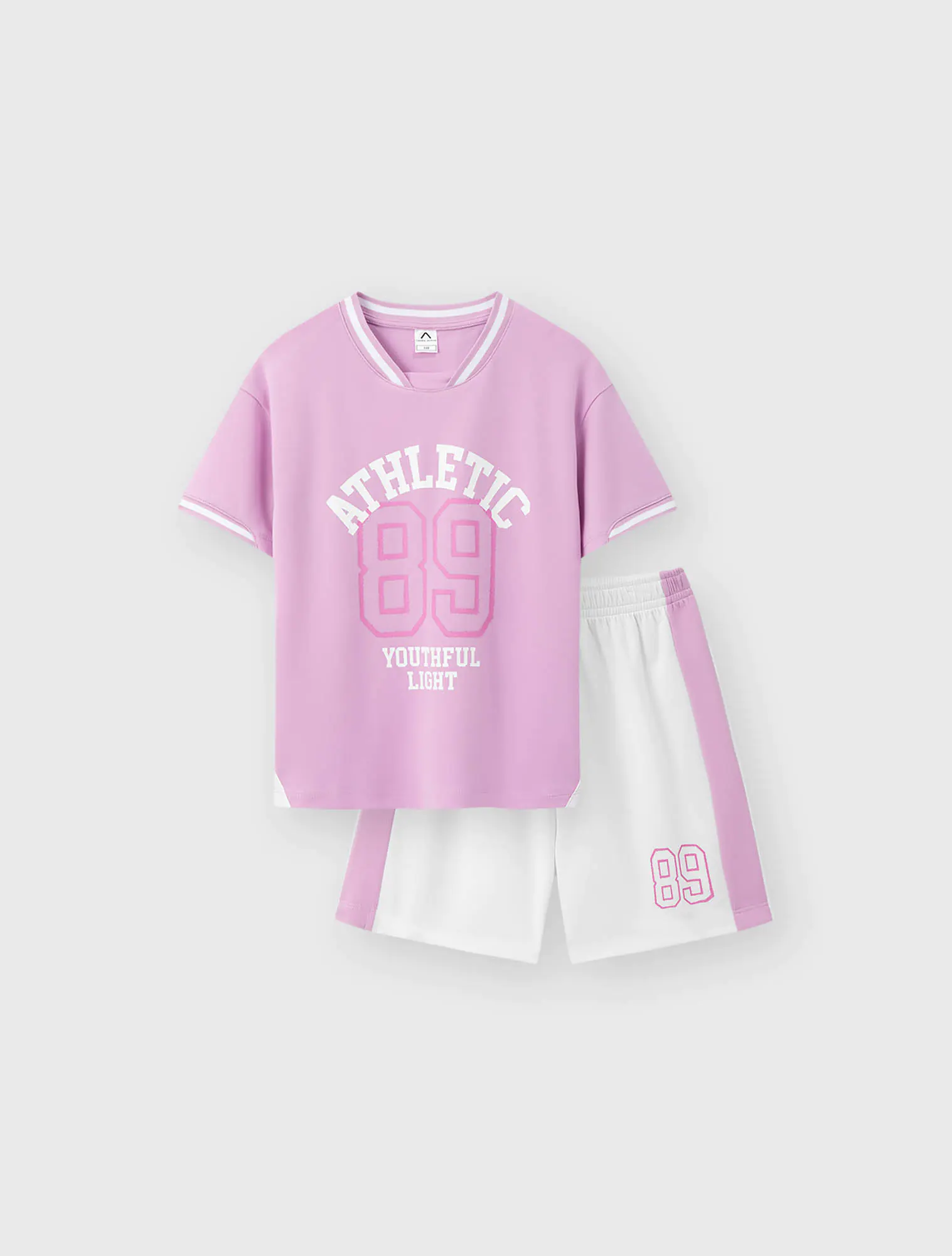 Bộ thể thao unisex trẻ em. Áo cộc tay và quần soóc kiểu dáng thời trang, năng động. Bộ quần áo pha phối màu hiện đại, phù hợp nhiều hoàn cảnh sử dụng.