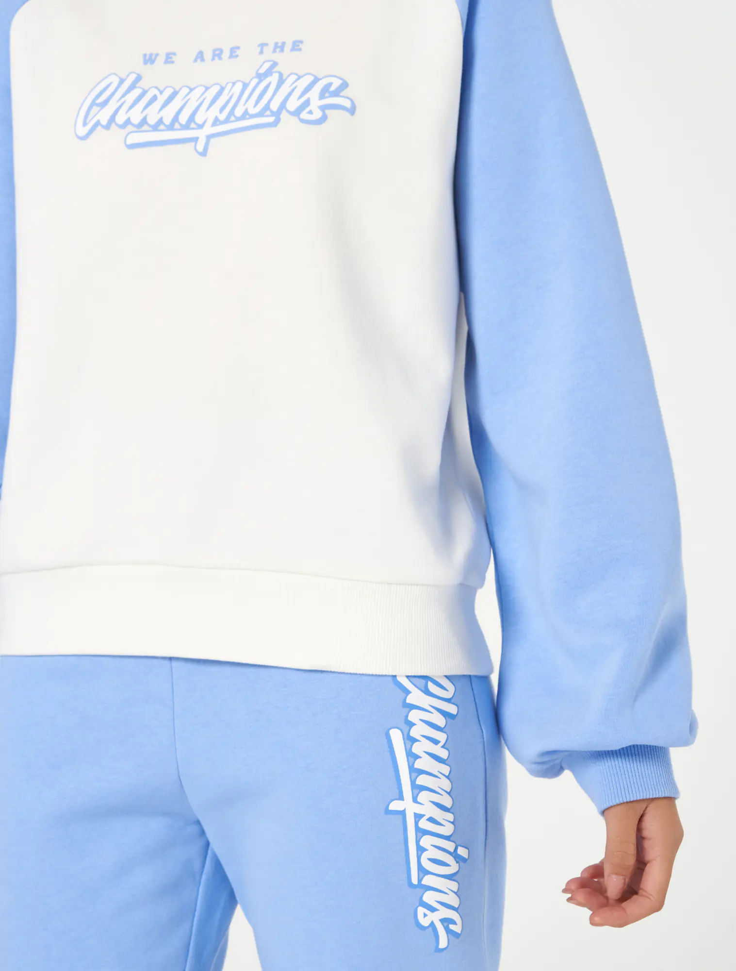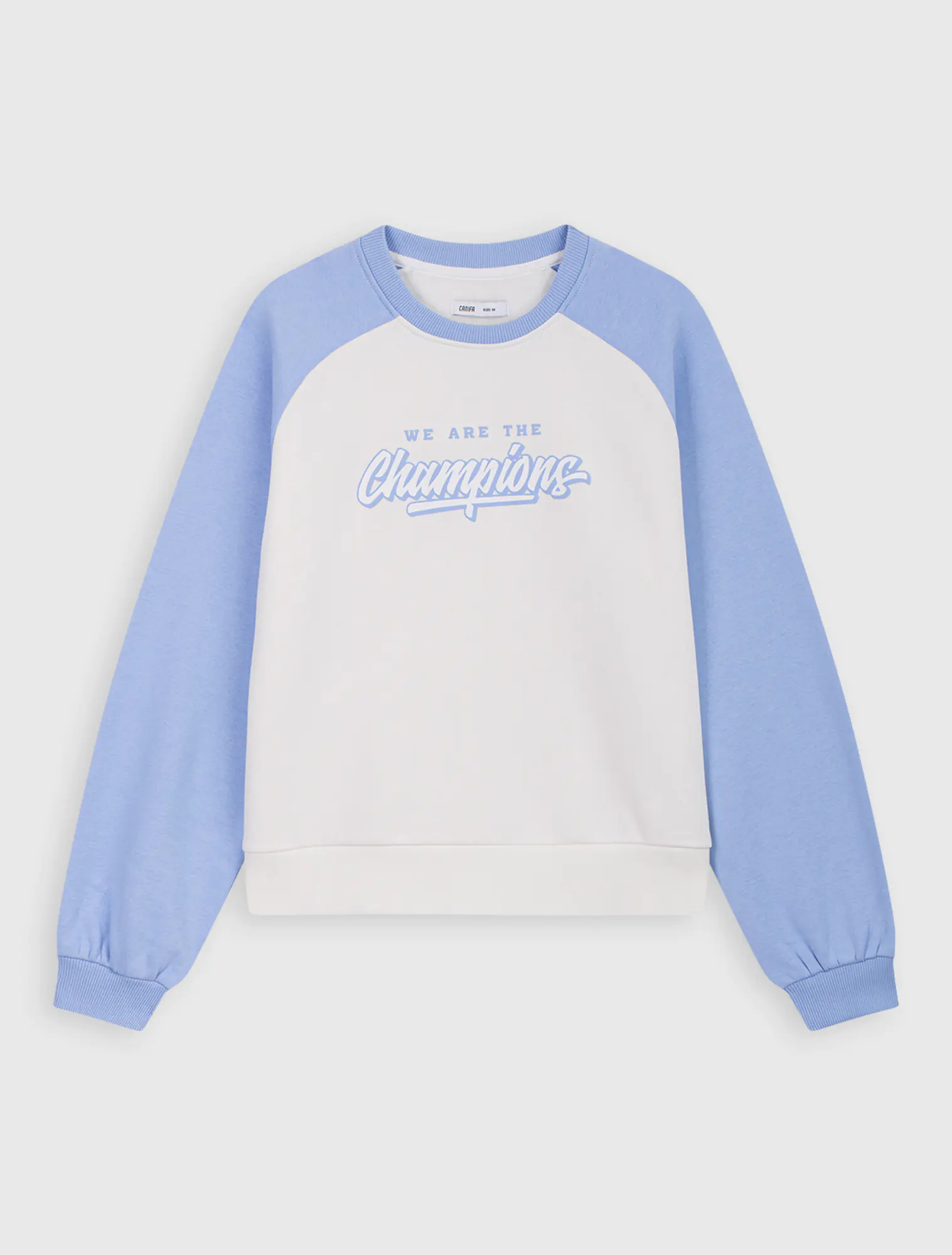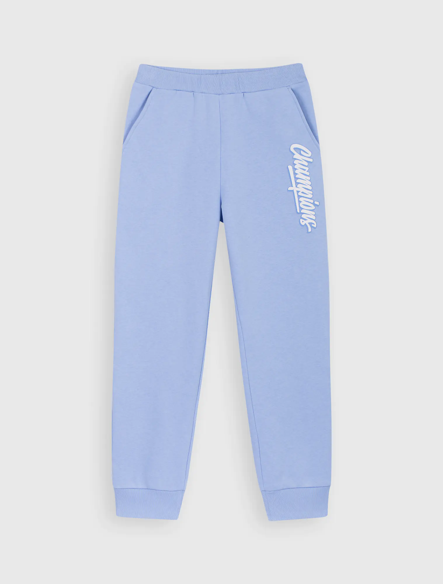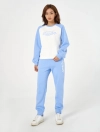 Bộ quần áo chất liệu cotton pha, áo cổ tròn tay dài, quần dài bo gấu.
