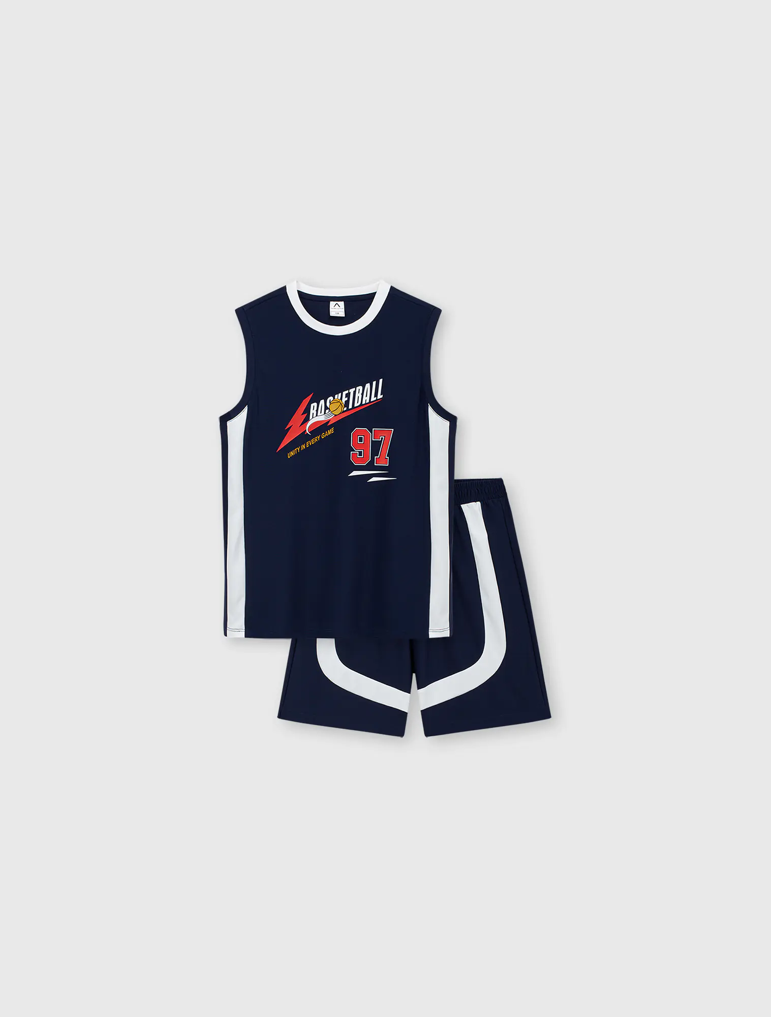 Bộ quần áo active bé trai, phom dáng khỏe khoắn năng động, hình in sport phù hợp cho các con sử dụng trong nhiều hoàn cảnh.