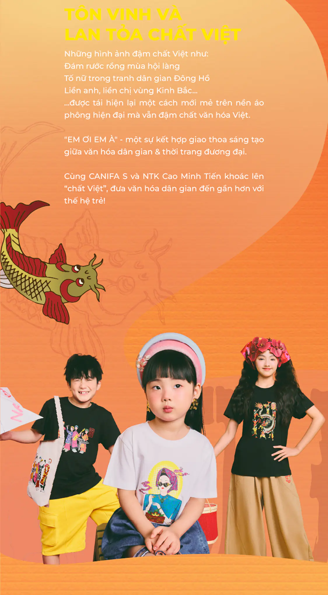 Áo phông unisex trẻ em tranh hội múa rồng