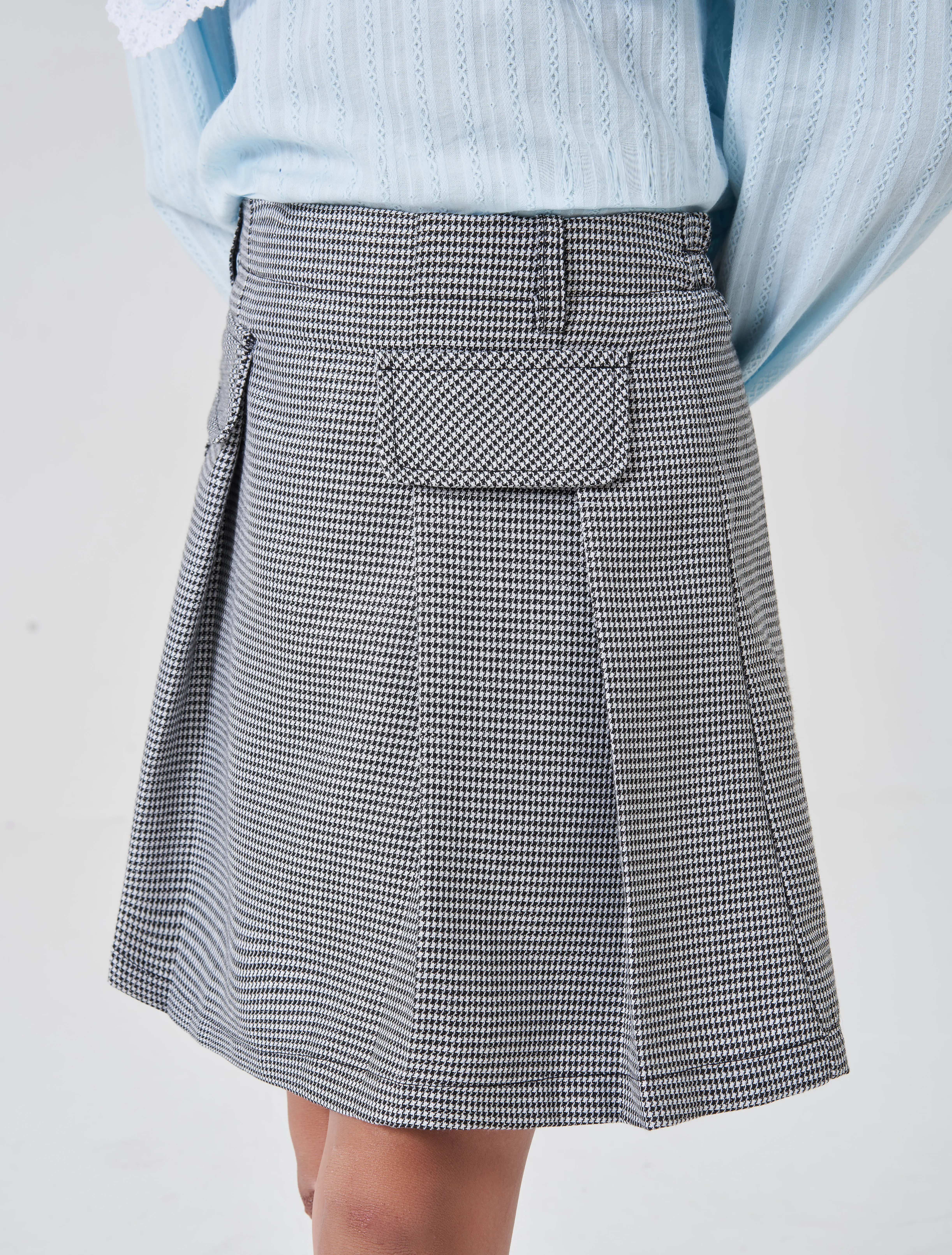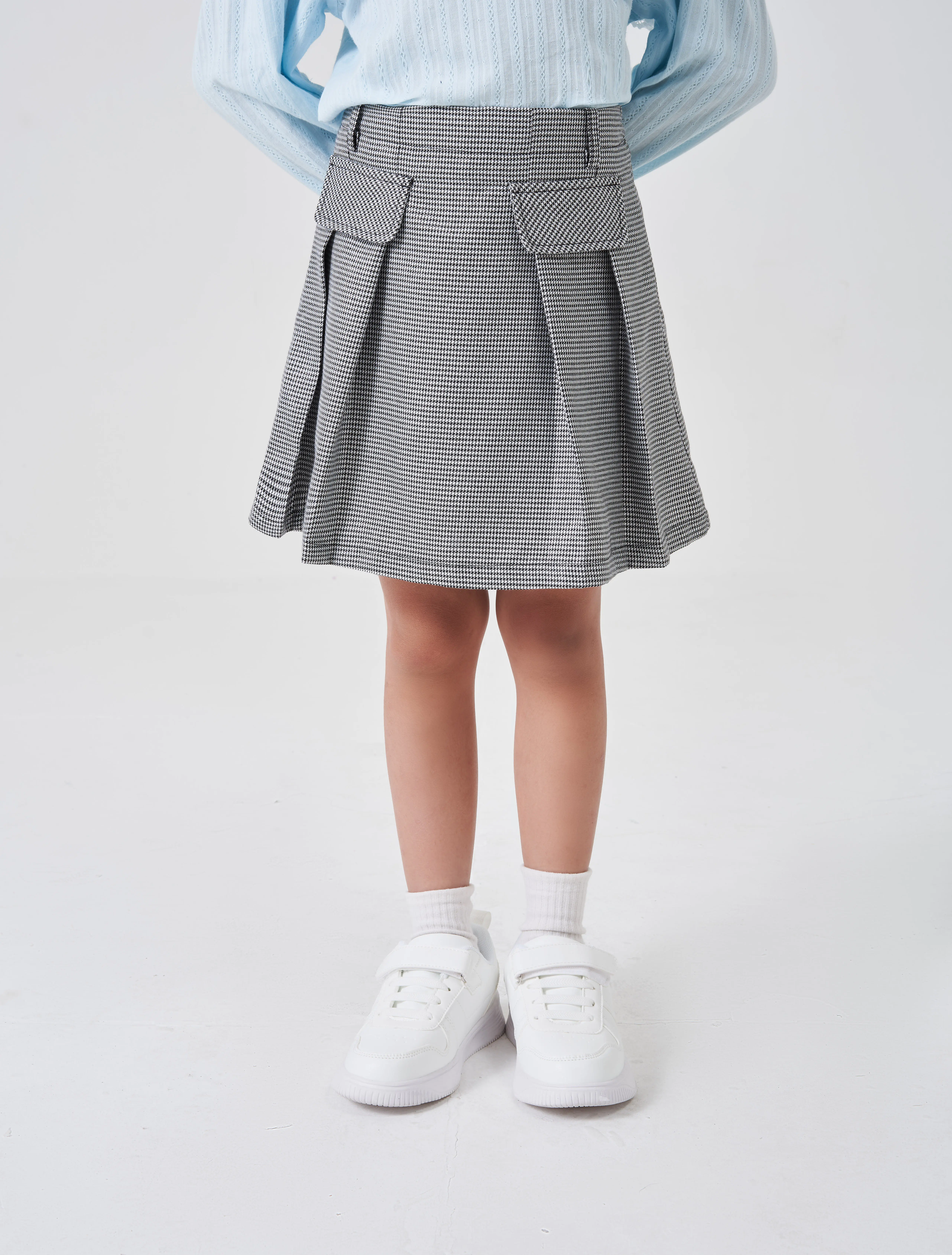 Chân váy bé gái xếp ly, có phần lót quần bên trong thuận tiện cho các bé vận động. Kiểu dáng váy năng động phù hợp trong nhiều hoàn cảnh sử dụng.