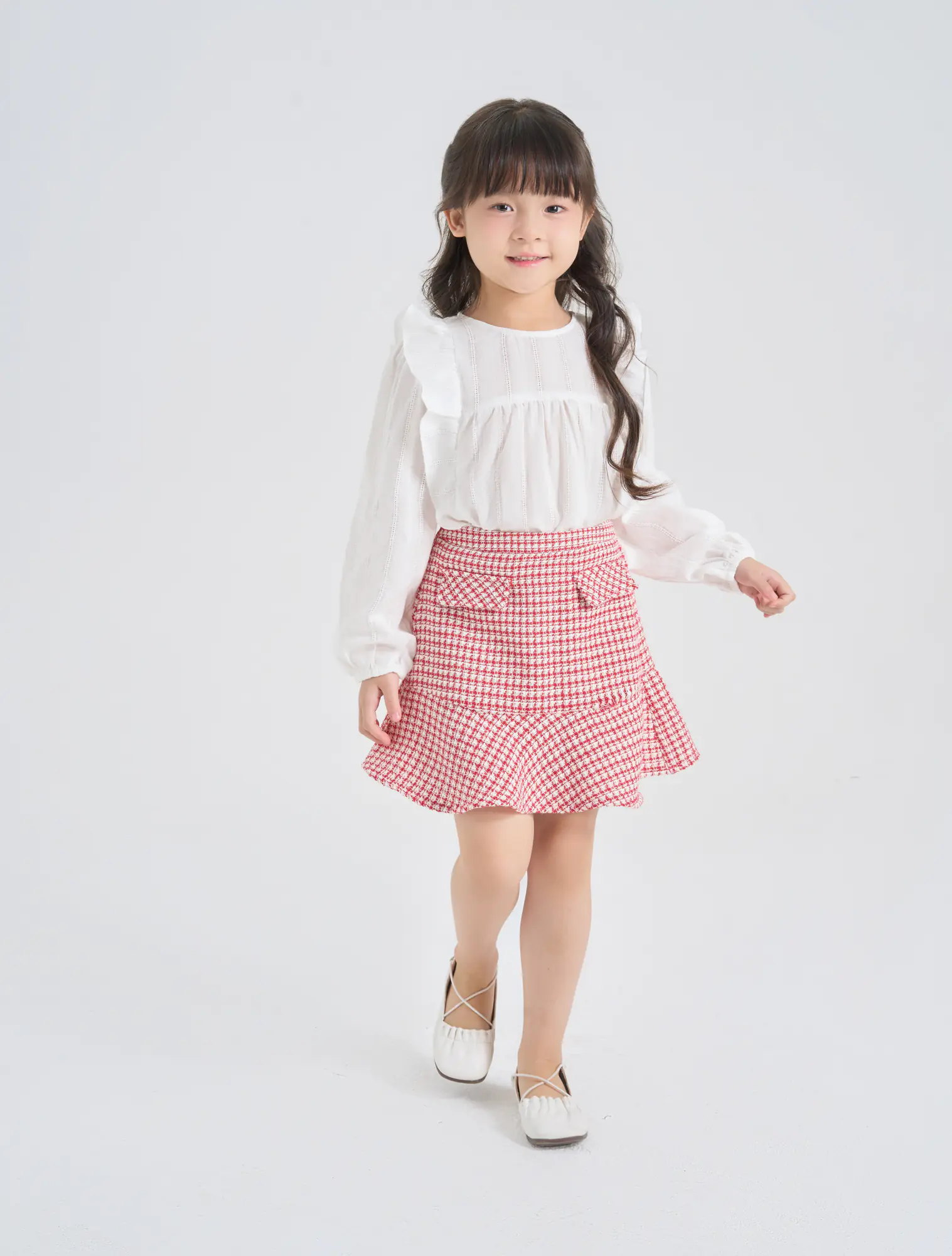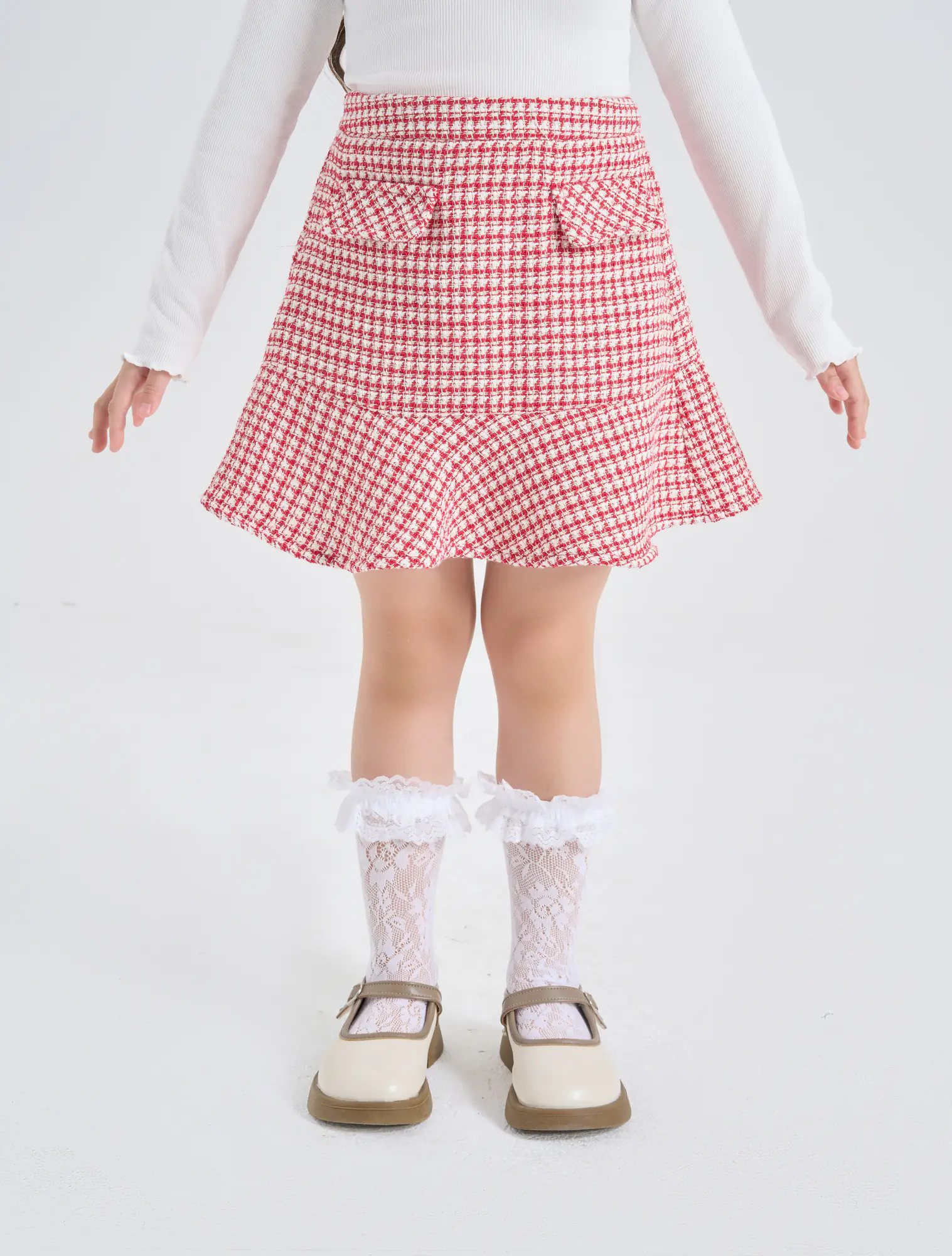 Chân váy dạ bé gái, phối bèo nữ tính. Màu sắc phù howpk với dịp lễ hội cuối năm.