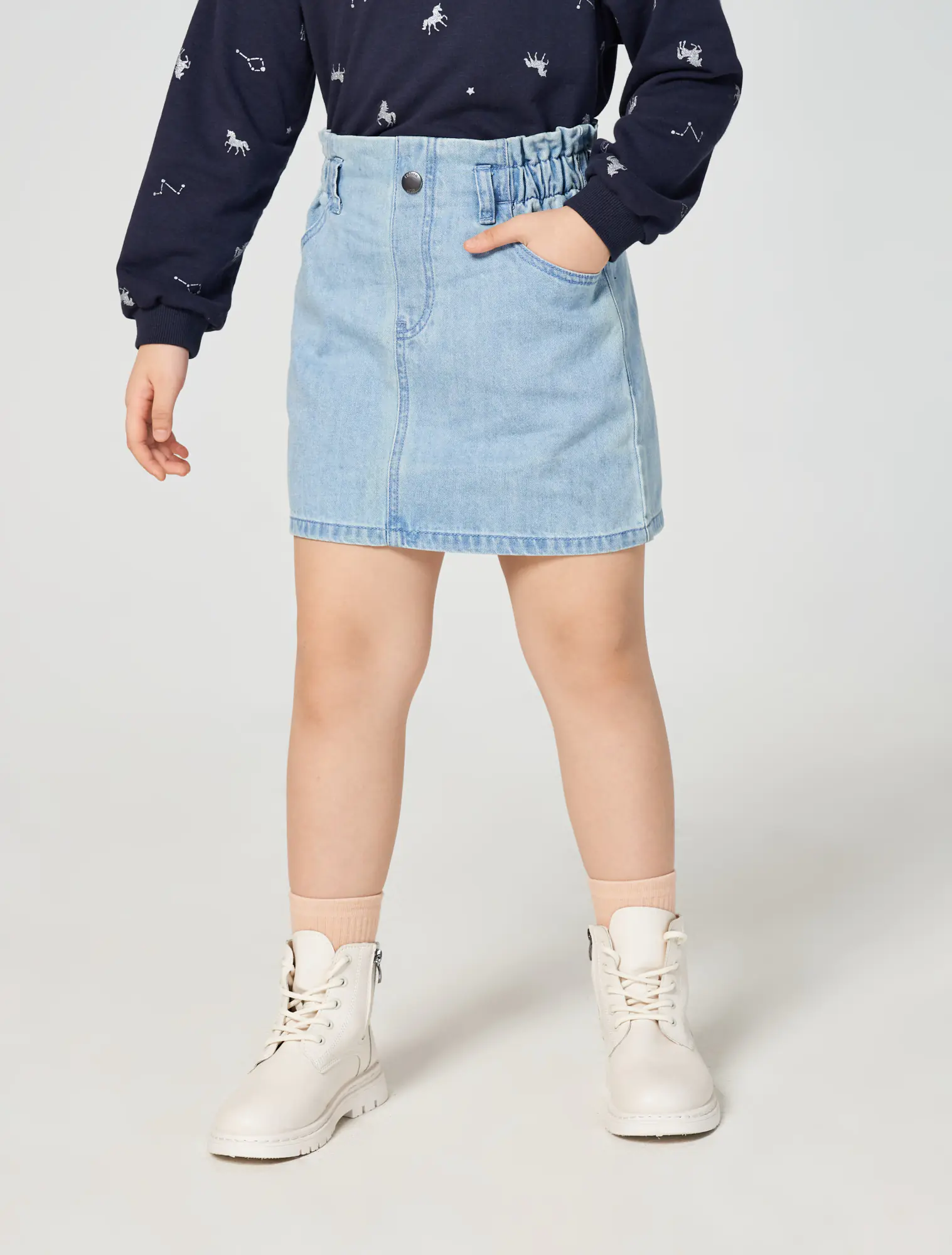 Chân váy jeans bé gái cạp chun