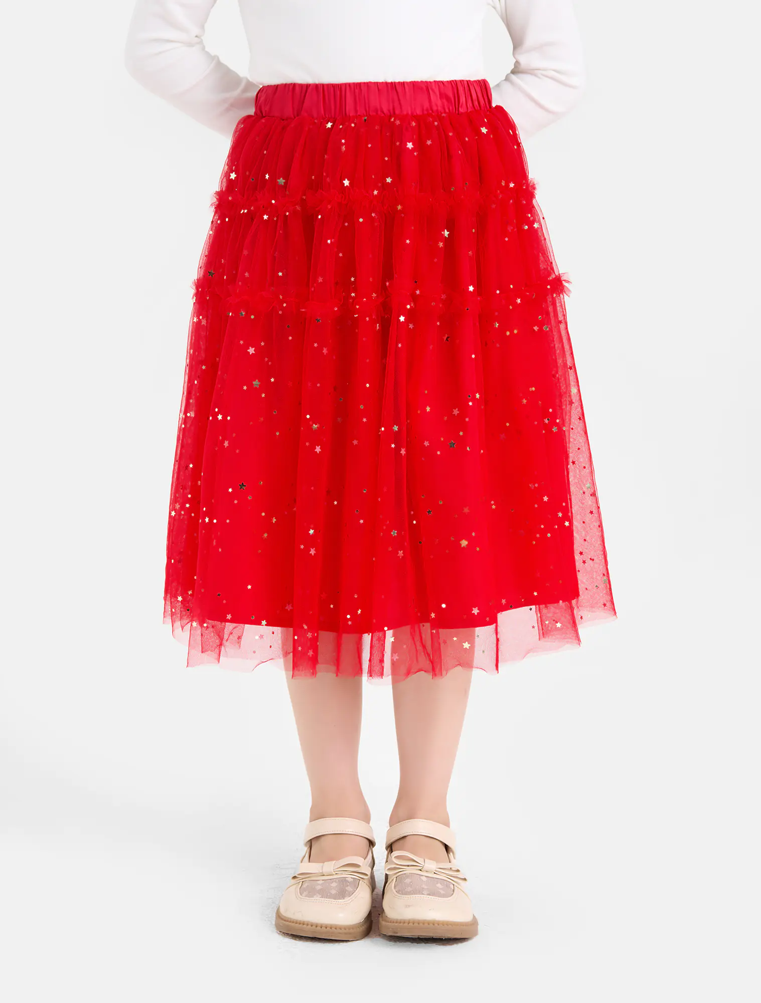 Chân váy lưới bé gái, với chất liệu lưới lấp lánh tạo sự hấp dẫn cho các bé. Sản phẩm phù hợp mặc trong các dịp lễ tết.
