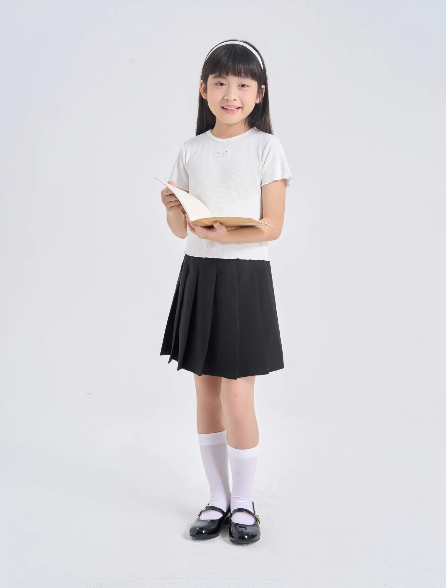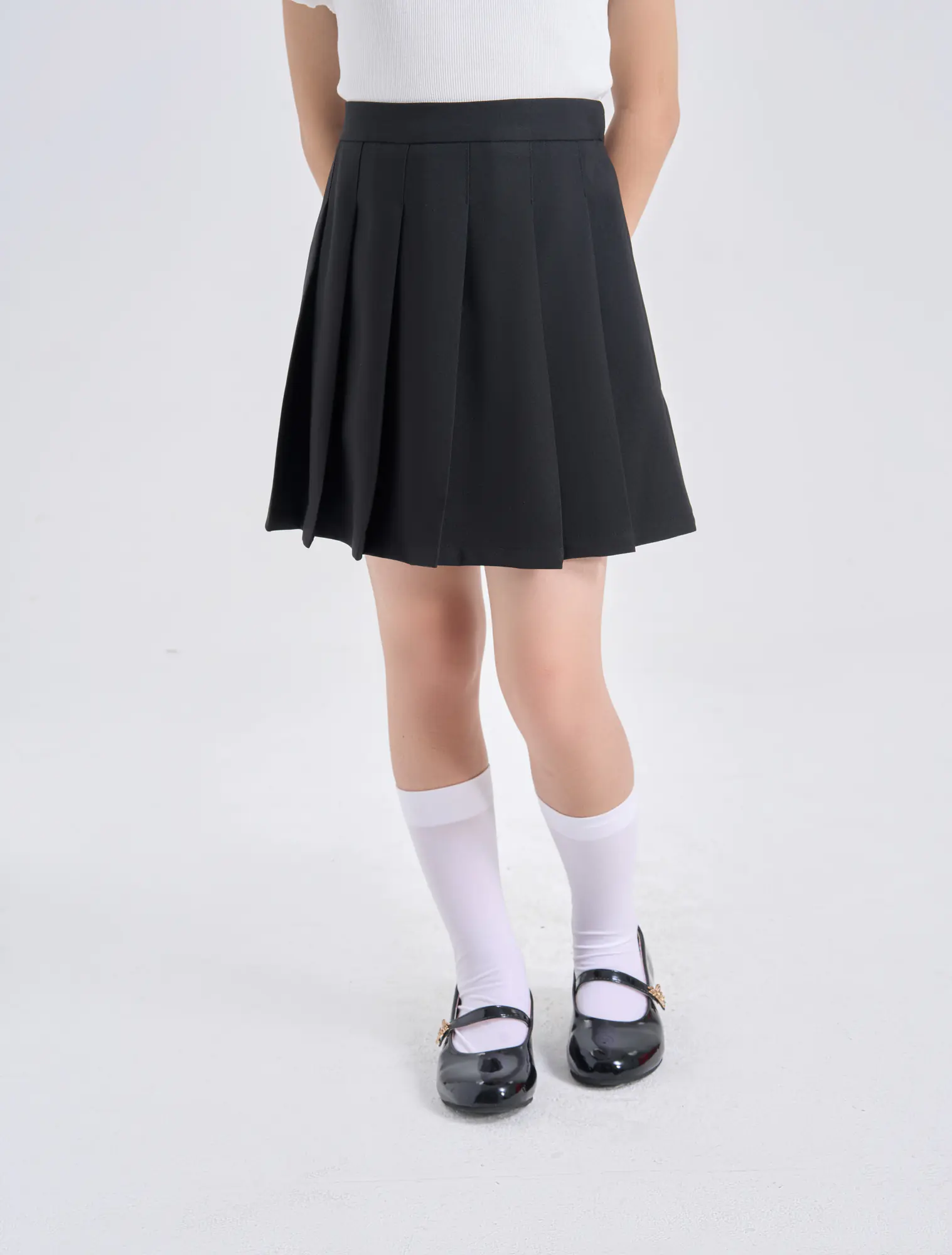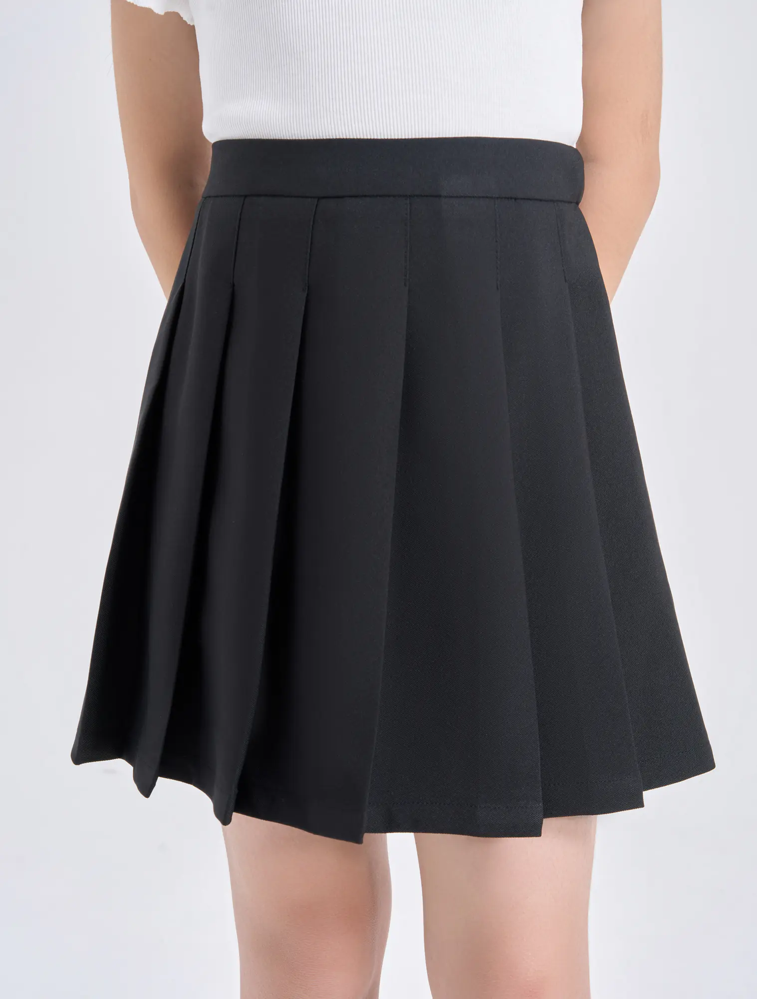 Chân váy bé gái xếp ly, có phần lót quần bên trong thuận tiện cho các bé vận động. Kiểu dáng váy năng động phù hợp trong nhiều hoàn cảnh sử dụng.
