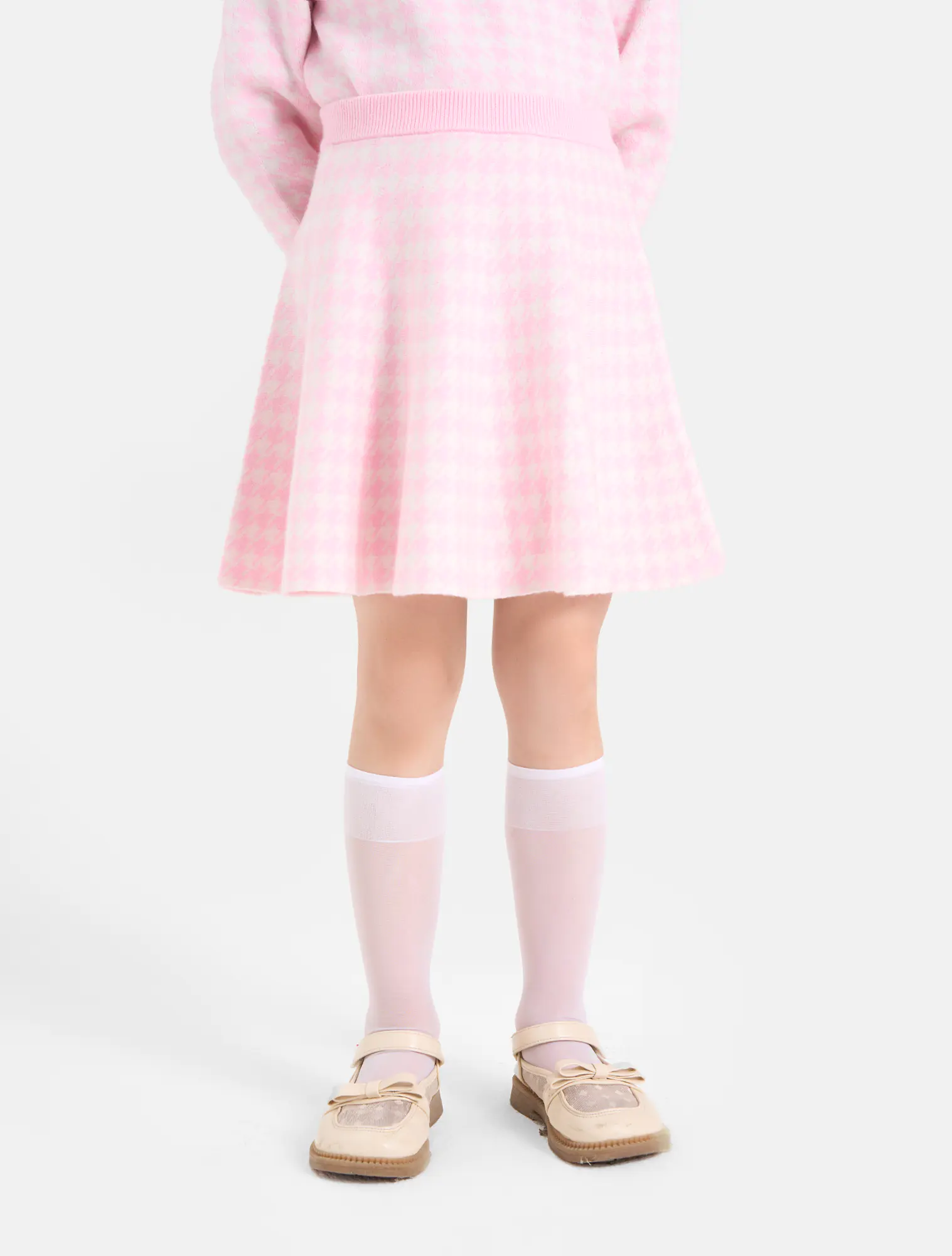 Chân váy len bé gái. Dệt họa tiết hounstooth, có thể mặc với áo len cùng họa tiết hoặc phối linh hoạt với các trang phục khác. Sợi len mềm mại, dễ chịu giúp các bé giữ ấm và năng động.