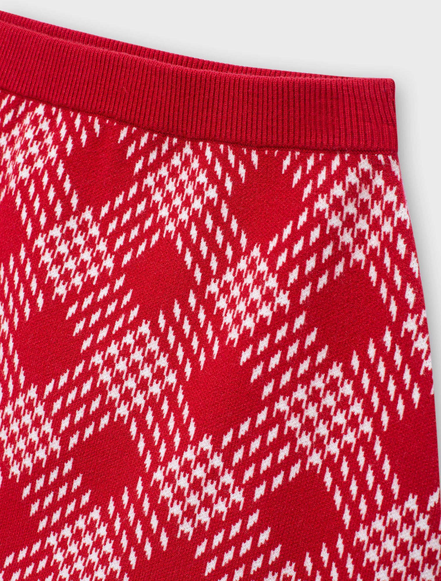 Chân váy len bé gái. Dệt họa tiết, có thể mặc với áo len cùng họa tiết hoặc phối linh hoạt với các trang phục khác. Sợi len mềm mại, dễ chịu giúp các bé giữ ấm và năng động.