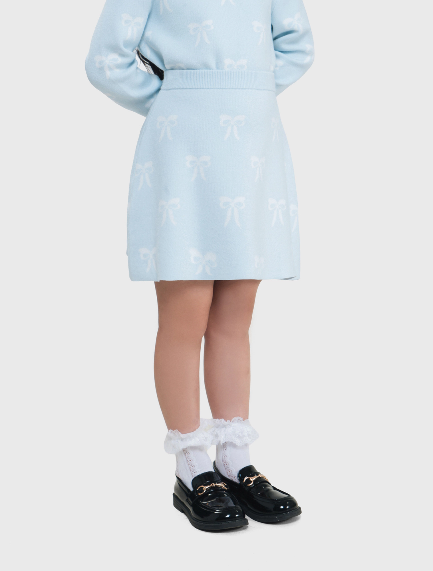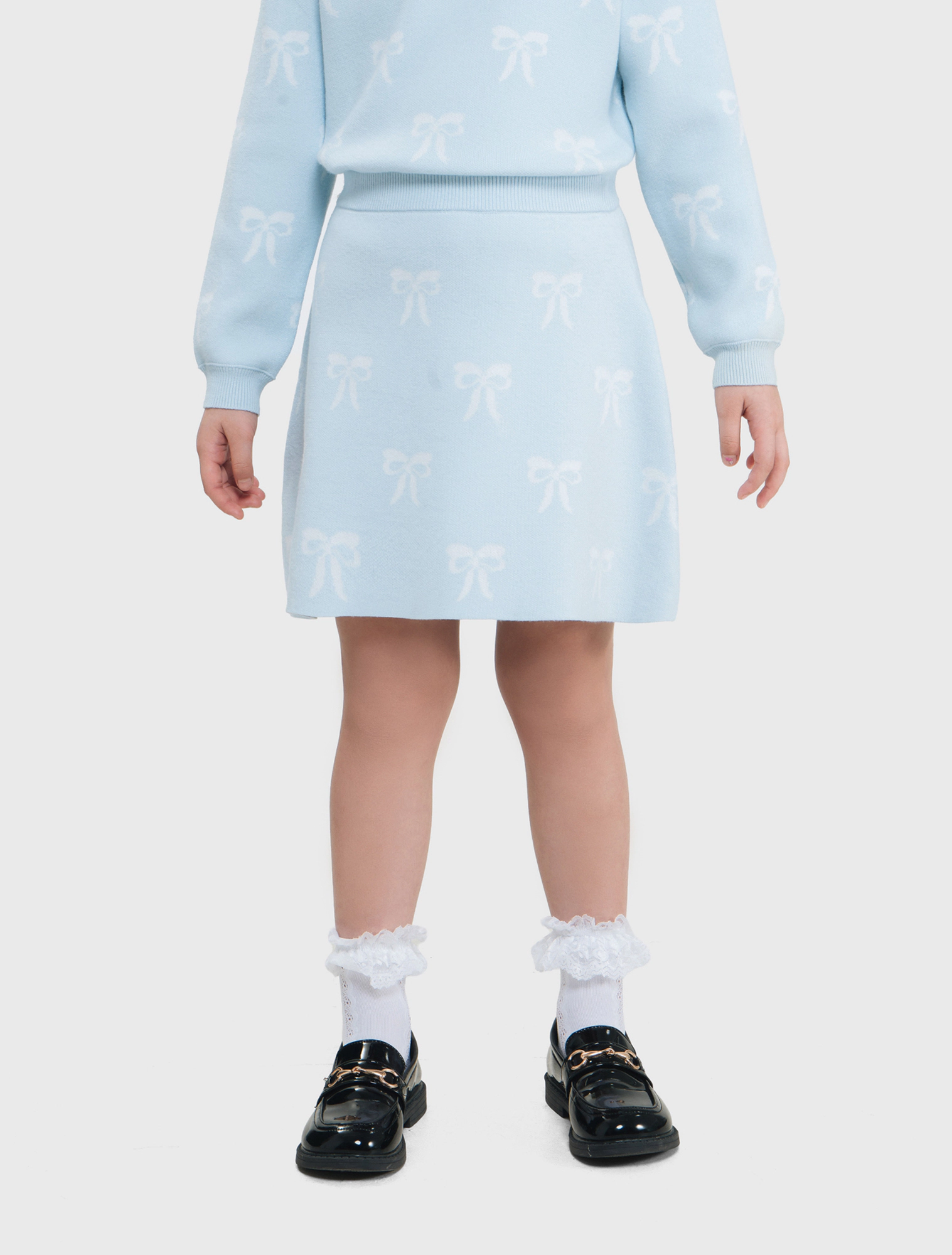 Chân váy len bé gái. Dệt họa tiết, có thể mặc với áo len cùng họa tiết hoặc phối linh hoạt với các trang phục khác. Sợi len mềm mại, dễ chịu giúp các bé giữ ấm và năng động.
