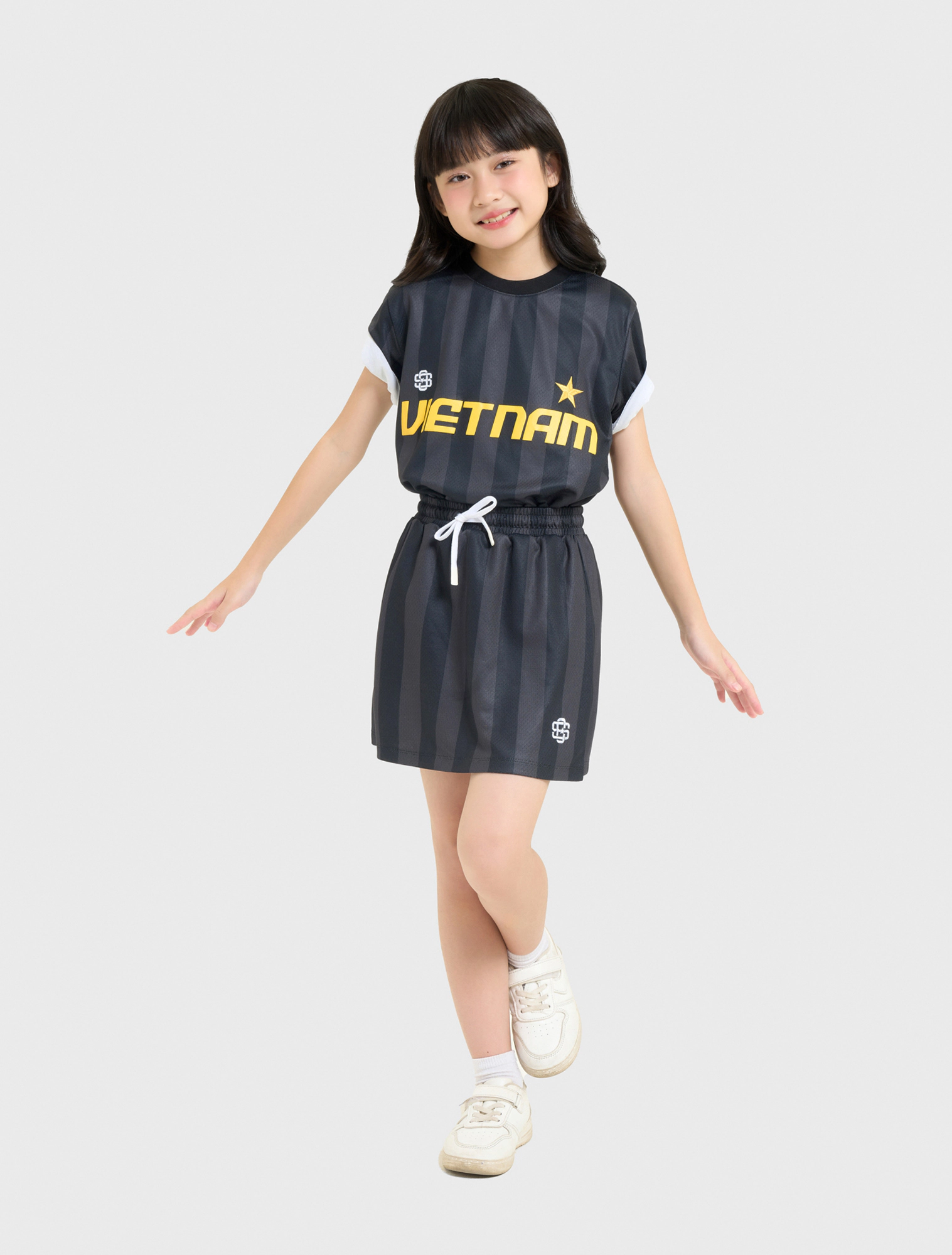 Lấy cảm hứng từ hình ảnh những "chiến binh" áo đỏ trên sân cỏ, BST “Vietnam on the Pitch” mang đến thiết kế thời trang đậm tinh thần thể thao và niềm tự hào dân tộc cùng song hành.