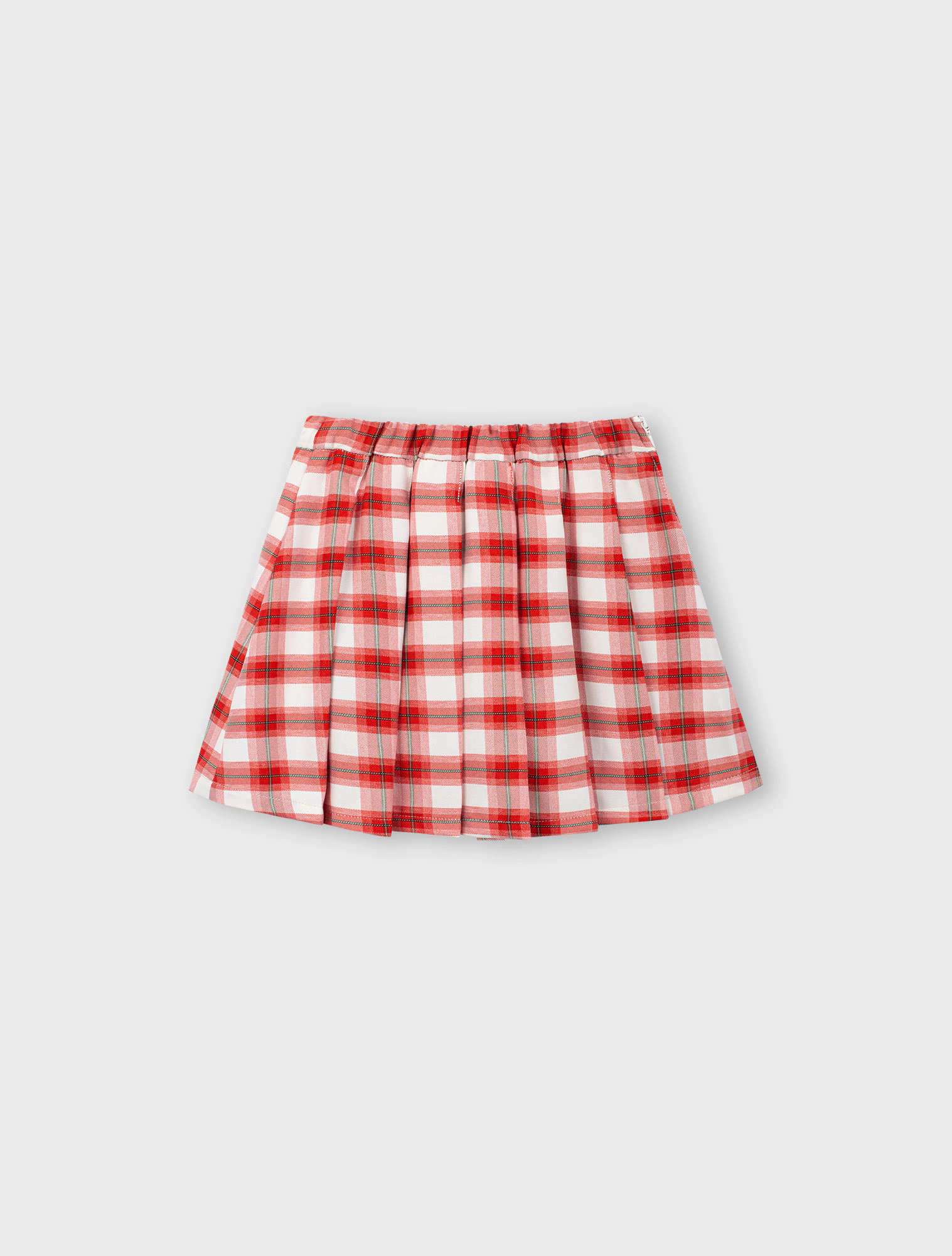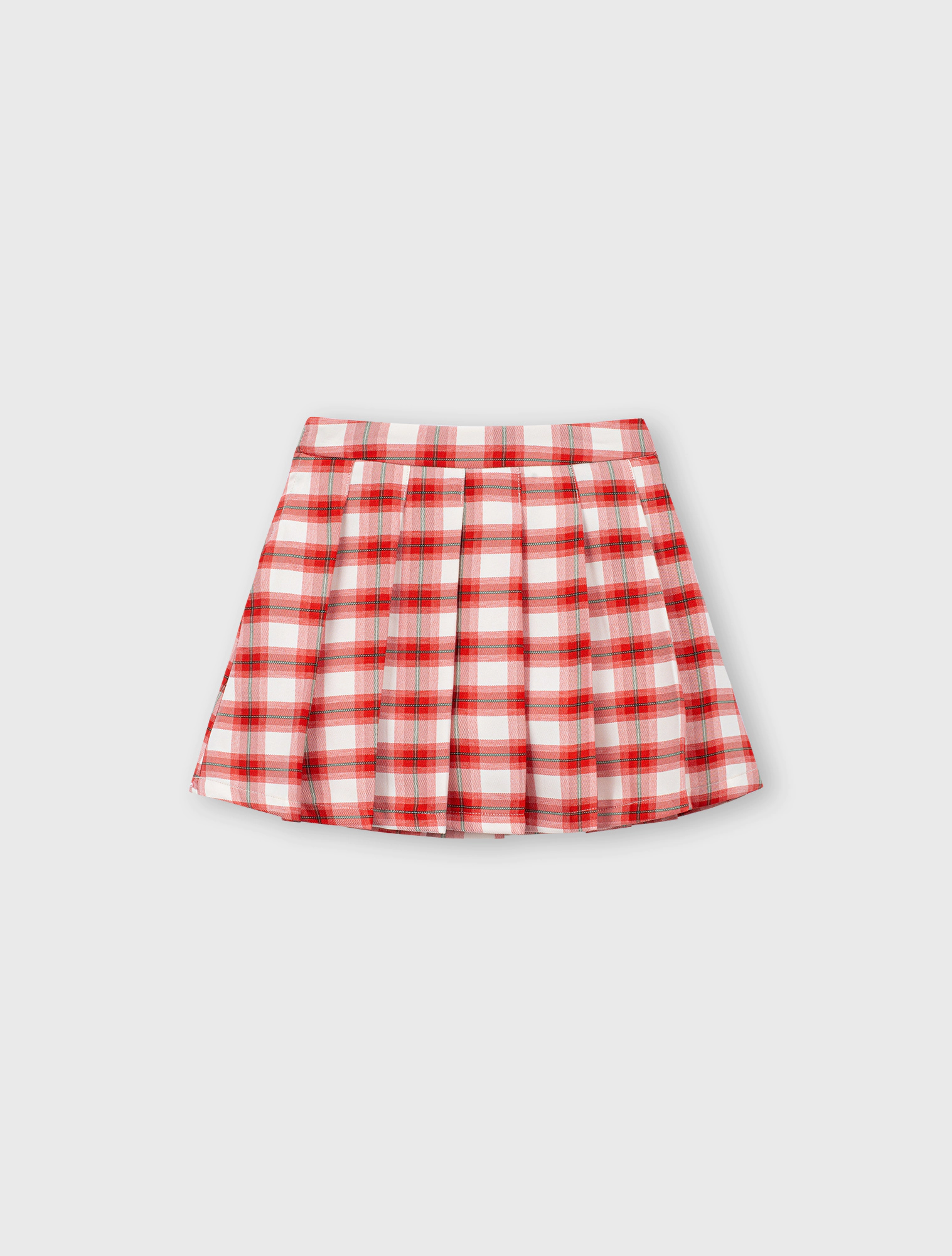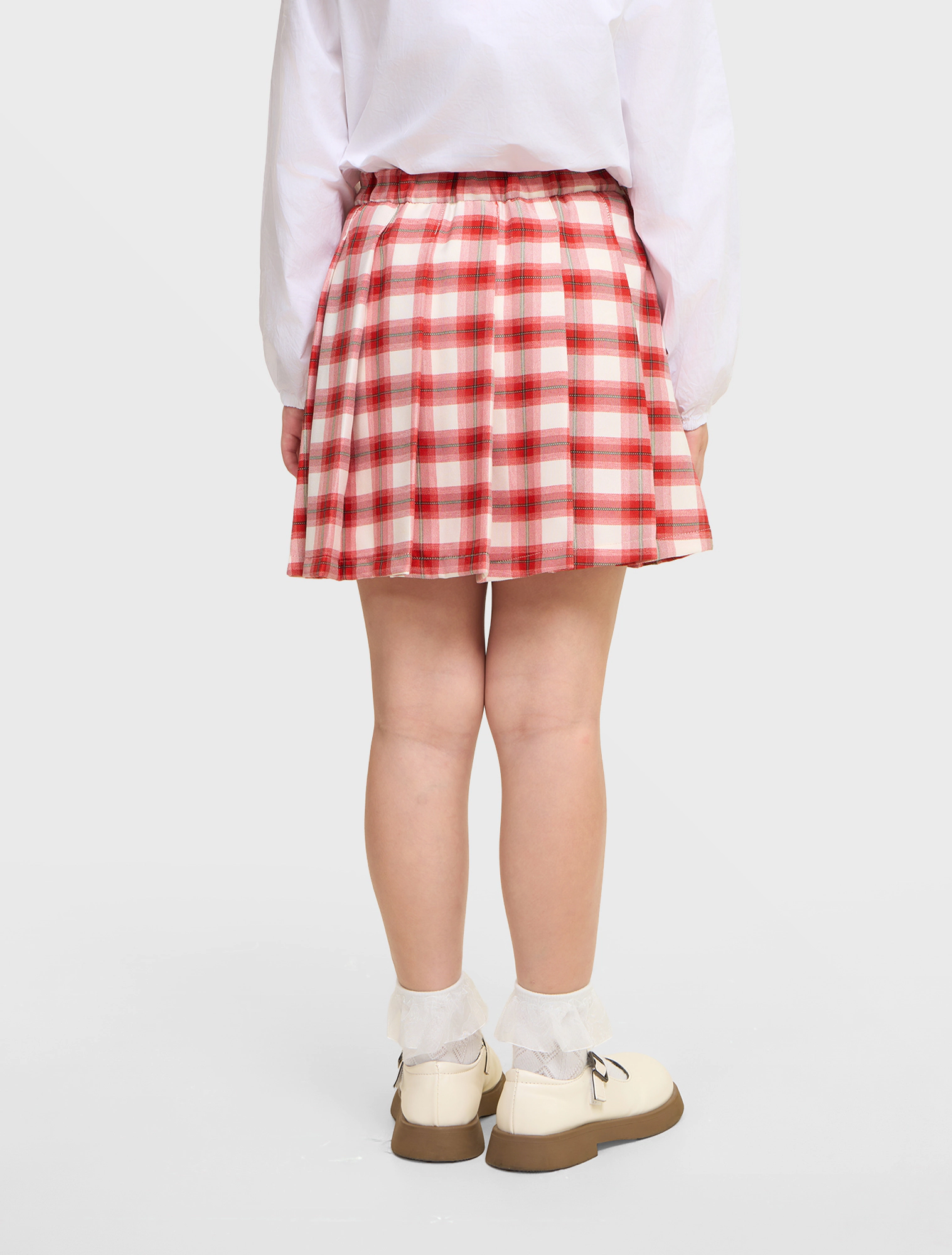 Chân váy ngắn xếp ly dáng xòe, có lót quần bên trong thuận tiện cho các bé vận động. Chất liệu mềm mại, mịn mát, dễ dàng kết hợp với nhiều loại trang phục.