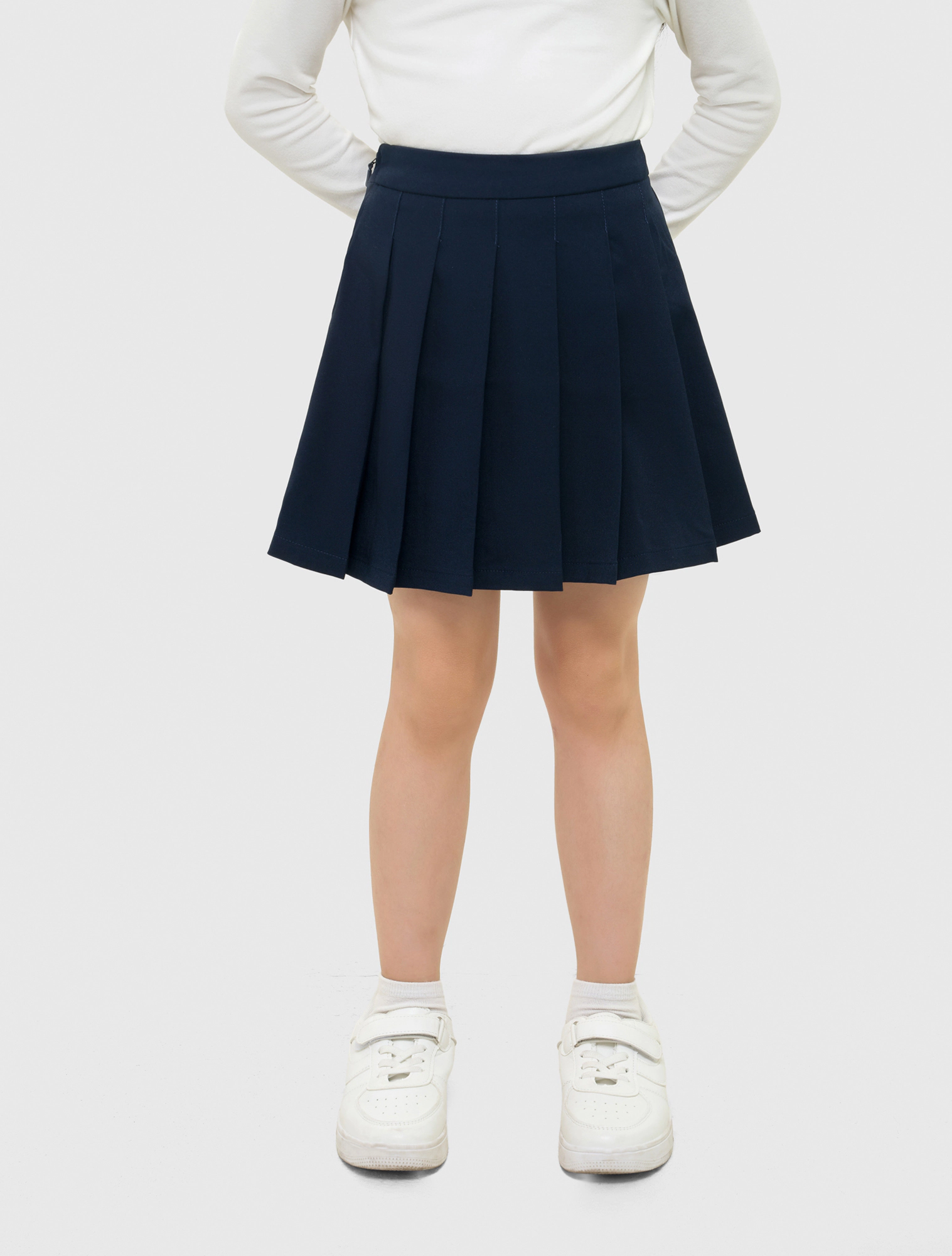 Chân váy ngắn xếp ly dáng xòe, có lót quần bên trong thuận tiện cho các bé vận động. Chất liệu mềm mại, mịn mát, dễ dàng kết hợp với nhiều loại trang phục.