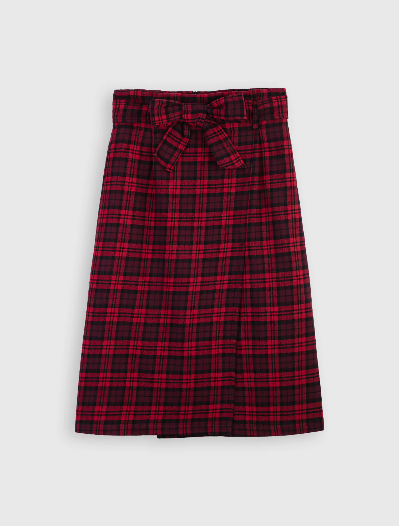 Dáng A, cạp xếp ly, có dây buộc eo, vạt chéo phía trước