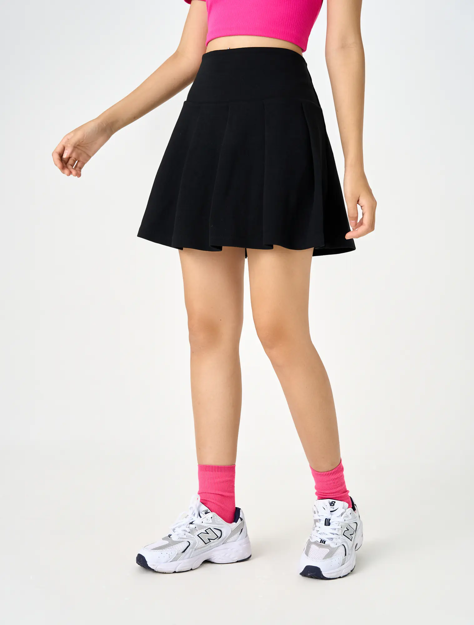 Chân váy chất liệu cotton pha, cạp liền, dáng ngắn.