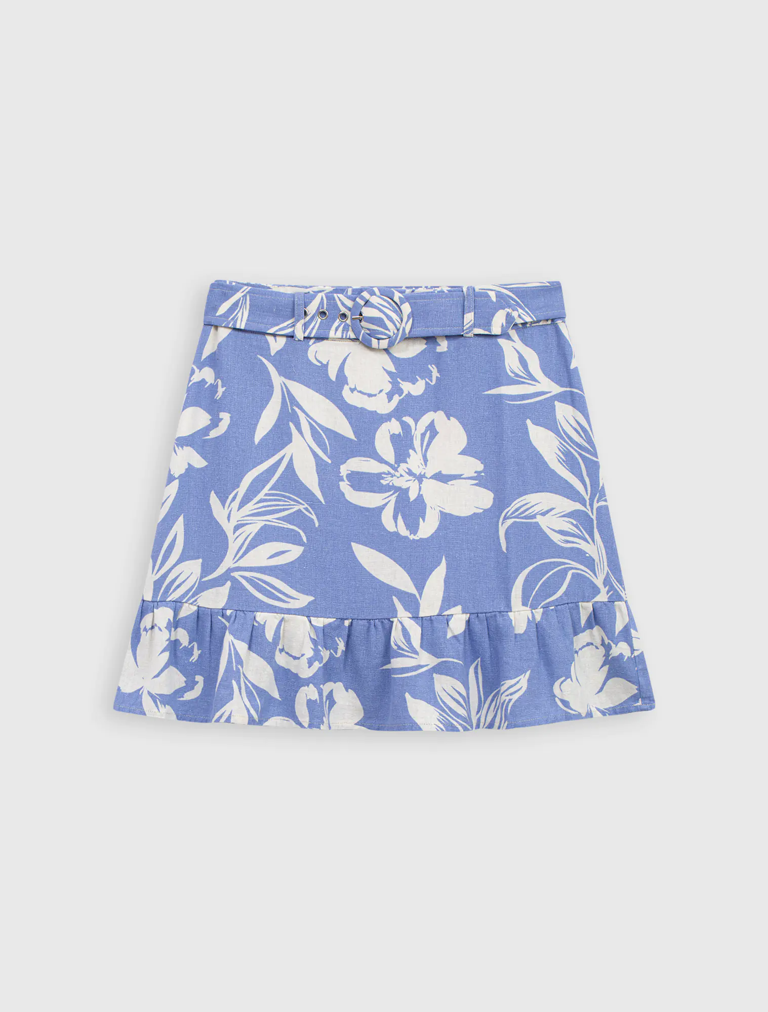 Chân váy nữ in họa tiết kèm đai dáng suông