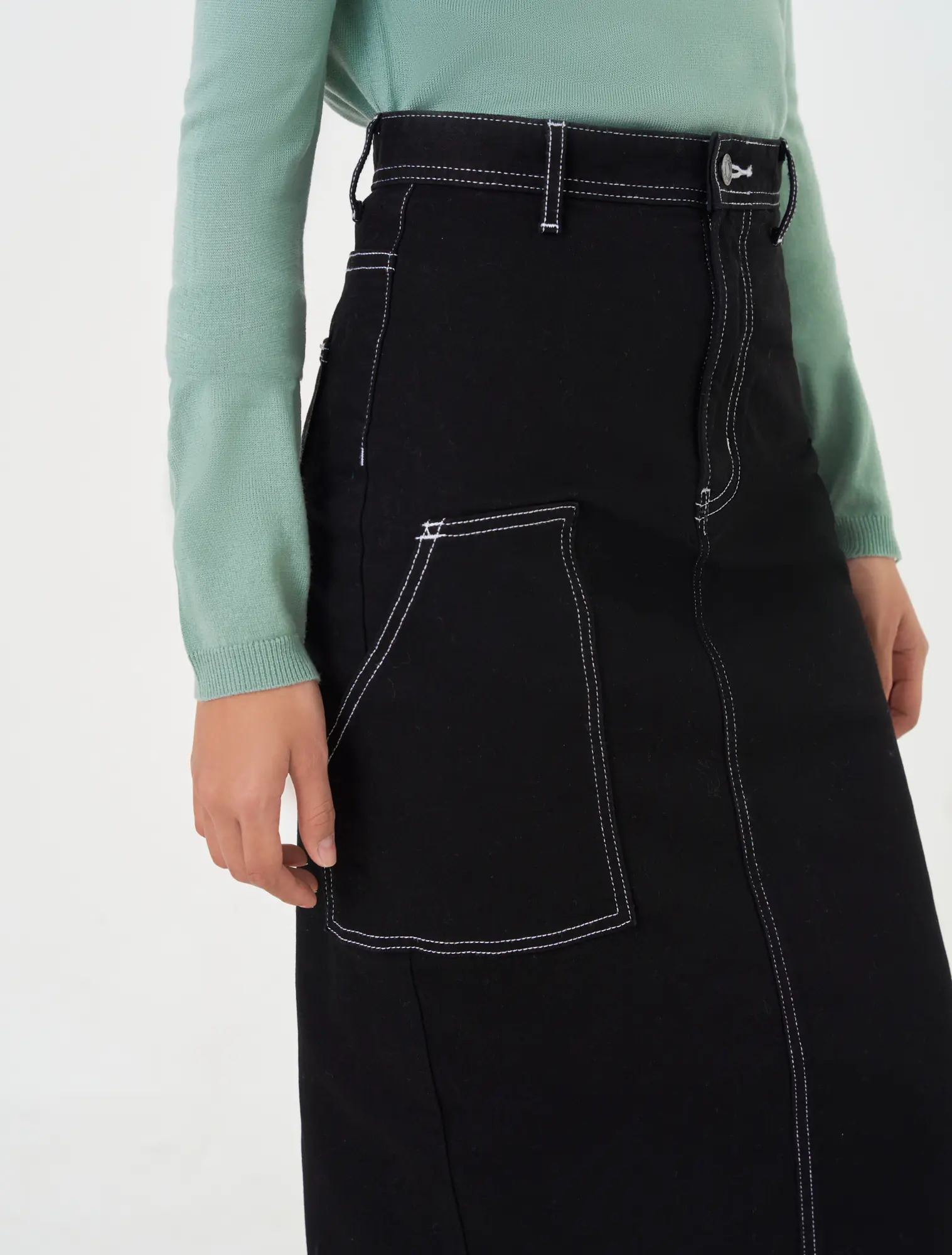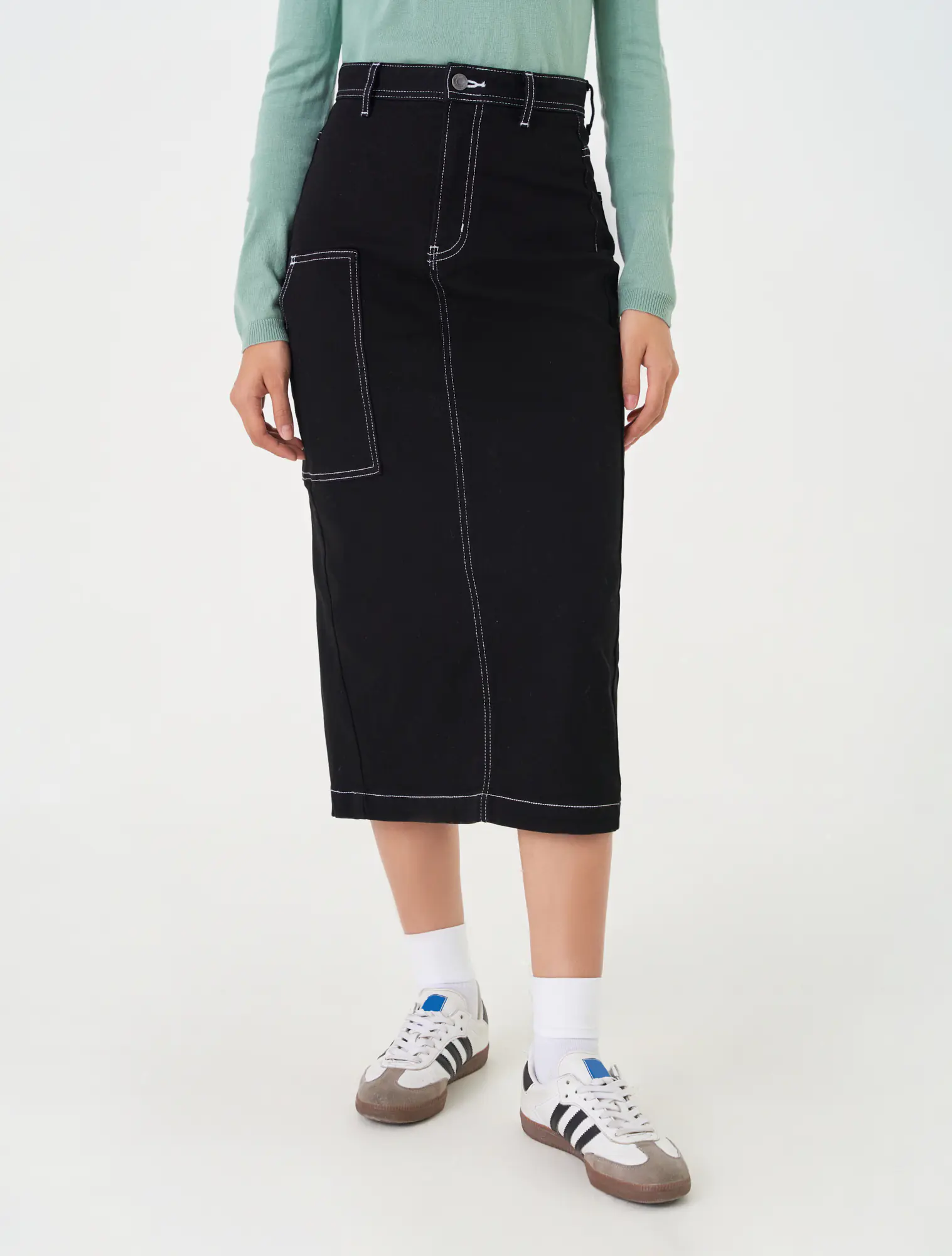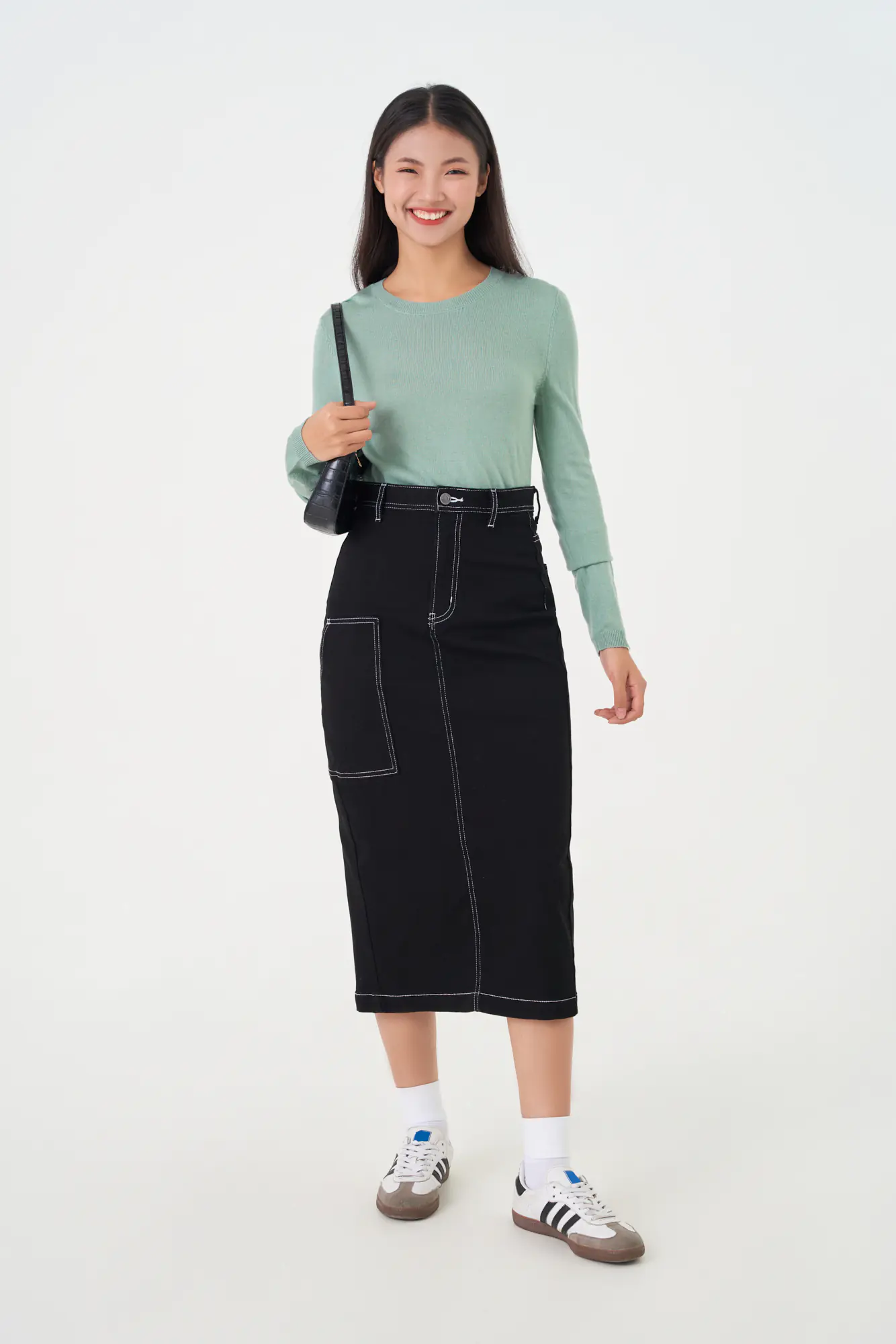 Chân váy midi jean nữ dáng suông với thiết kế các đường chỉ nổi bật màu trắng làm điểm nhấn và chất liệu dày dặn đứng phom tạo nên một sản phẩm thời trang nhưng vẫn dễ ứng dụng với nhiều sản phầm và nhiều hoàn cảnh sử dụng khác nhau.