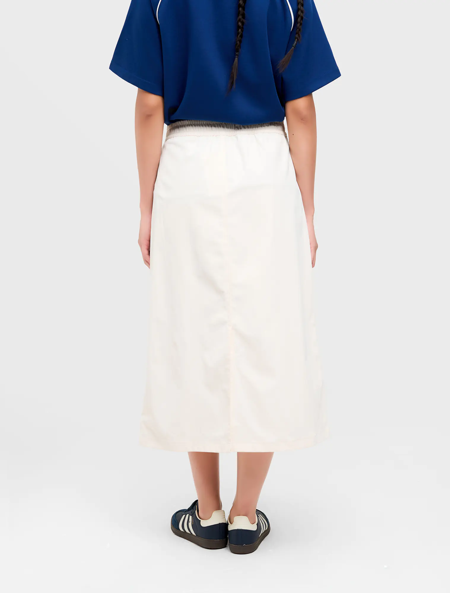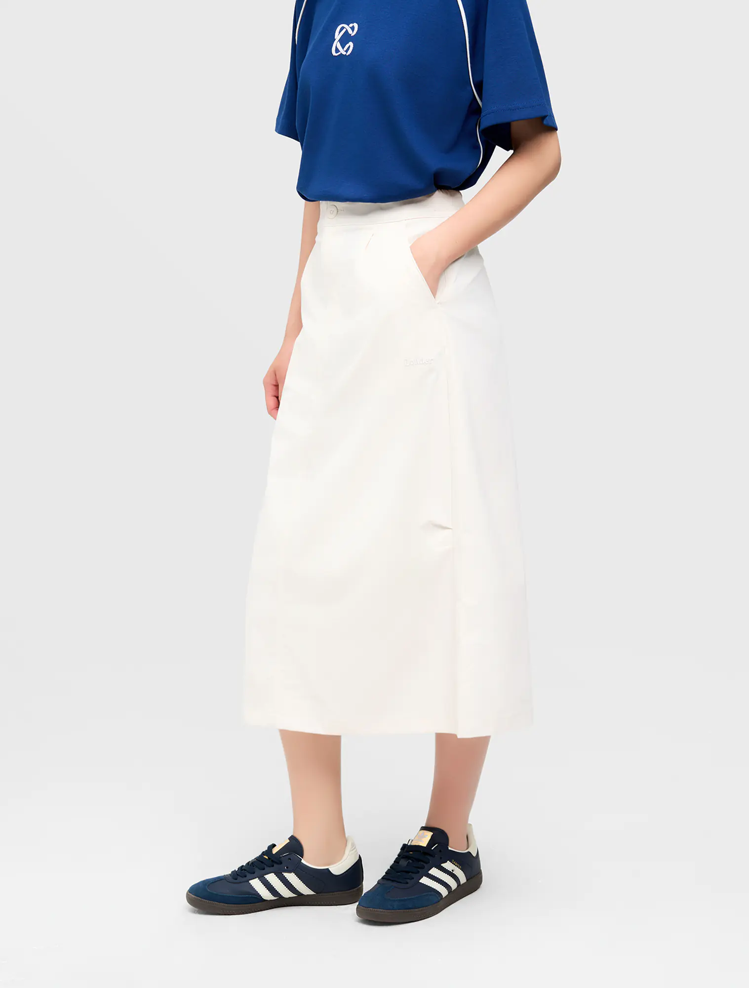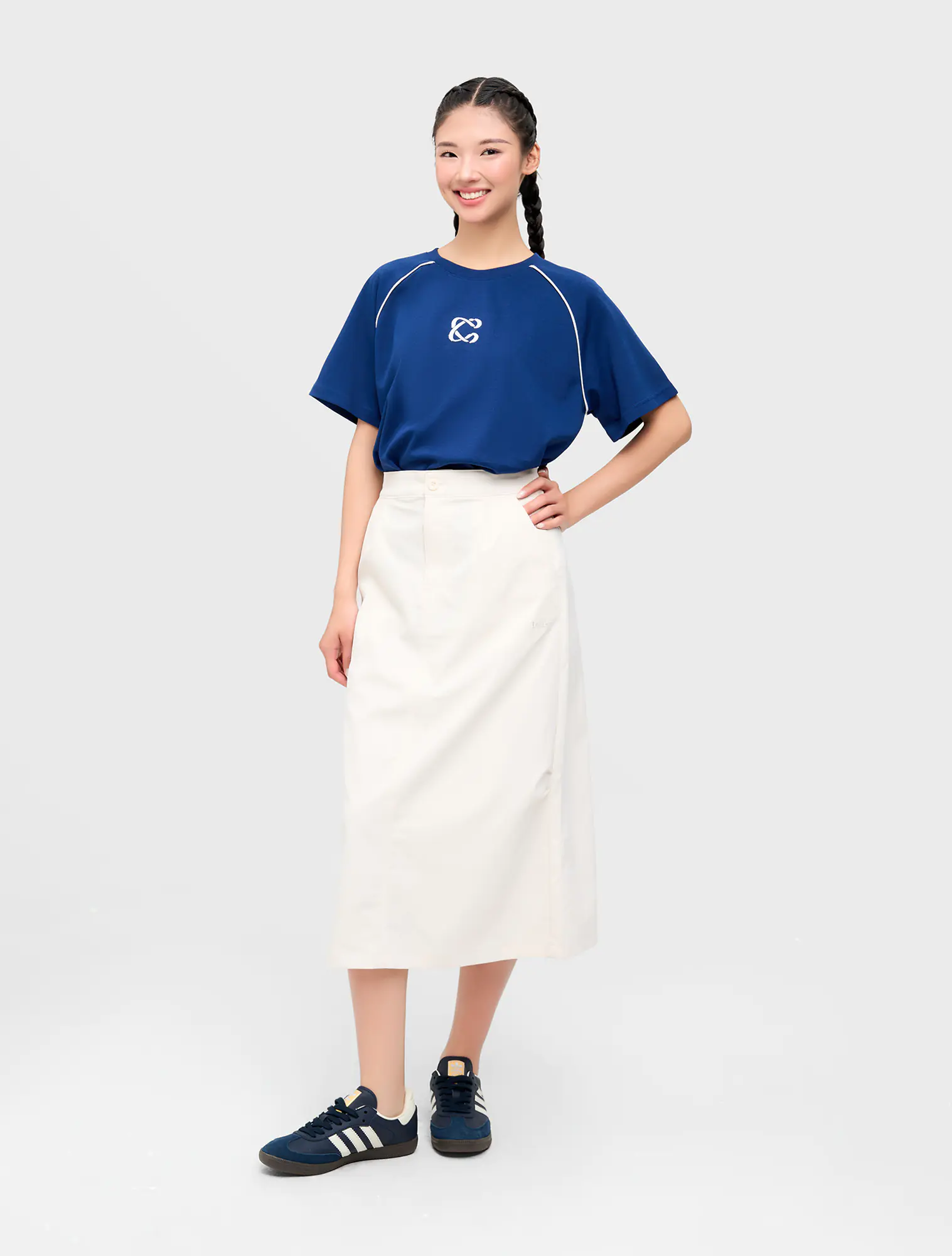 Chân váy khaki nữ, dáng suông A, có túi chéo hai bên. Kiểu dáng basic, phù hợp với nhiều hoàn cành đi làm, dạo phố.