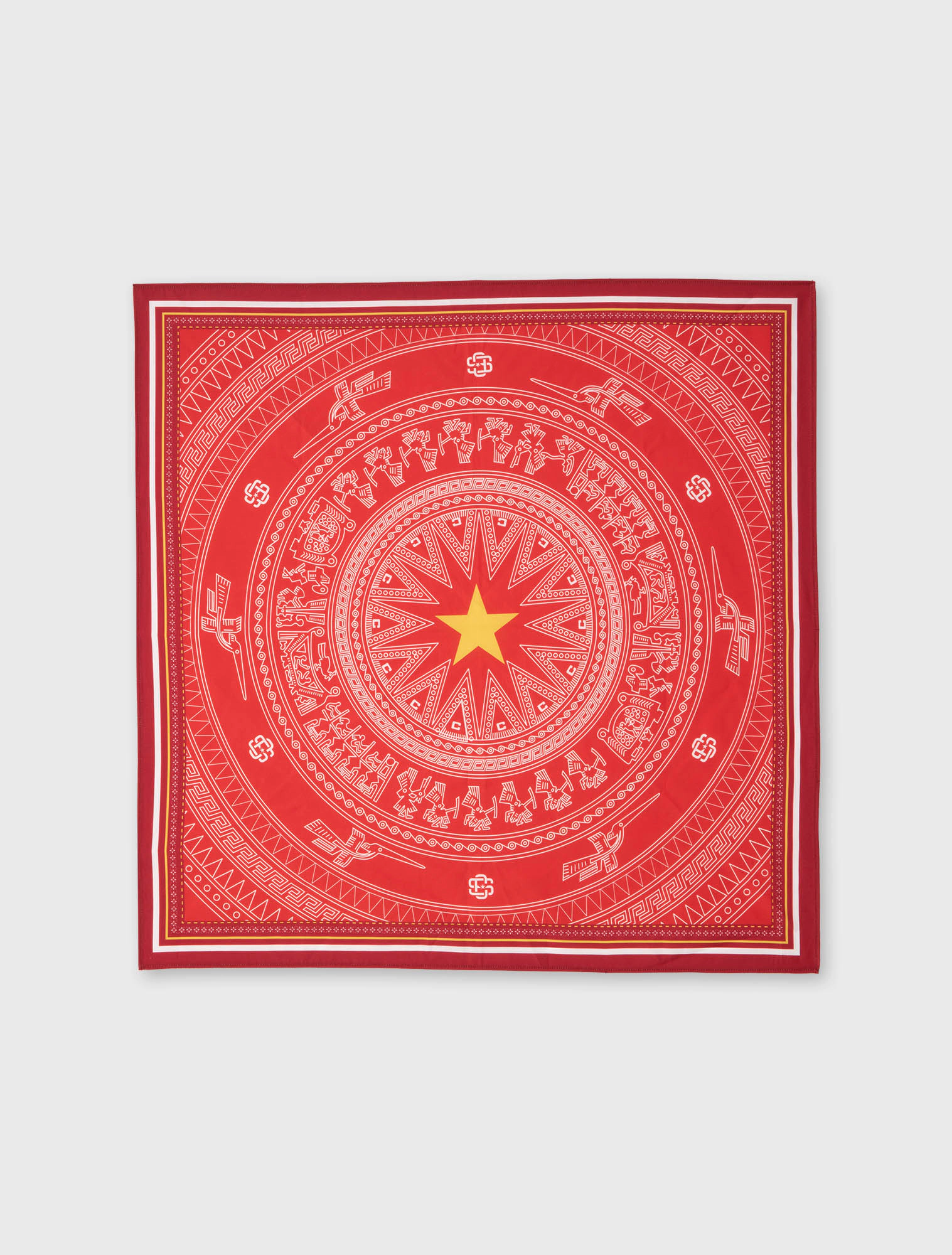 Lấy cảm hứng từ tình yêu nước của mọi thế hệ người Việt, chiếc khăn bandana sở hữu thiết kế độc đáo từ đường nét gợi nhắc về nét đẹp văn hóa tới những cụm typo tiêu ngữ ấn tượng.