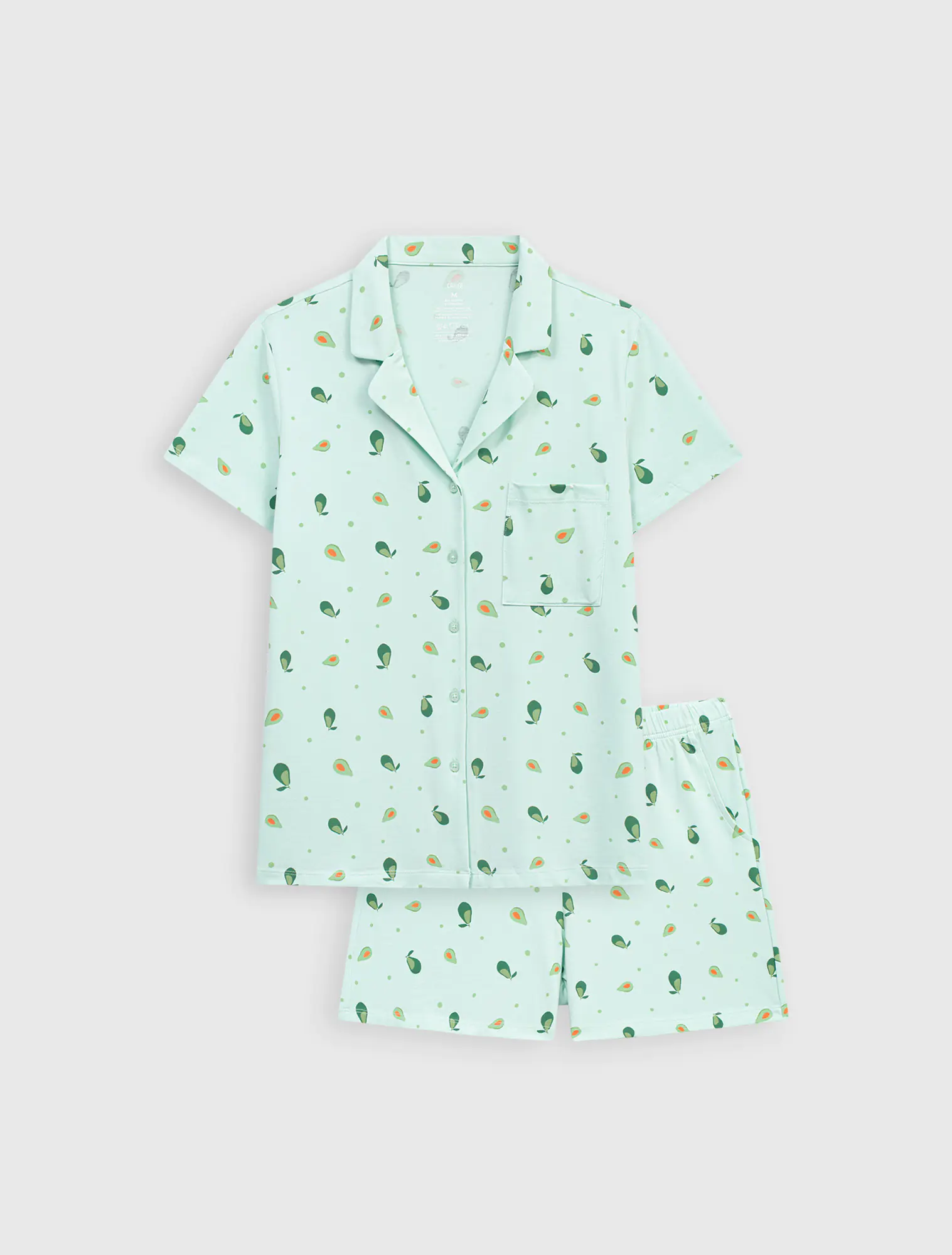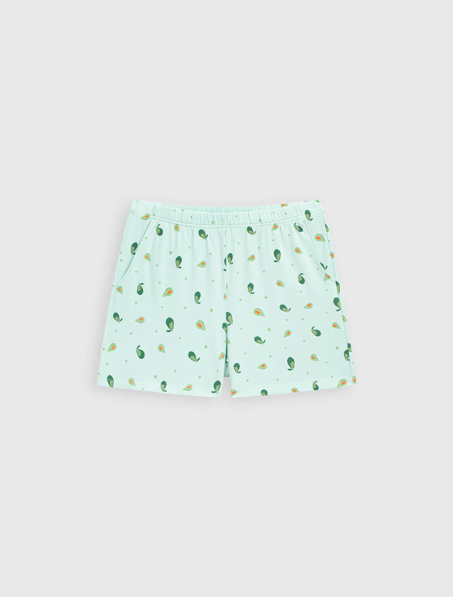 Bộ pyjama nữ áo cộc tay quần soóc cạp chun in họa tiết