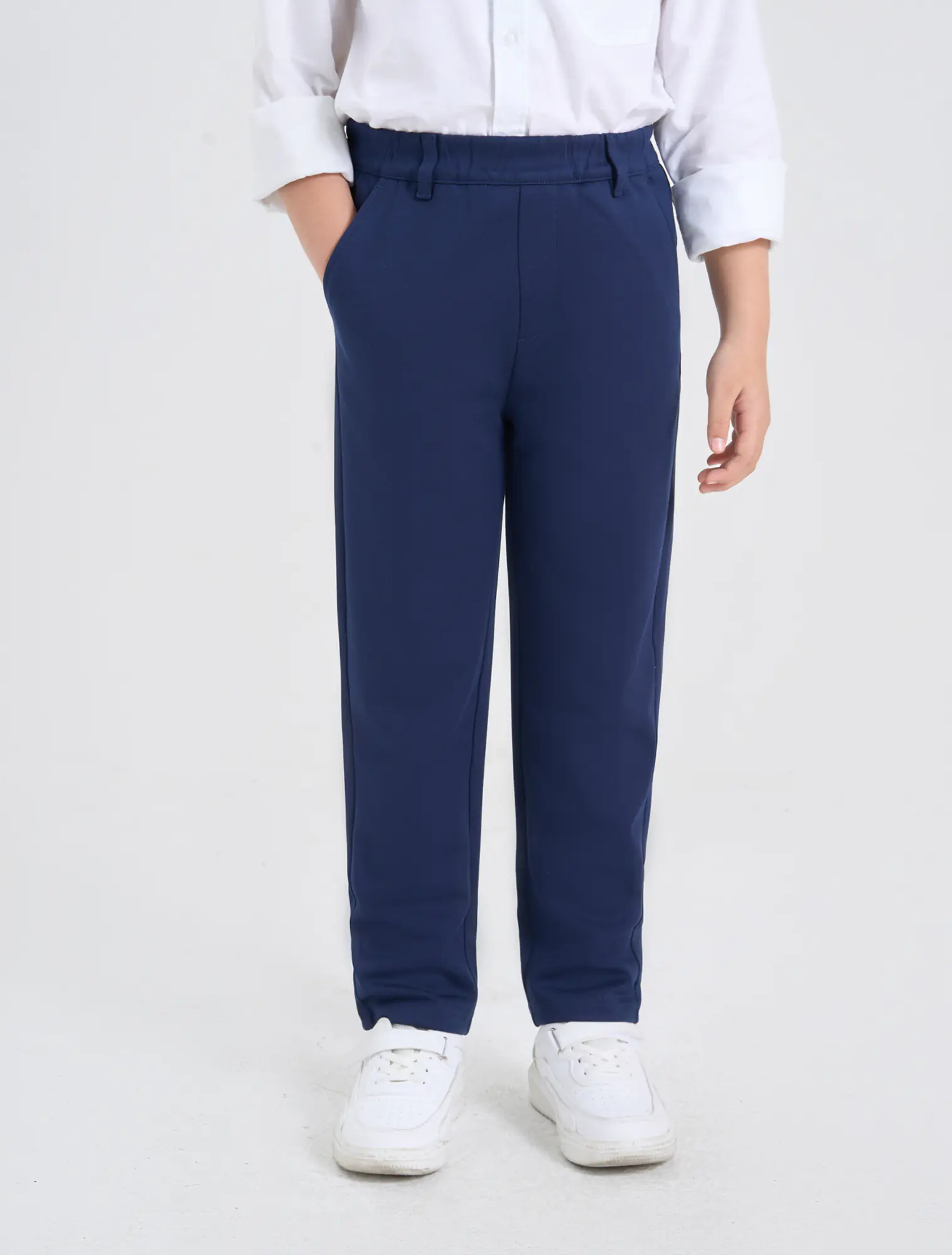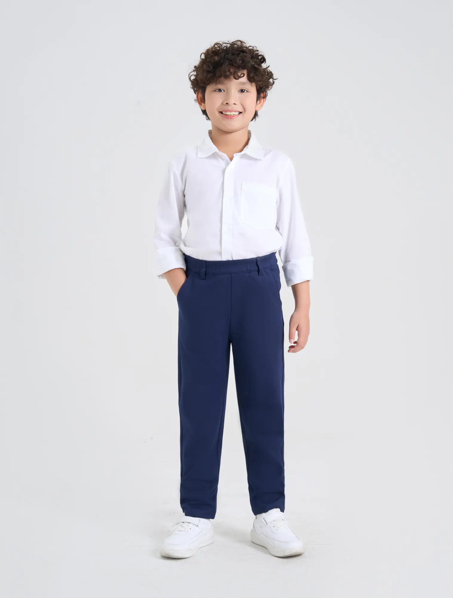 Quần dài bé trai, phom dáng cơ bản chất liệu interlock thoải mái mềm mại.