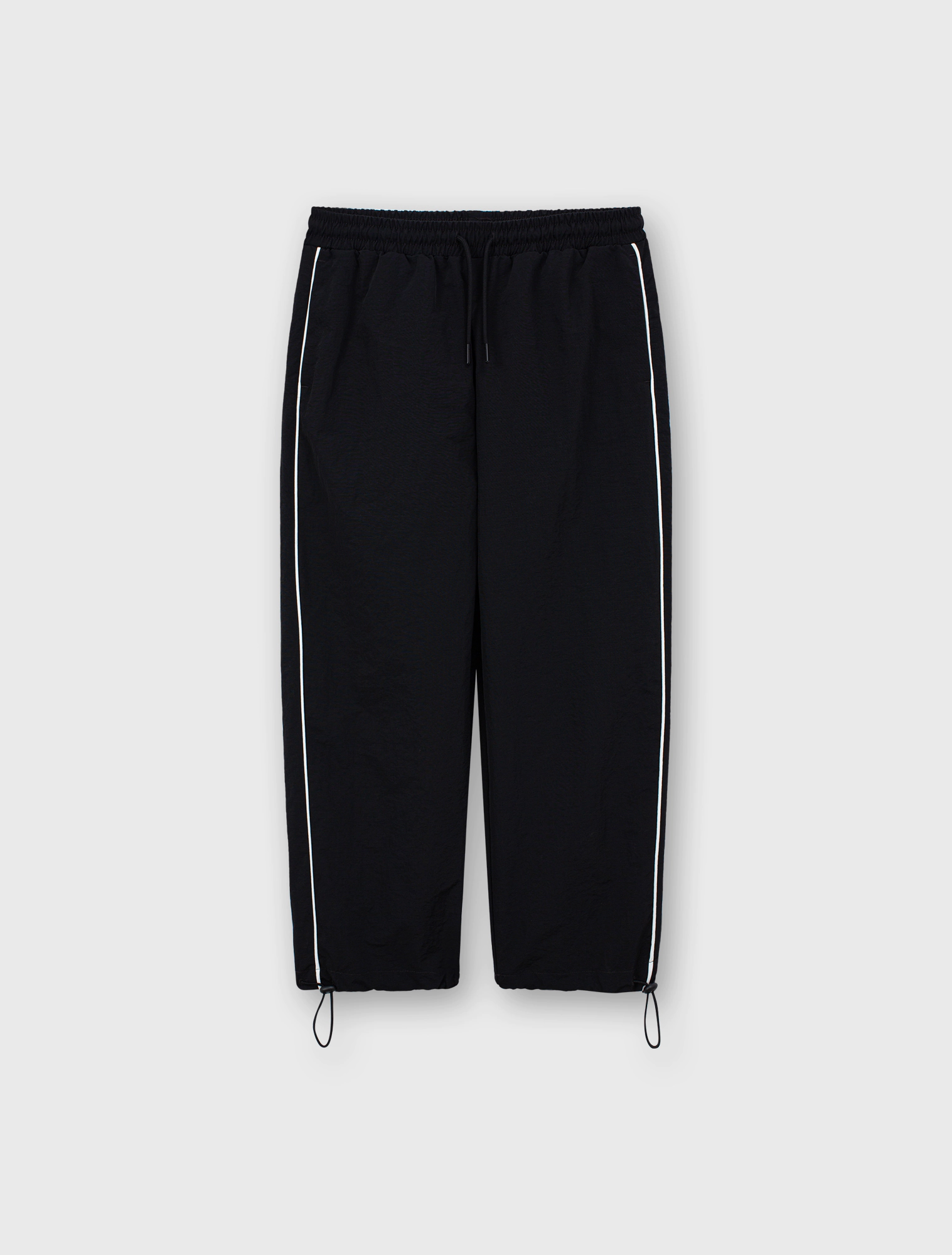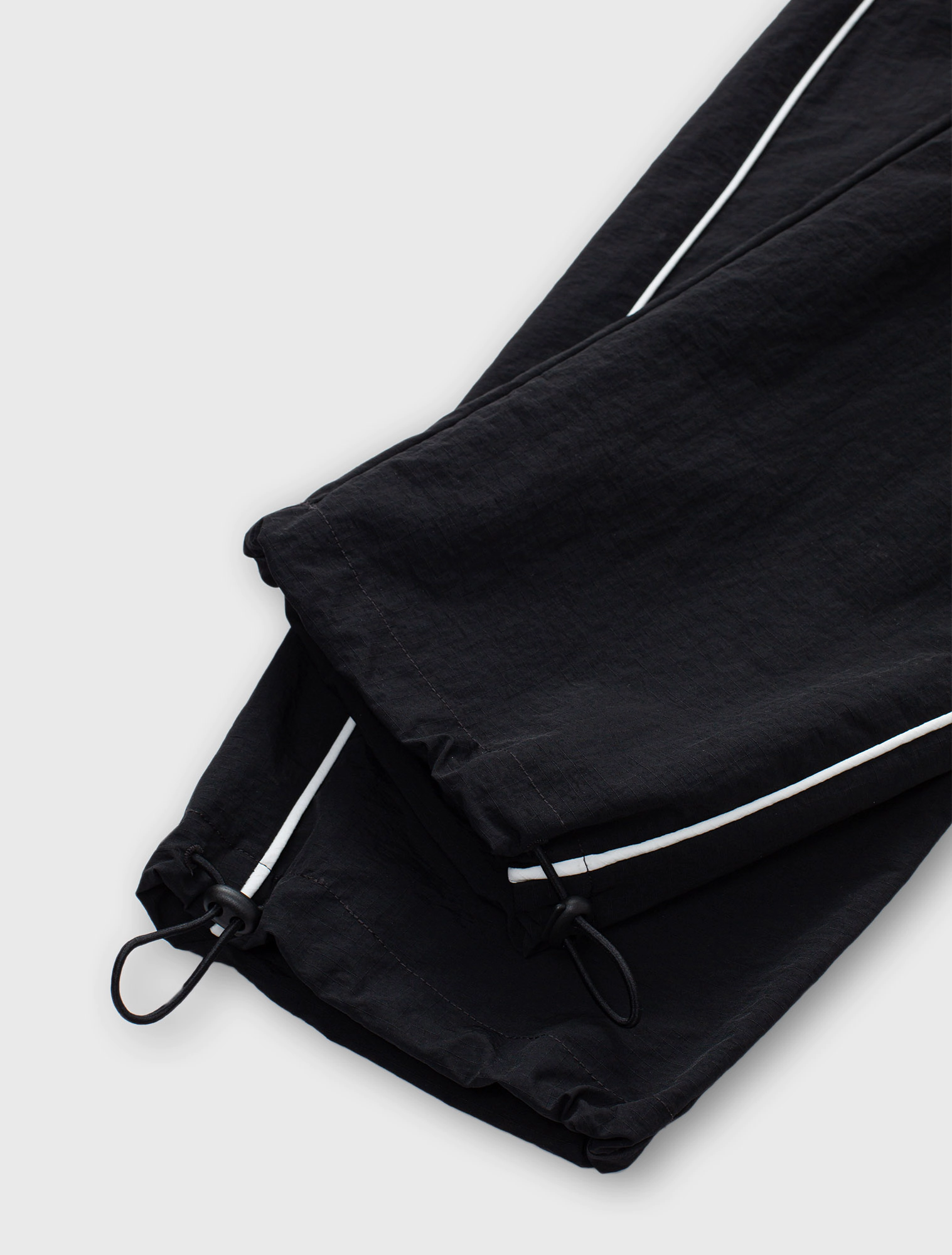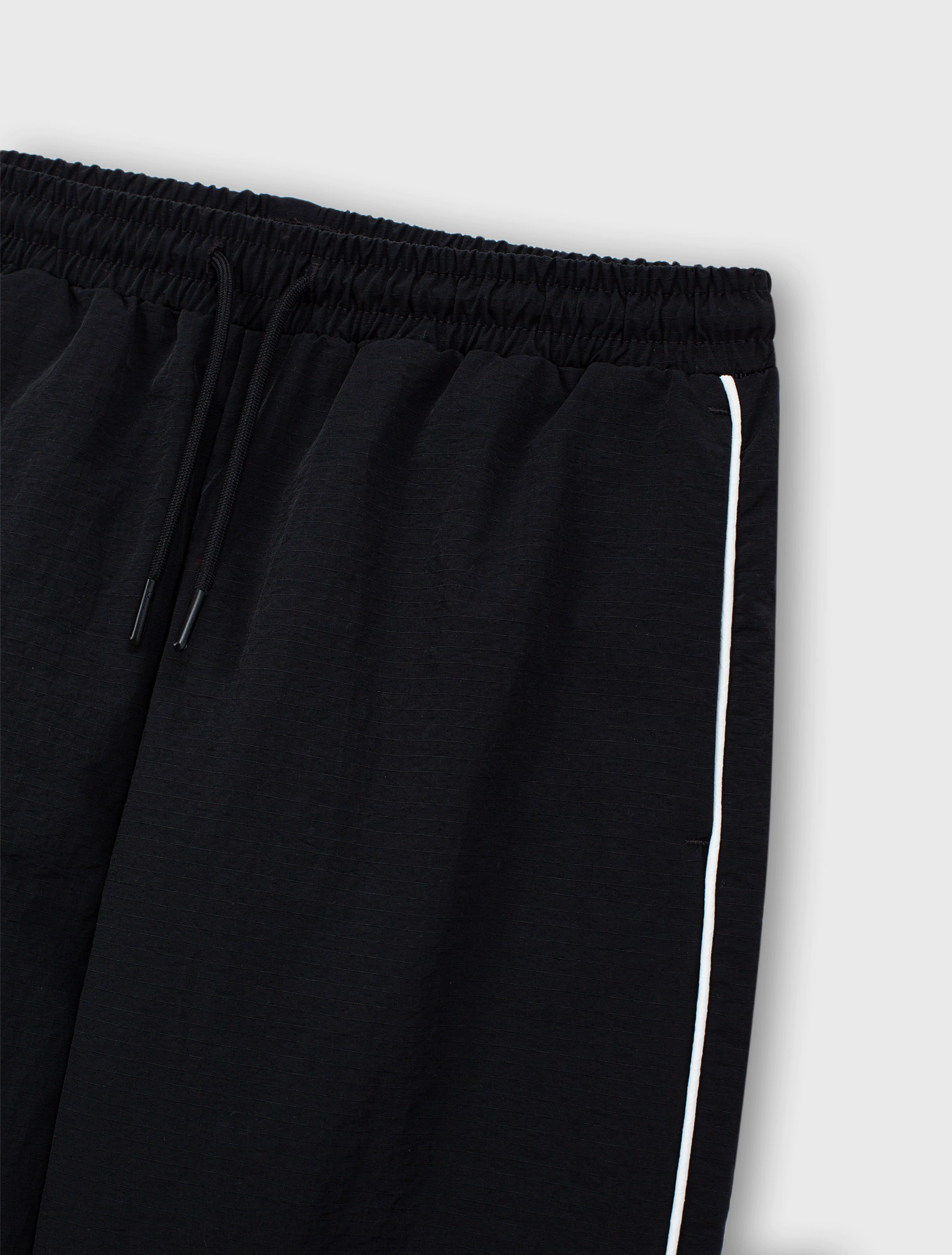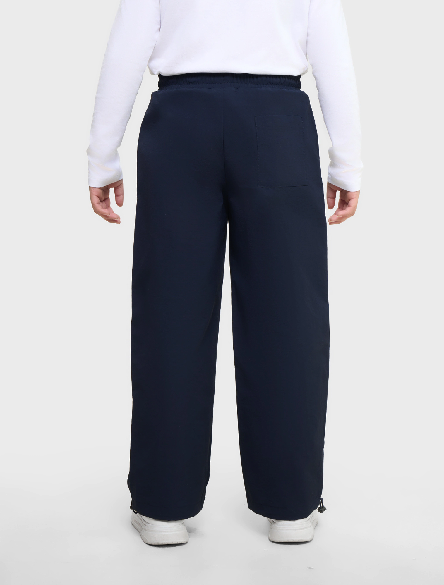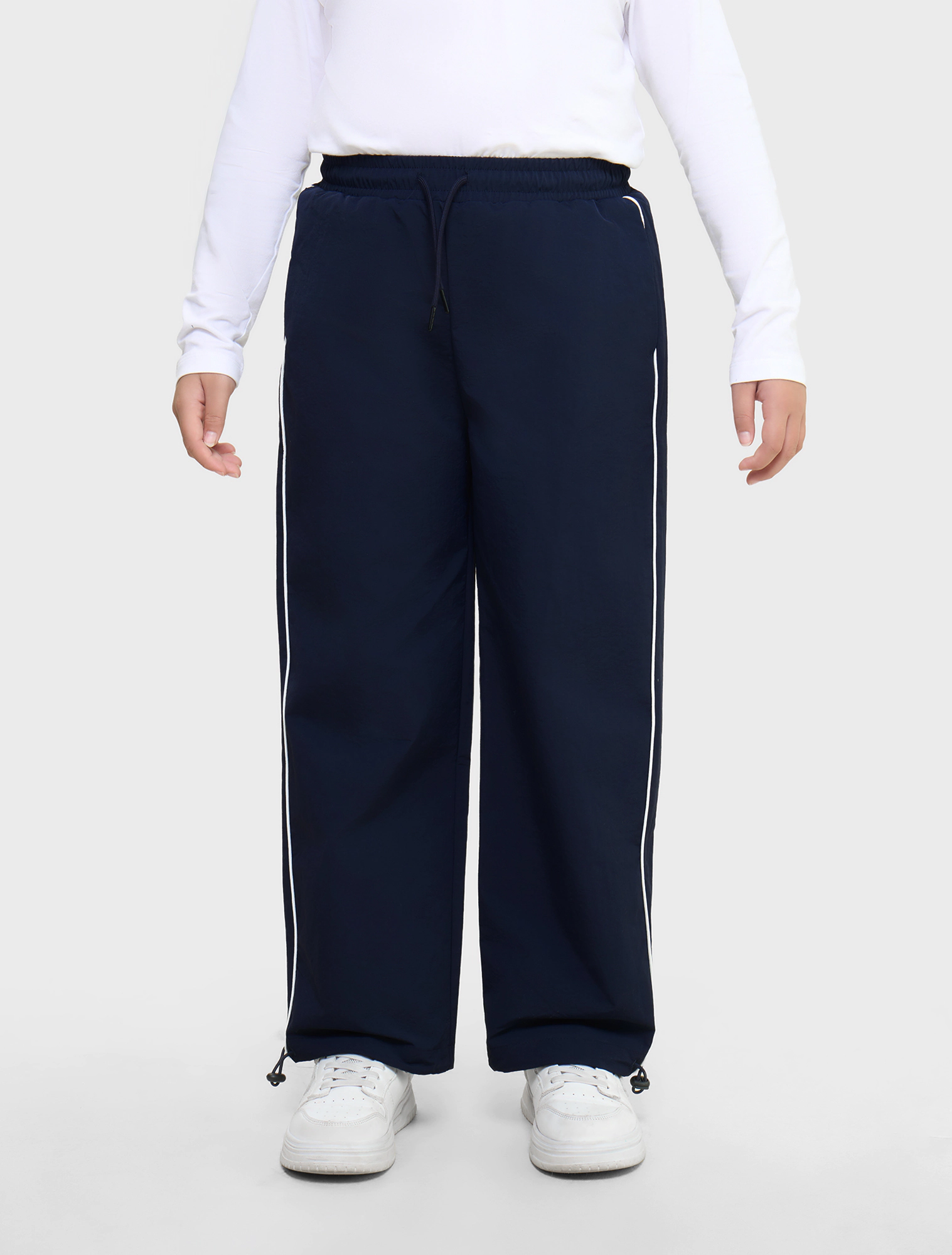 Quần gió jogger bé trai cạp chun. Túi phía trước và gấu rút chun. Chi tiết thêu ở ống quần, lé màu dọc quần.