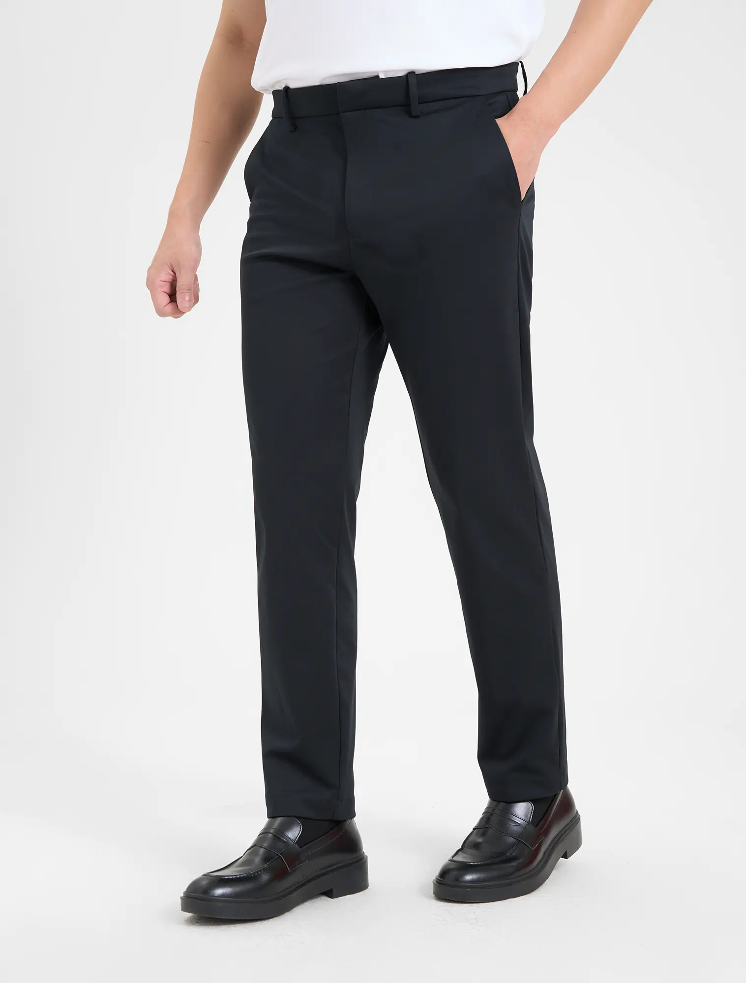 Quần dài nam với chất liệu co dãn tạo cảm giác thoải mái khi mặc.